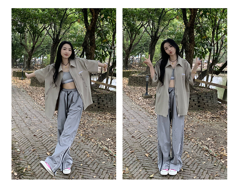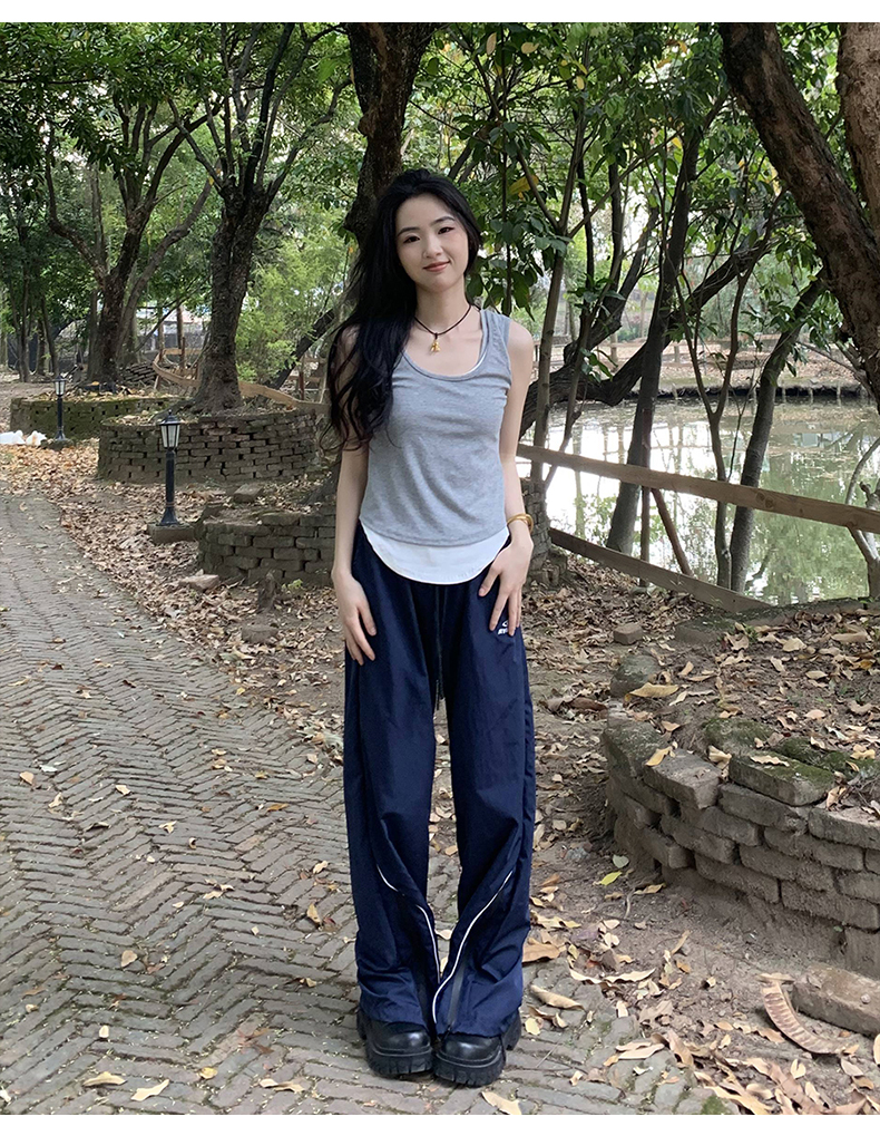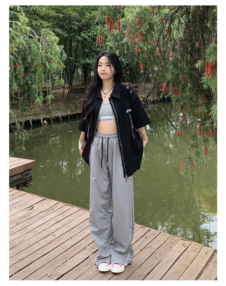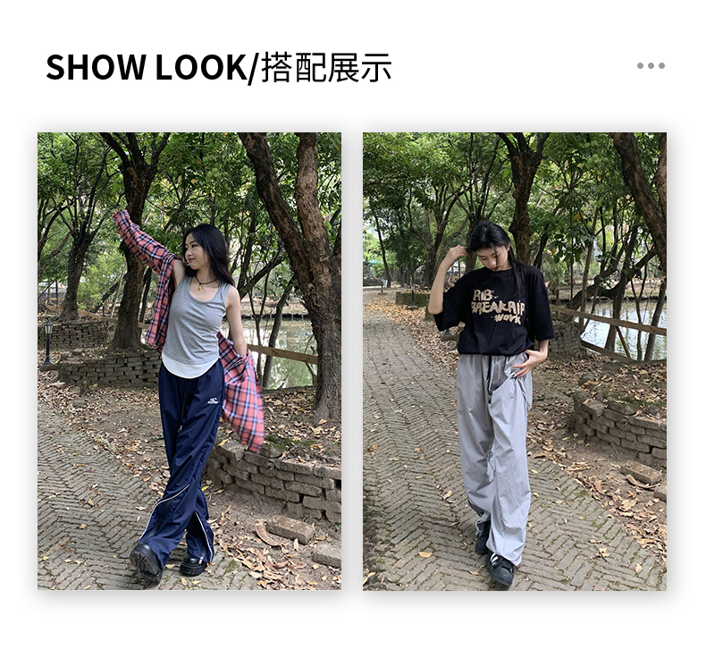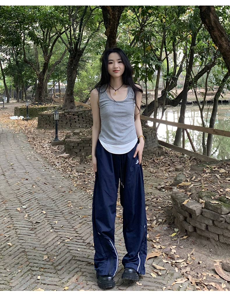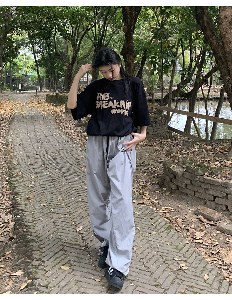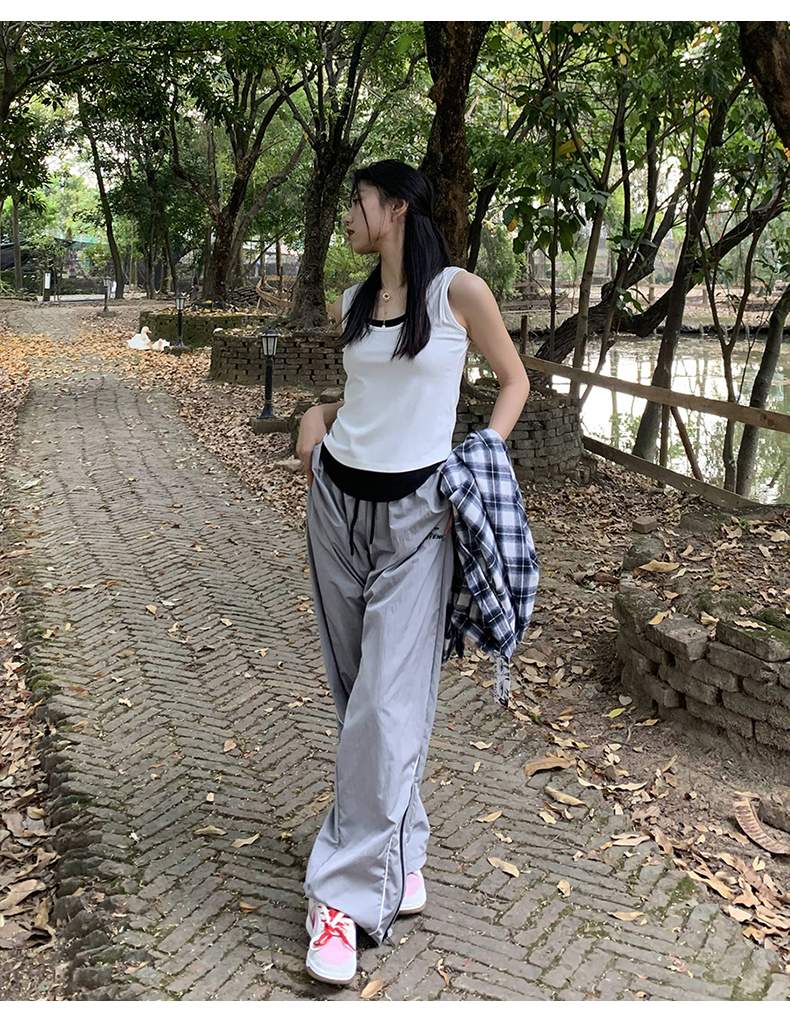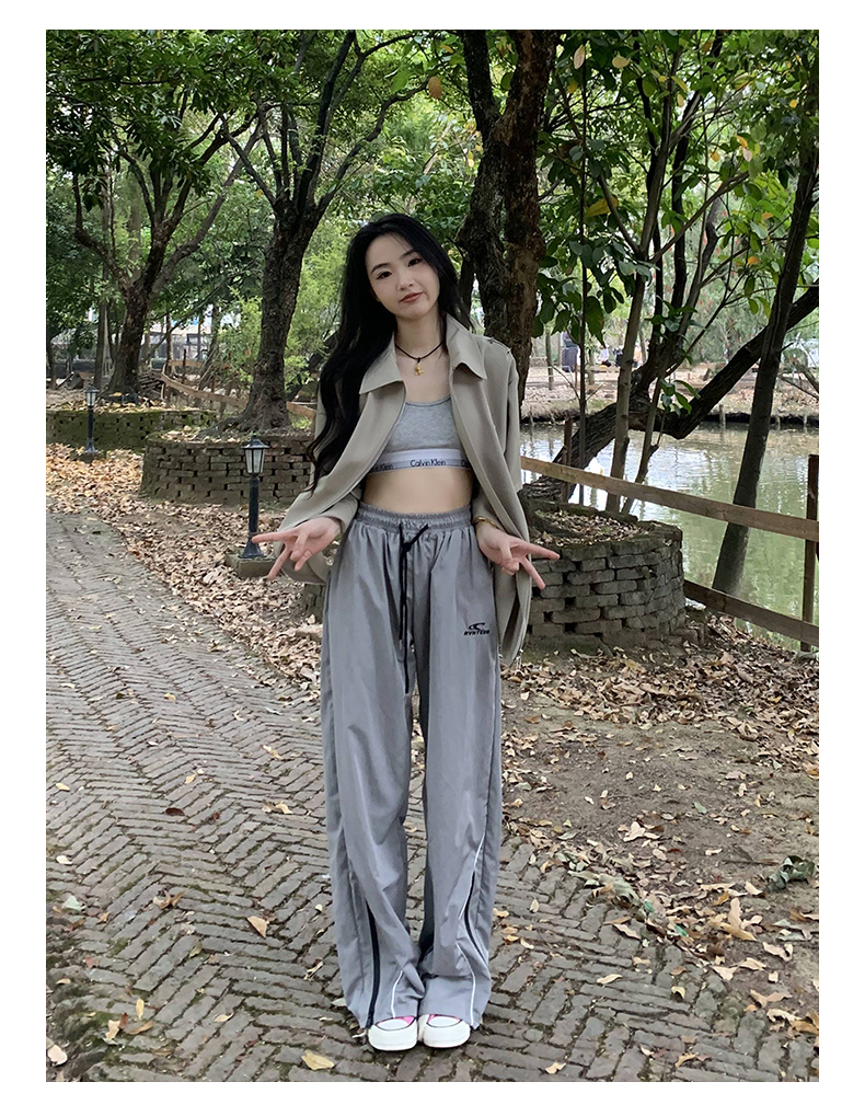 橘子樹在哪兒美式復古運動褲女春秋寬鬆抽繩設計感高街闊腿拖地褲