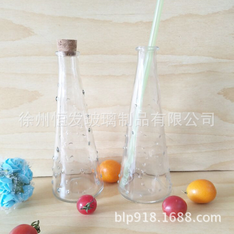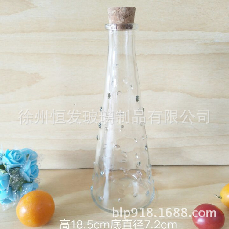创意透明雨点桌面玻璃花瓶 木塞漂流瓶冷泡茶饮料玻璃瓶批发