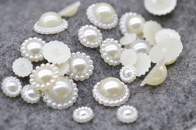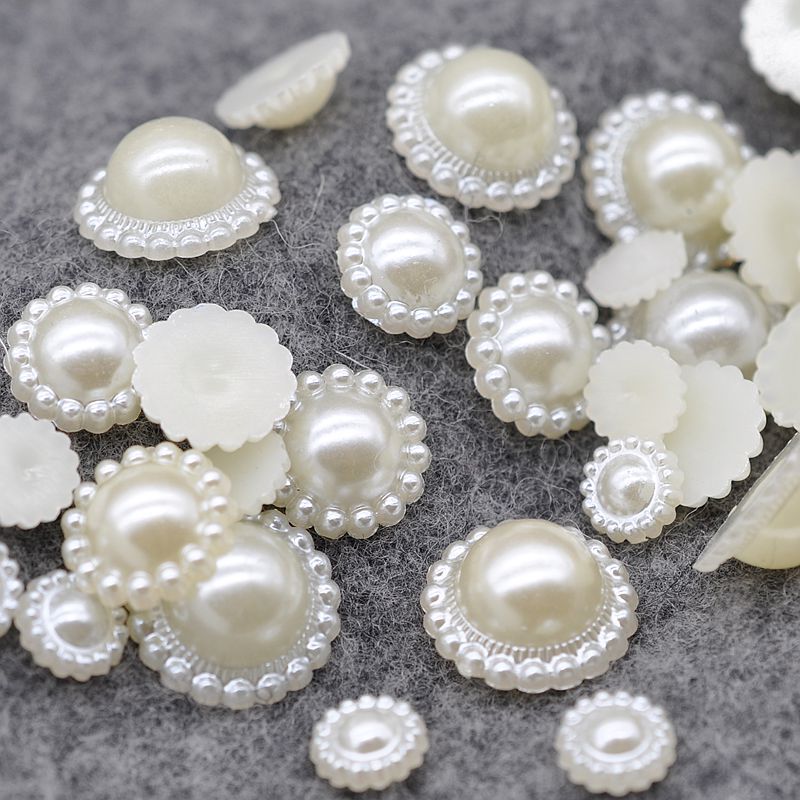DIY饰品配件平底圆形半面太阳花贴片ABS仿珍珠手机美容贴钻材料