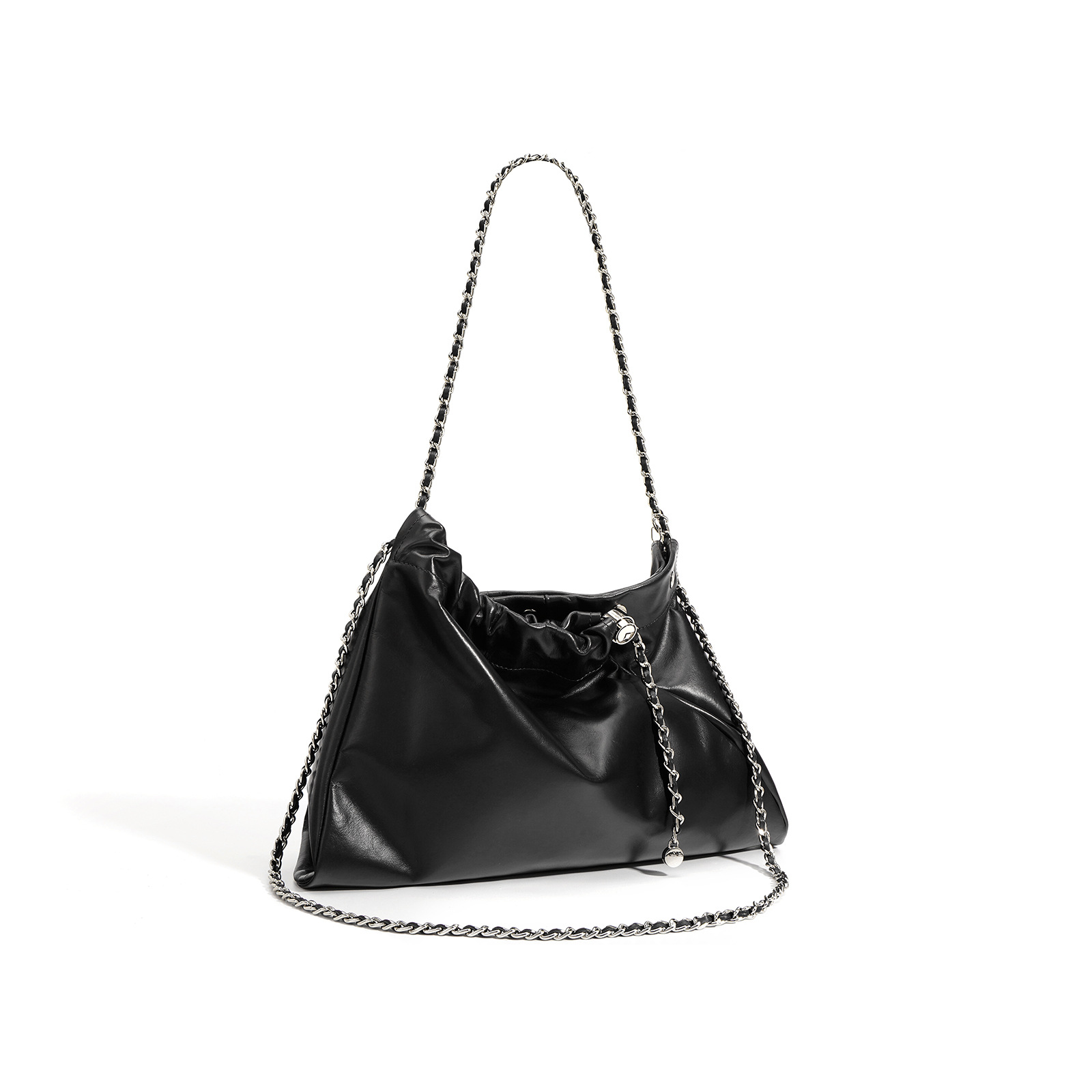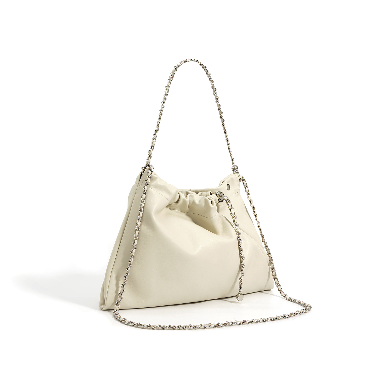 小众设计头层牛皮云朵包双袋口垃圾袋单肩斜挎简约时尚包包女