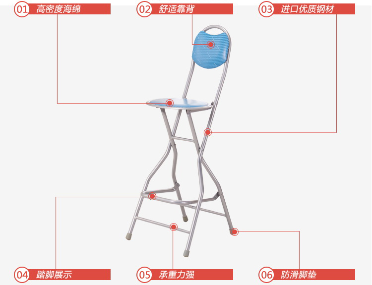 3TBW折叠椅靠背吧椅桥钓椅高脚酒吧椅子前台吧椅免安装家用休闲加