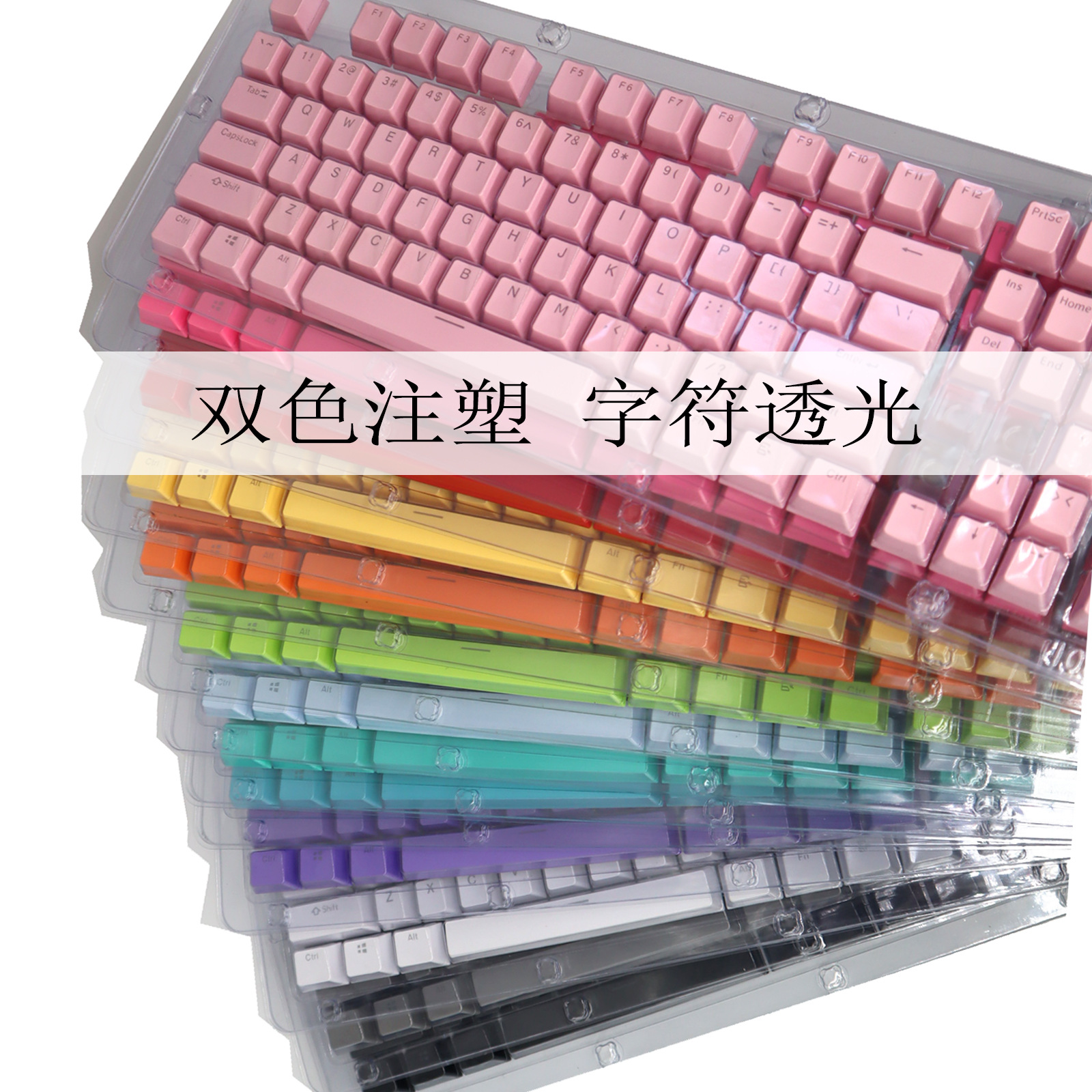 104键PBT彩色键盘帽ABS双色注塑闭口字符透光机械键盘键帽key cap