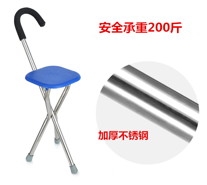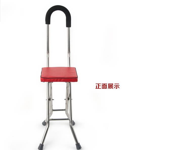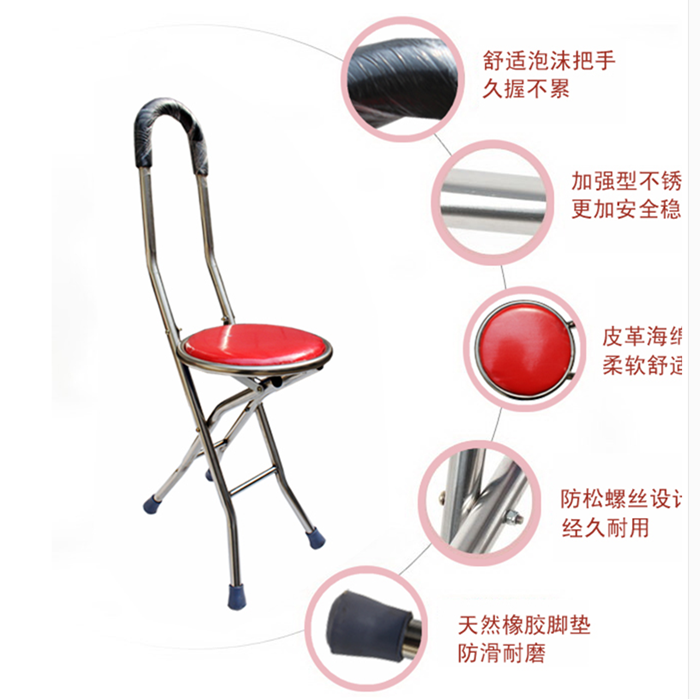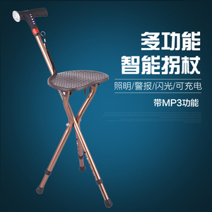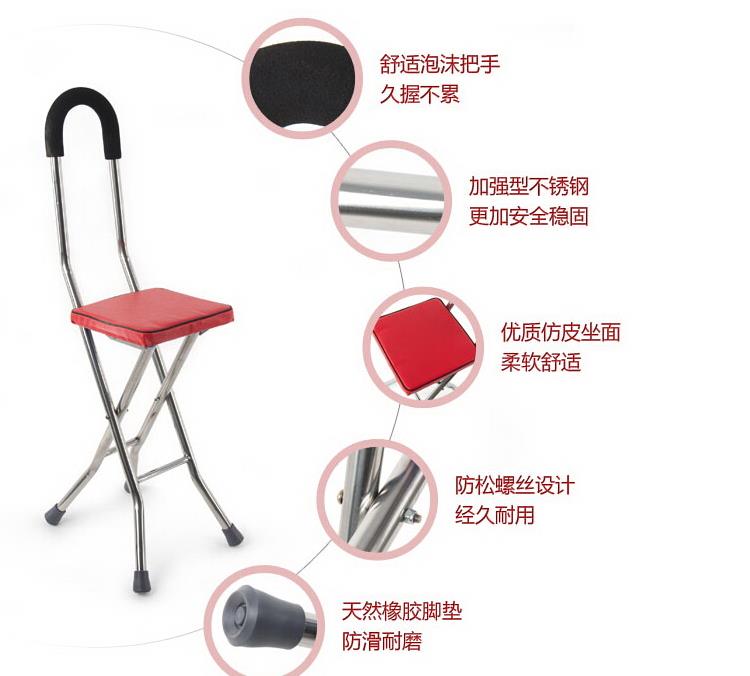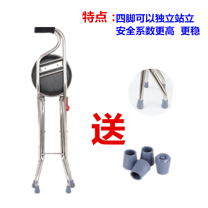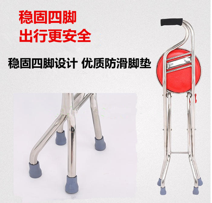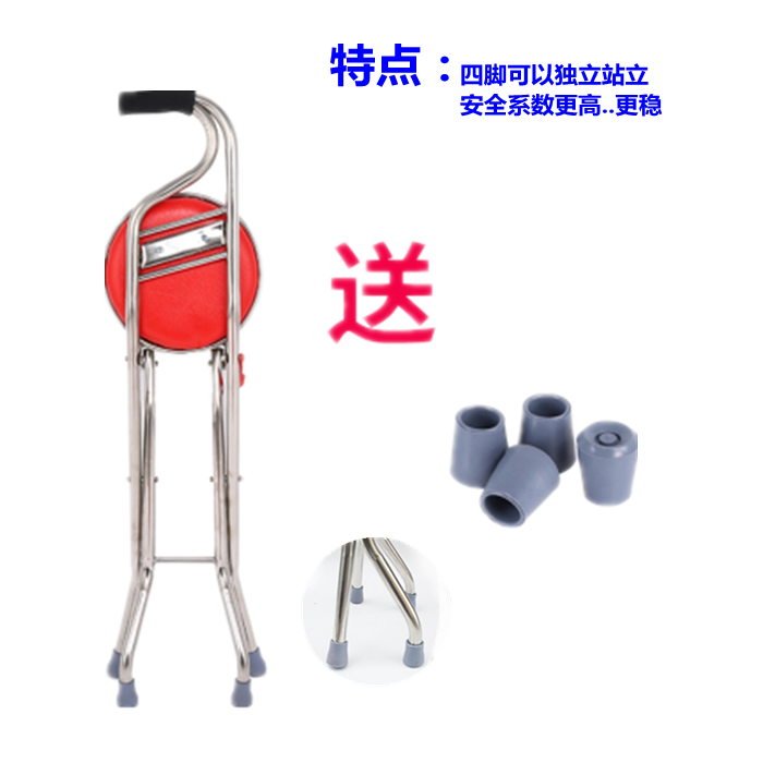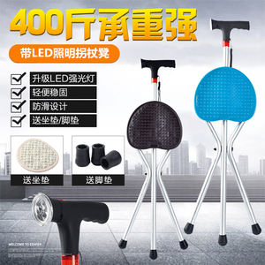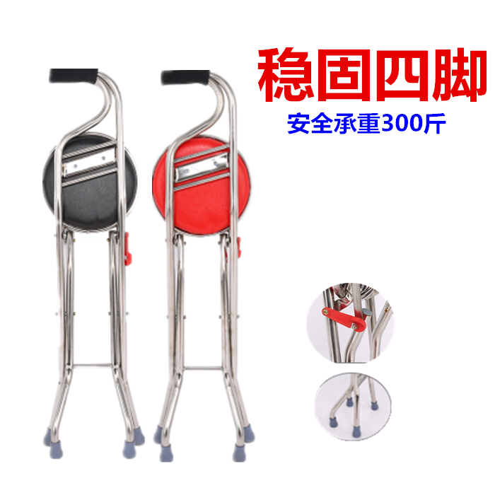 老人柺杖凳子老年人柺杖椅四腳摺疊多功能帶坐四角腳柺棍手杖凳