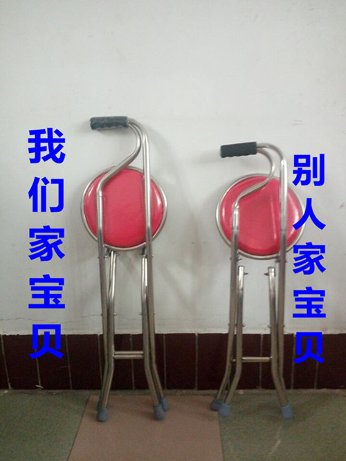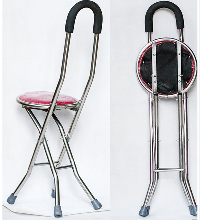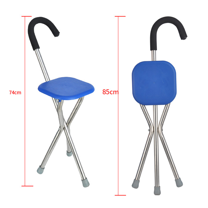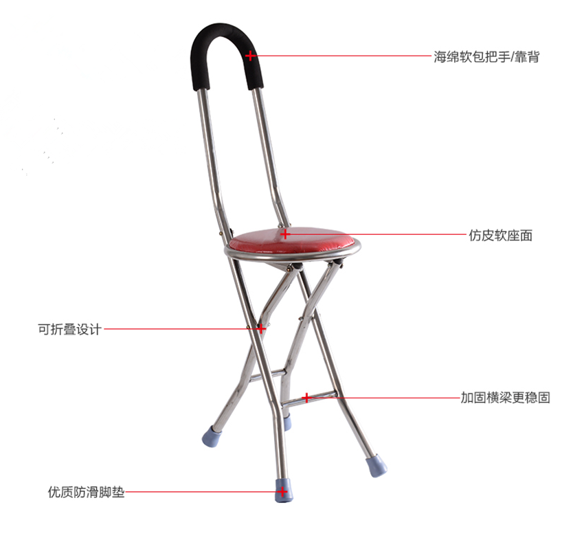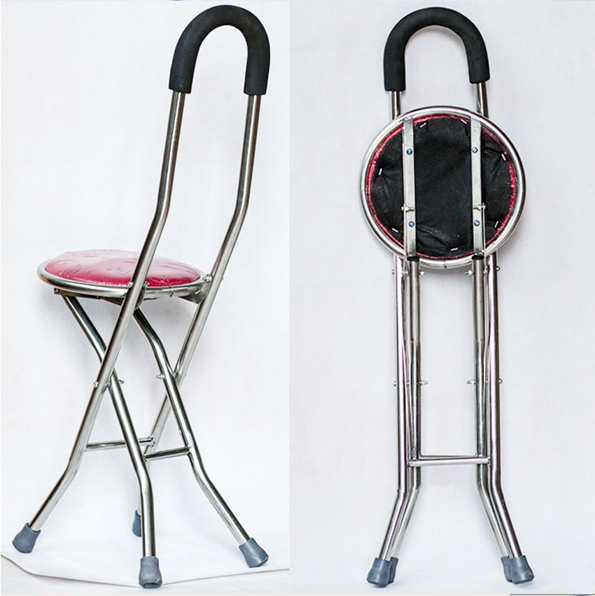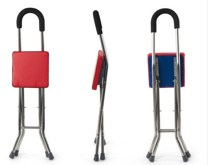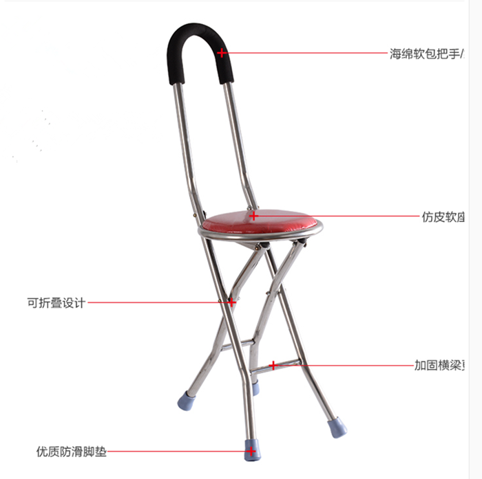 老人柺杖凳子老年人柺杖椅四腳摺疊多功能帶坐四角腳柺棍手杖凳