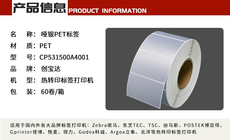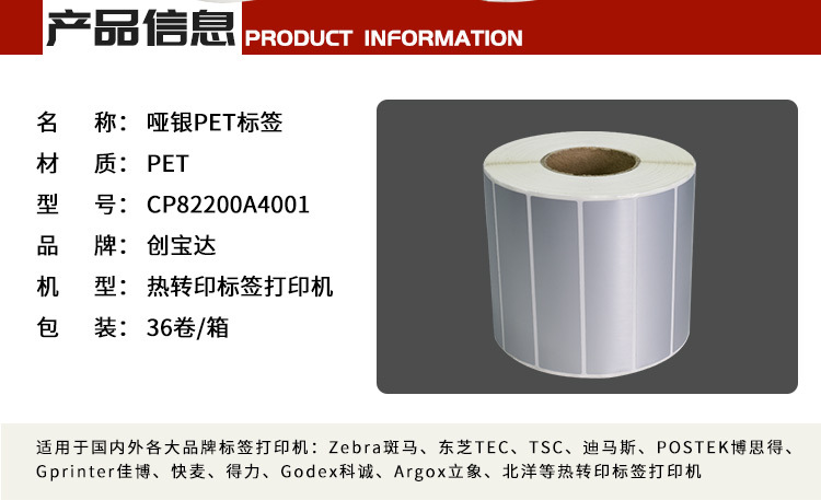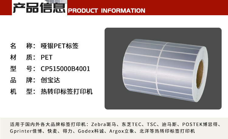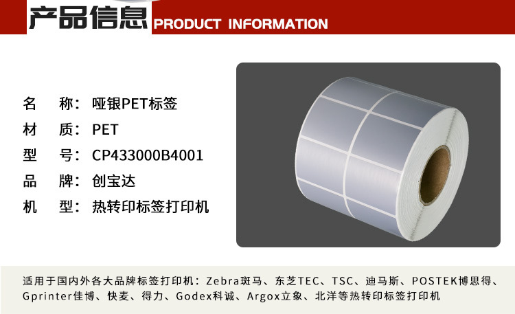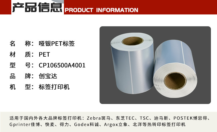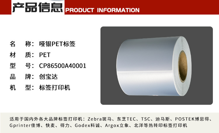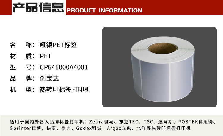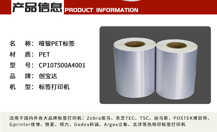 创宝达要生产:不干胶标签、热敏标签、铜板纸标签、PET合成纸标签、哑银龙标签、遇水变红标签、耐高温标签等,可生产卷装、单张、折叠等以满足国内外客户的不同设备需求。