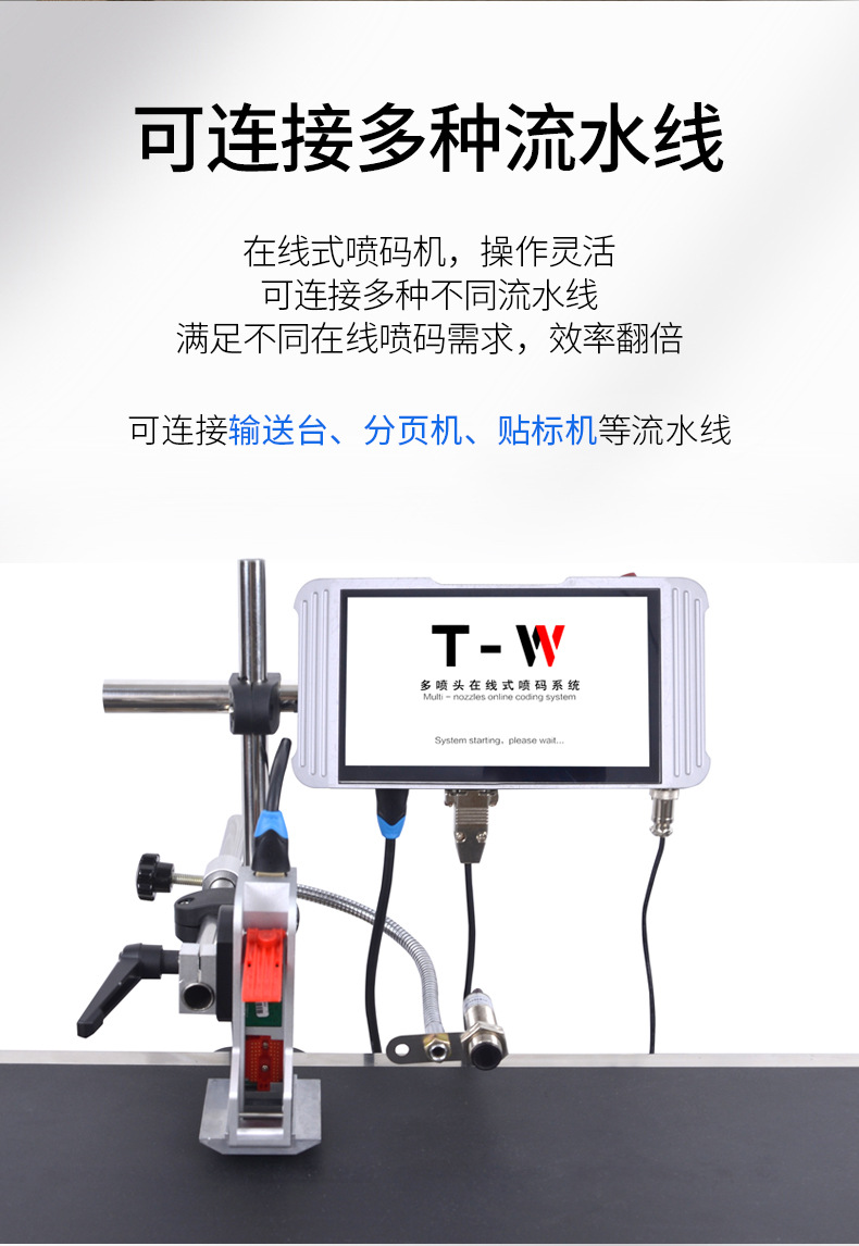 T-W在线喷码机全自动打码机包装生产日期条形码传送带高速喷印机