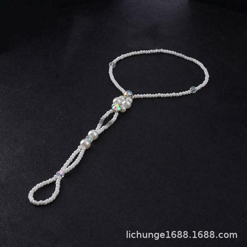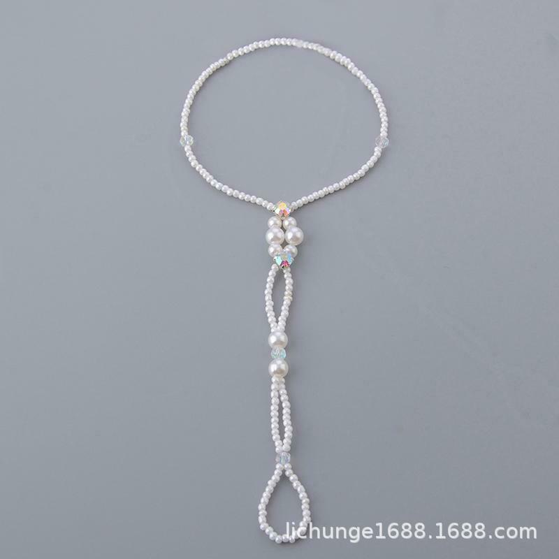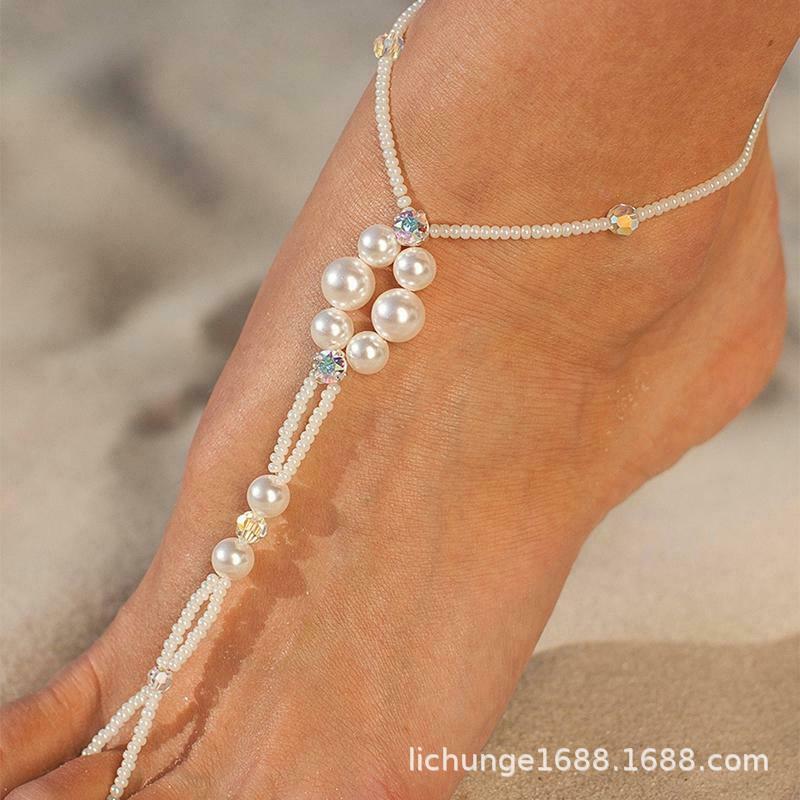 波西米亚风格赤脚凉鞋珍珠珠子闪亮脚踝链脚链脚珠宝