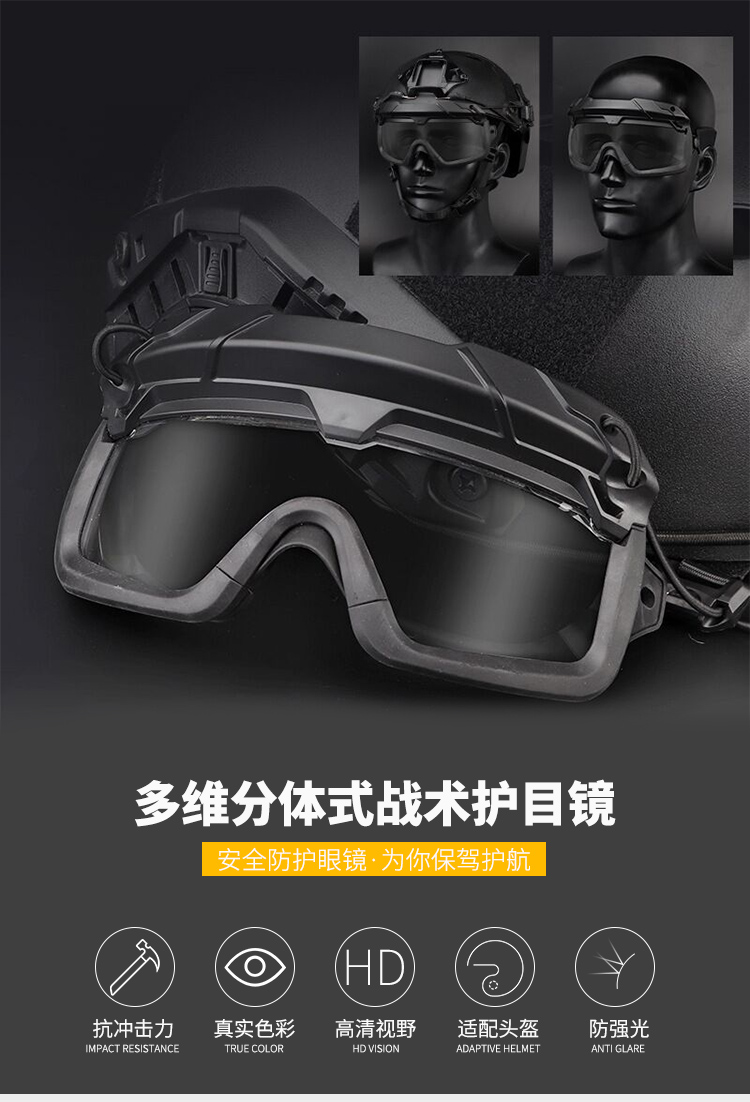 無賊WZJP多維兩件式安全帽戰術戶外護目鏡防暴護目鏡FAST安全帽護目鏡