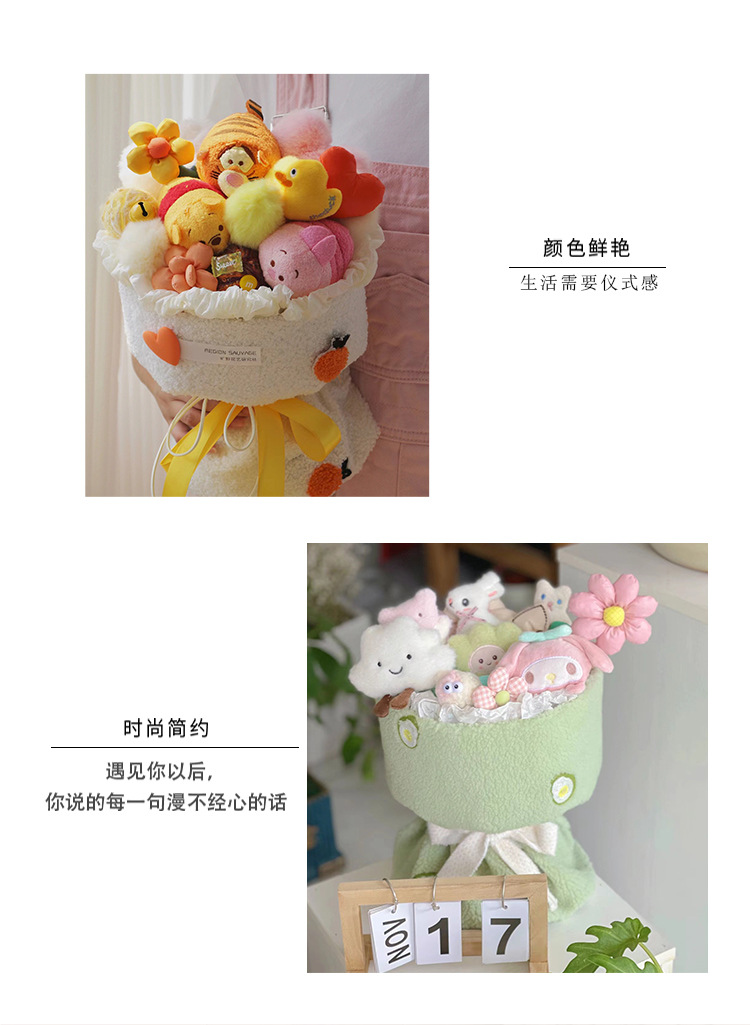 成品 520新款娃娃花束情人节礼物玩偶花束送女友闺蜜 带手提袋