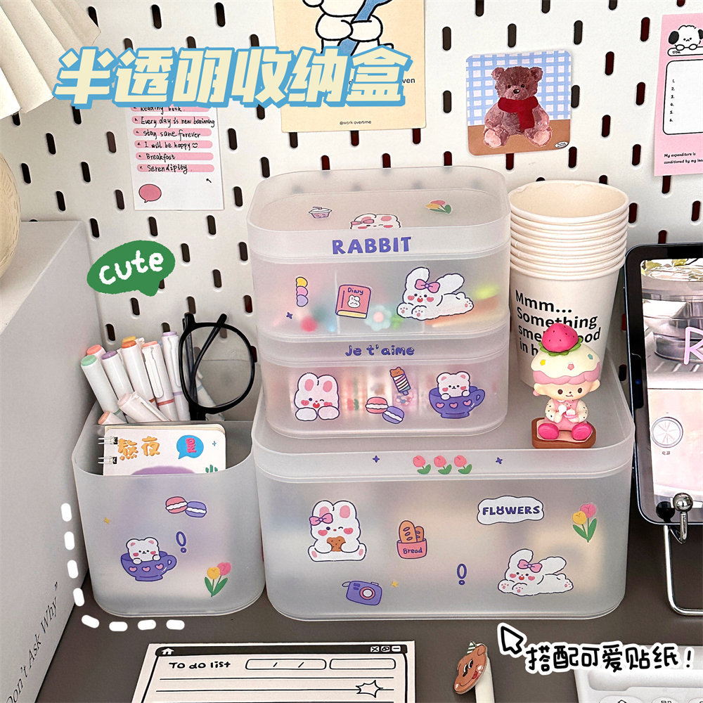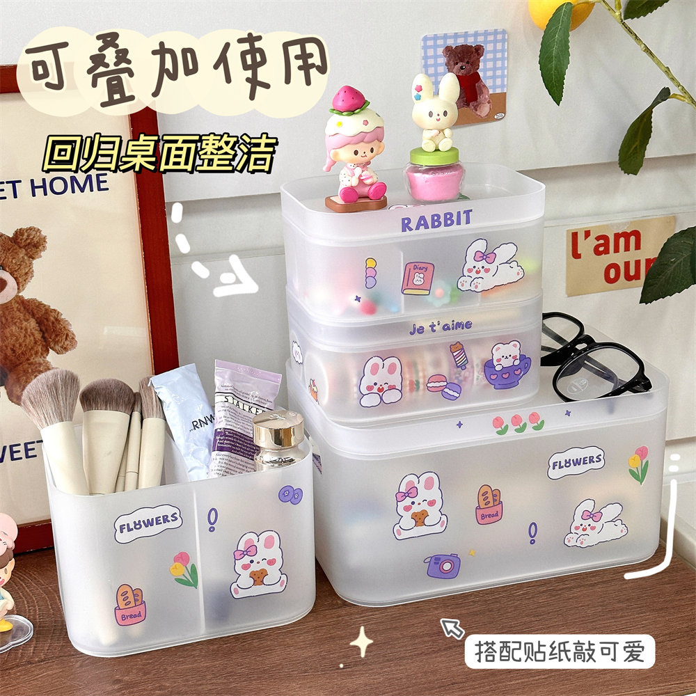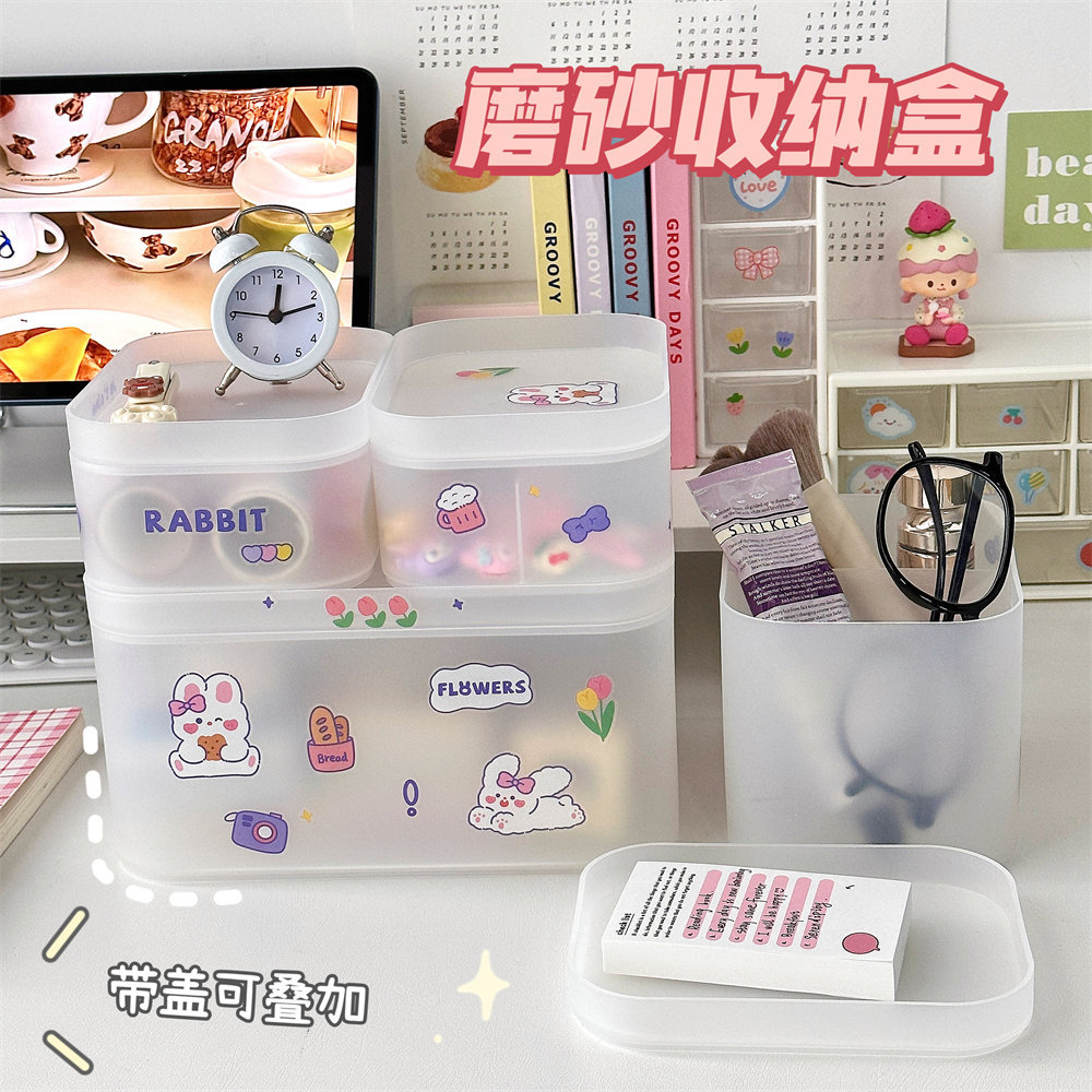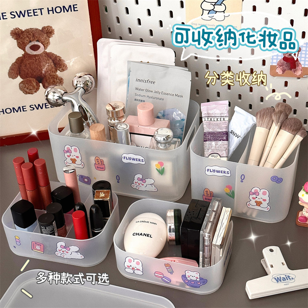 韩风ins风桌面网红化妆品收纳盒磨砂透明学生宿舍置物架整理盒女