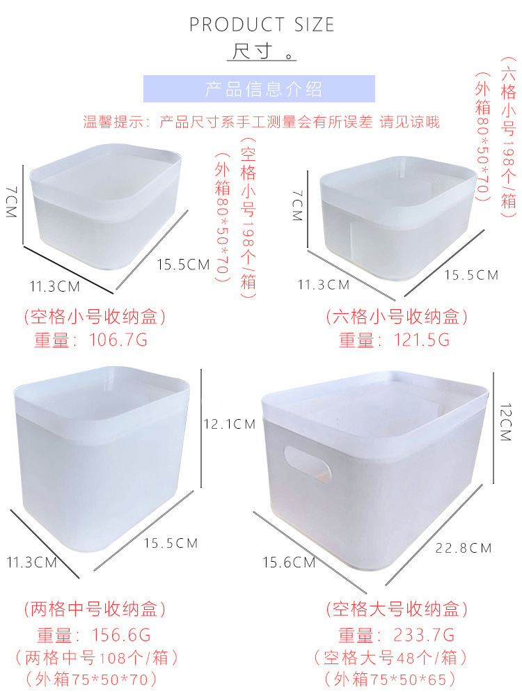 颜色 1#空格小号收纳盒,2#六格小号收纳盒,3#两格中号收纳盒,4#空格大号收纳盒,5#磨砂白,6#圆形杯