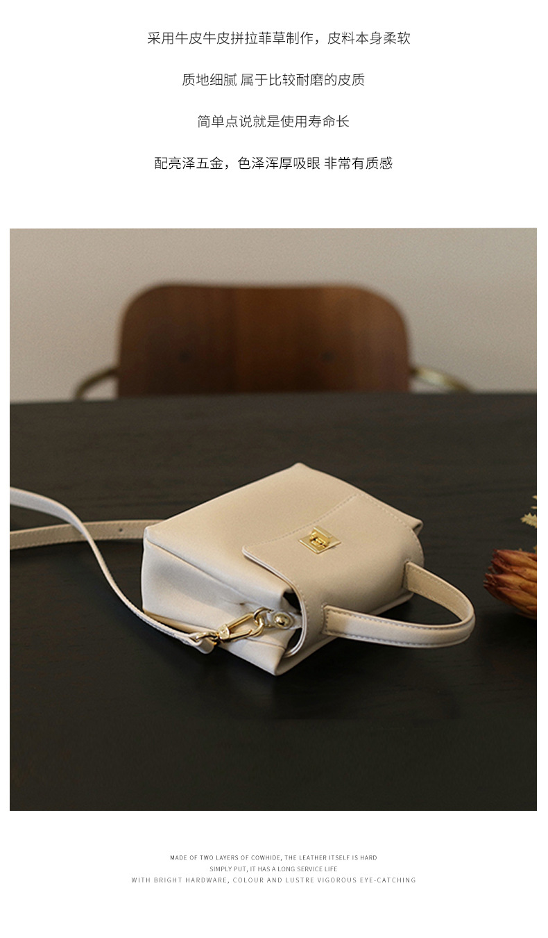 新款头层牛皮波士顿包2024简约质感牛皮单肩斜挎包小众设计感