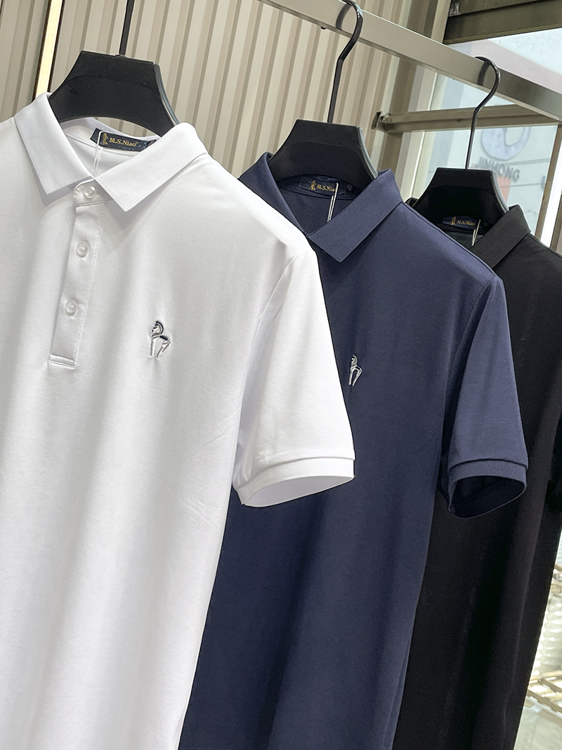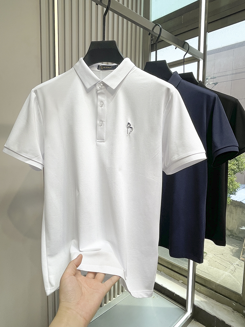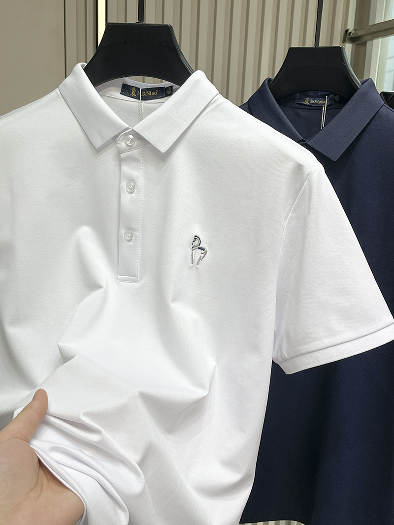 桑蠶絲+莫代爾 輕奢男士修身短袖POLO衫 抑菌透氣春夏休閒翻領T恤