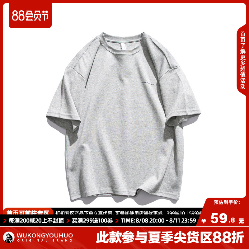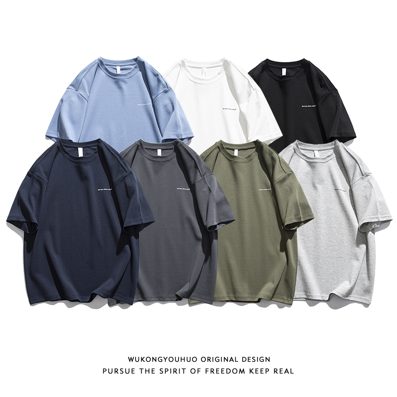 悟空有貨夏季300g重磅純棉短袖T恤男潮牌寬鬆基礎百搭打底衫T恤