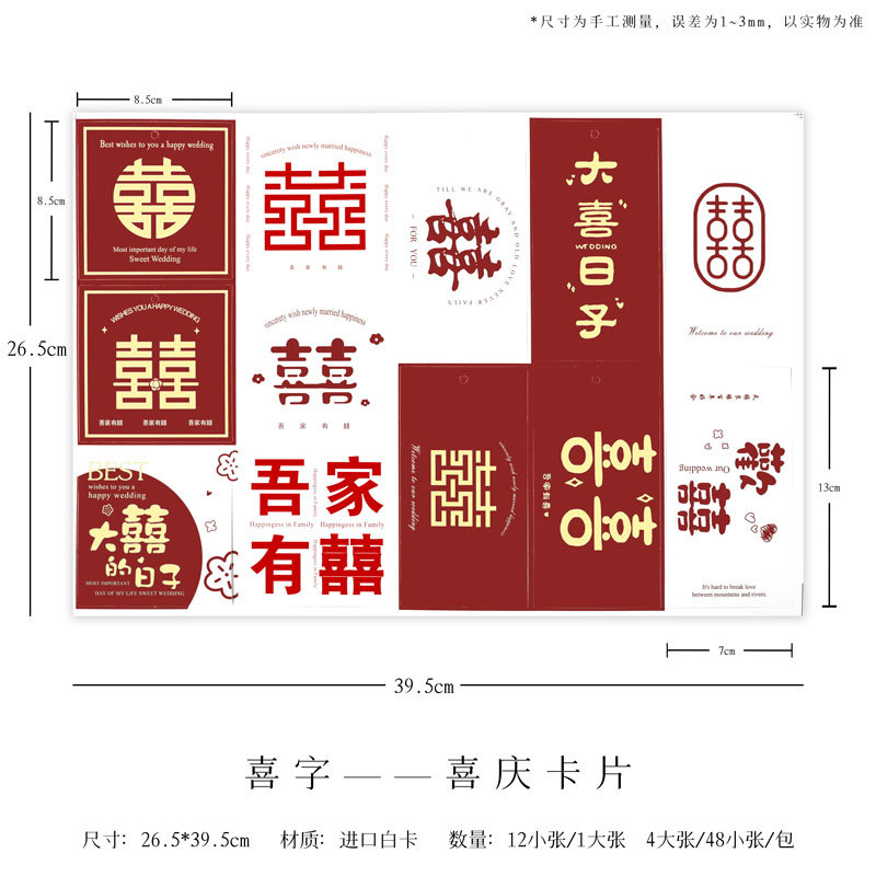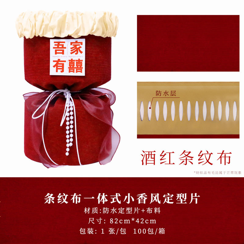 颜色 酒红-条绒布小香风-150cm*50cm,酒红-植绒布小香风150cm*50cm,酒红-针织布小香风150cm*50cm,我们结婚啦-一体式小香风,喜结良缘-一体式小香风,百年好合-一体式小香风,酒红条纹绒布-一体式小香风,喜字卡片,单喜字-喜庆卡片(20张/包),布基双面胶-10米/卷,双面胶(10卷装),8#珍珠链(2条/包),10#珍珠链(2条/包),酒红-皮绒绳,酒红-2.5cm褶皱丝带,杏色-2.5cm褶皱丝带,海星红-鱼尾纱,西柚红-抽取式牛奶棉,奶茶色-抽取式牛奶棉,扇形大号-定型片,爱心大号-定型片,长方形大号-定型片,60扎带(50根/包),圆形福字 20张/包,平安福字 6张/包,传统福字 20张/包,早生贵子 4个小字各1张
