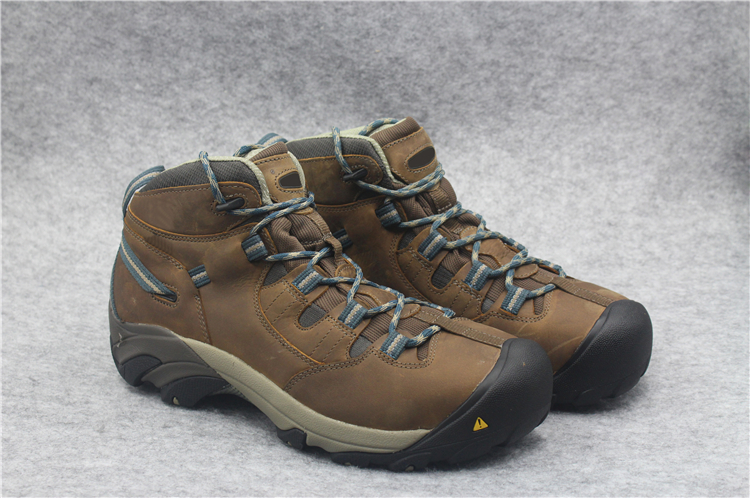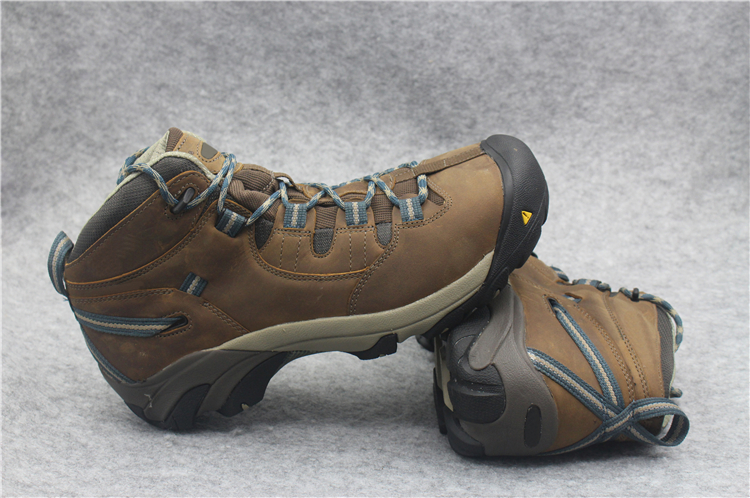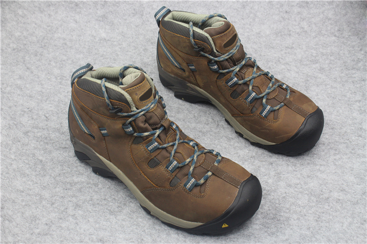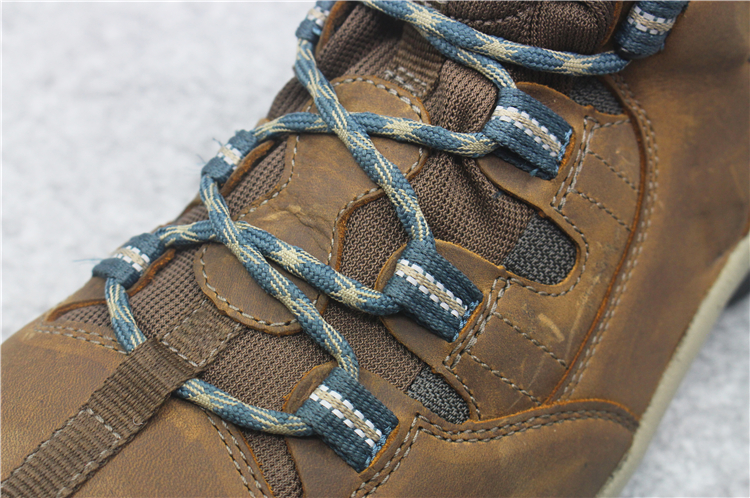 防水皮革和纺织鞋面、防油防滑无痕橡胶外底、双密度压缩成型EVA中底、吸湿排汗纺织衬里、内里带有防水层。