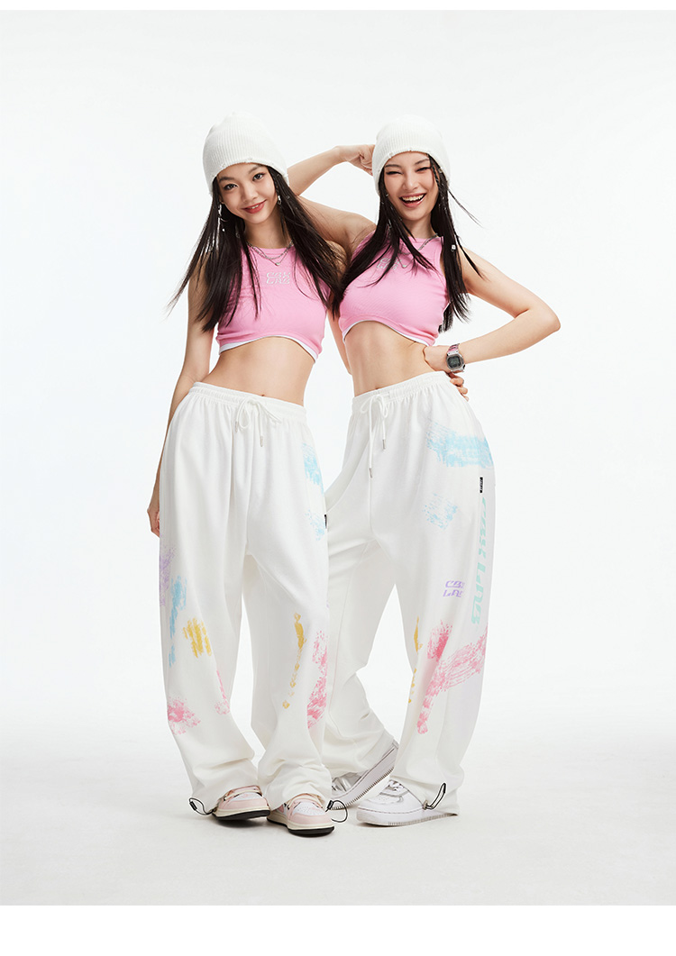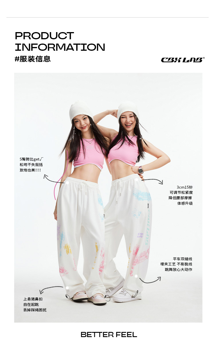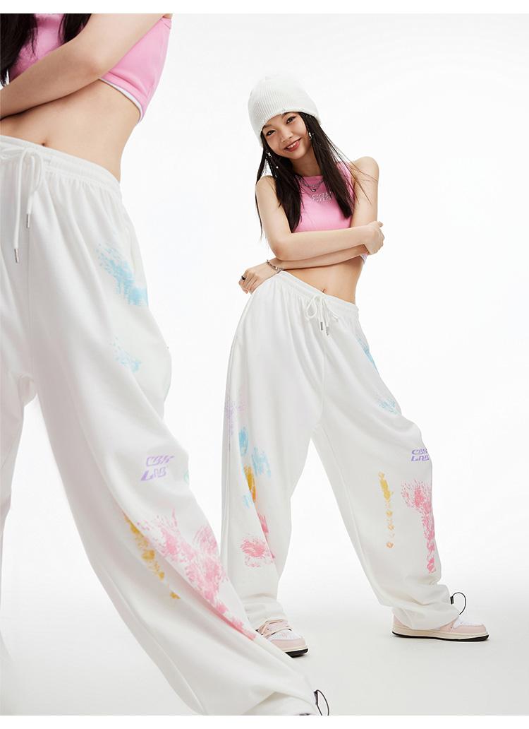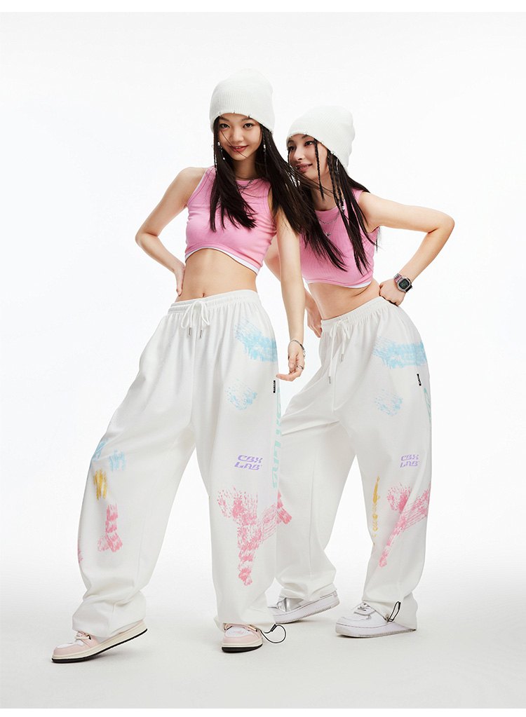 CBXLAB街舞潮牌白色印花嘻哈運動褲女街頭爵士舞街舞炸街跳舞褲子