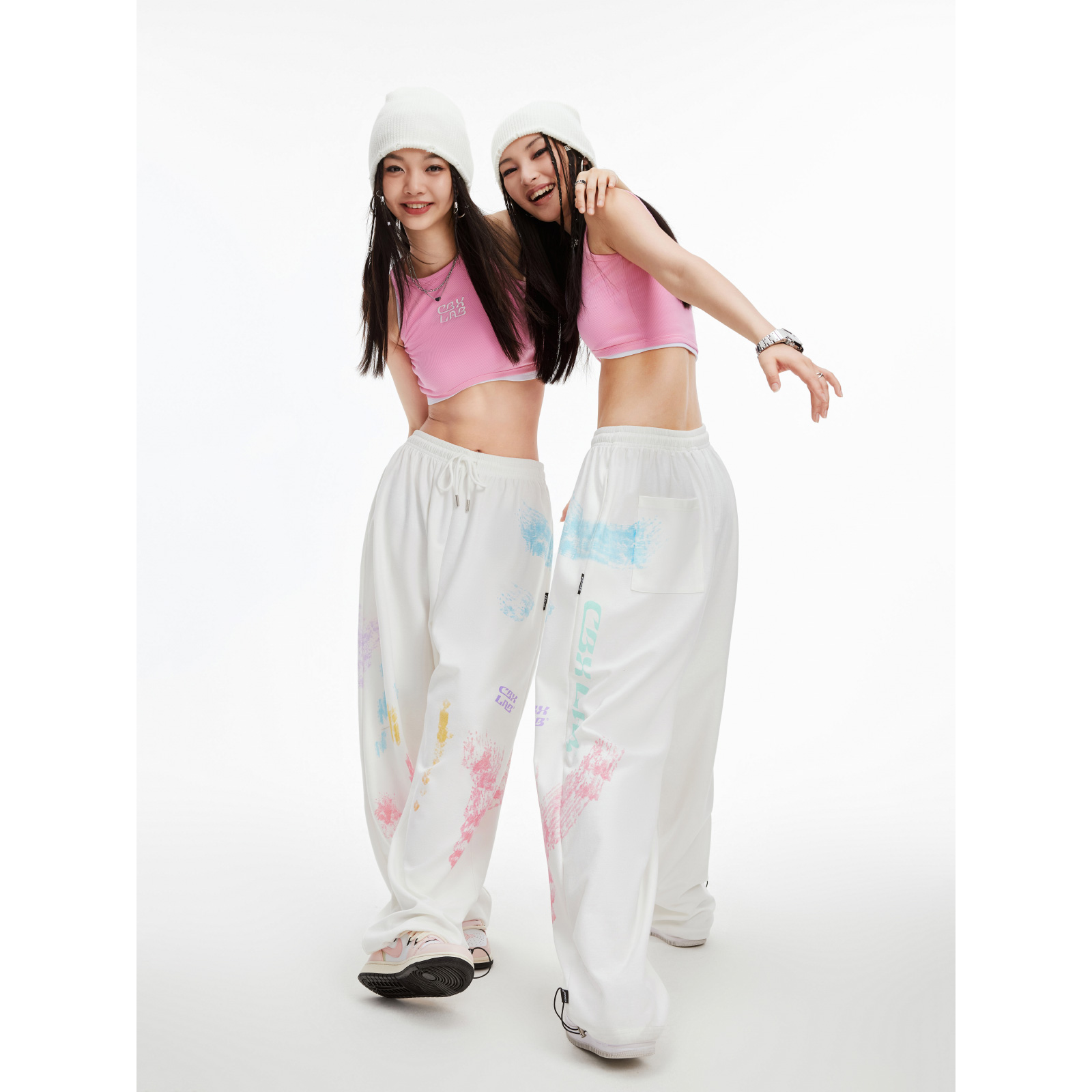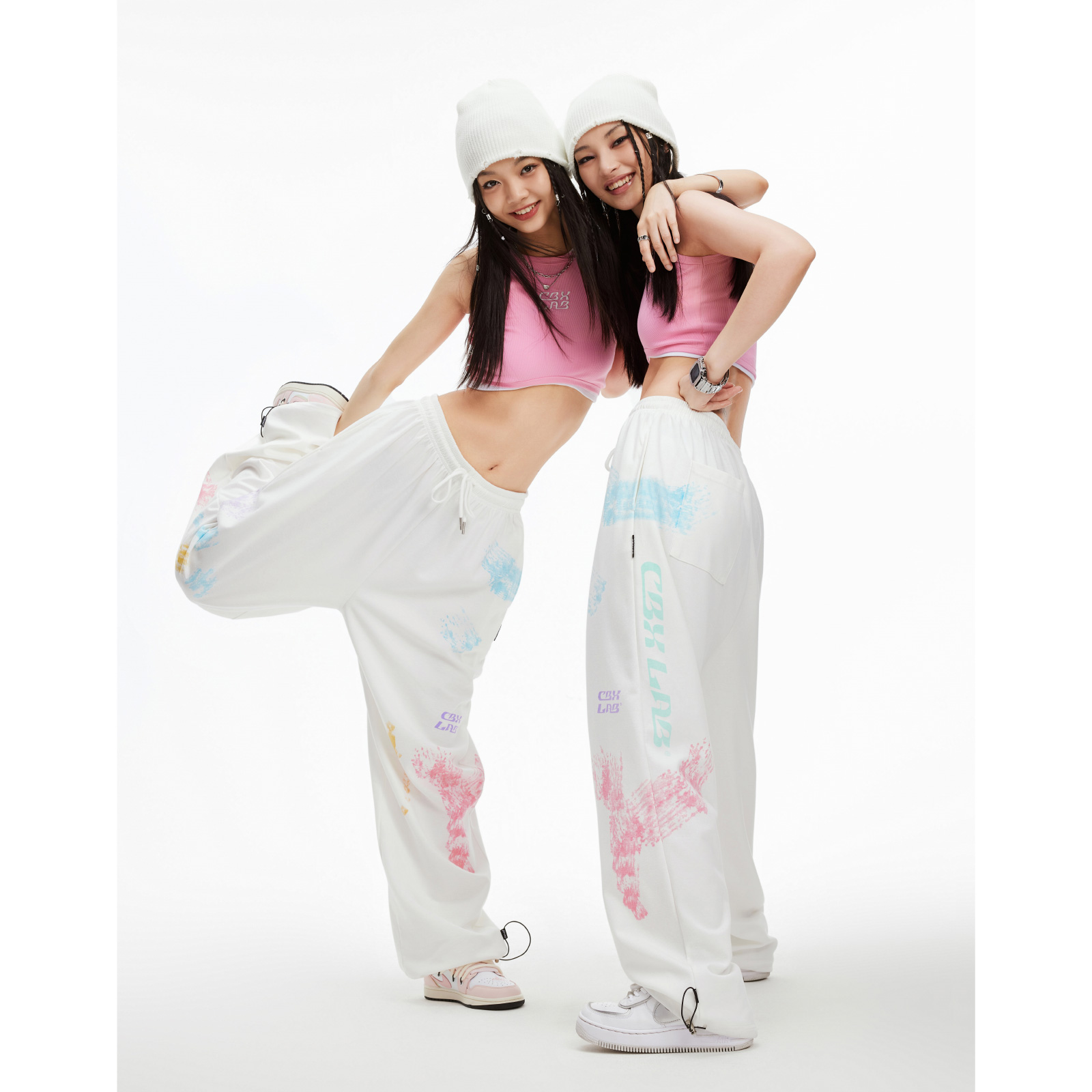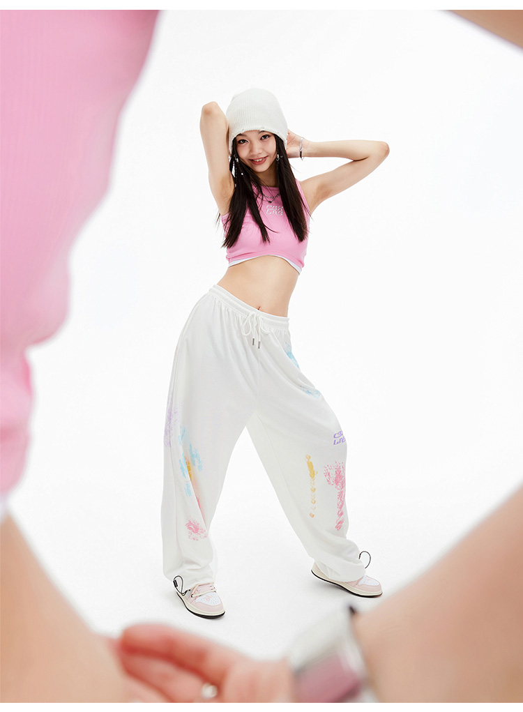 CBXLAB街舞潮牌白色印花嘻哈運動褲女街頭爵士舞街舞炸街跳舞褲子