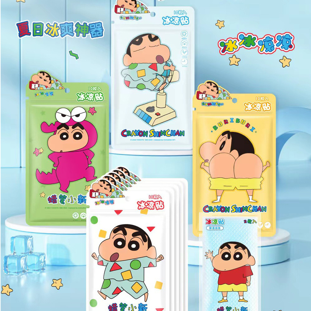 正品蜡笔小新冰凉贴冰贴夏季卡通降温散热学生军训成人清凉贴批发