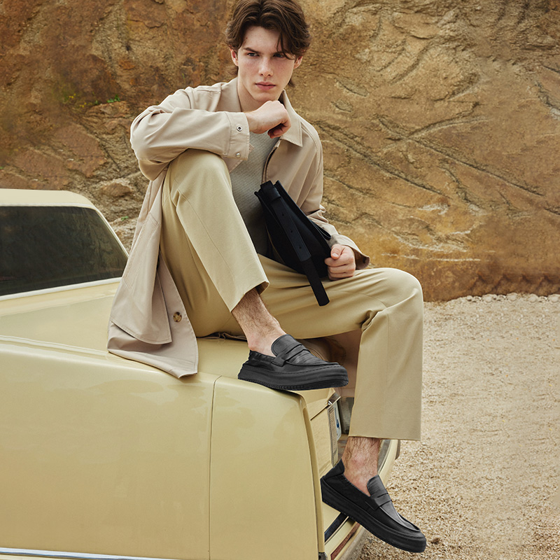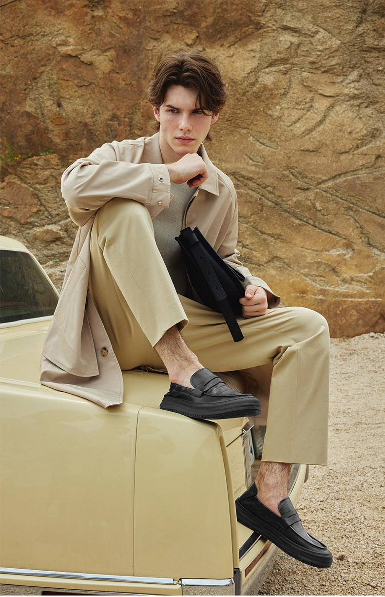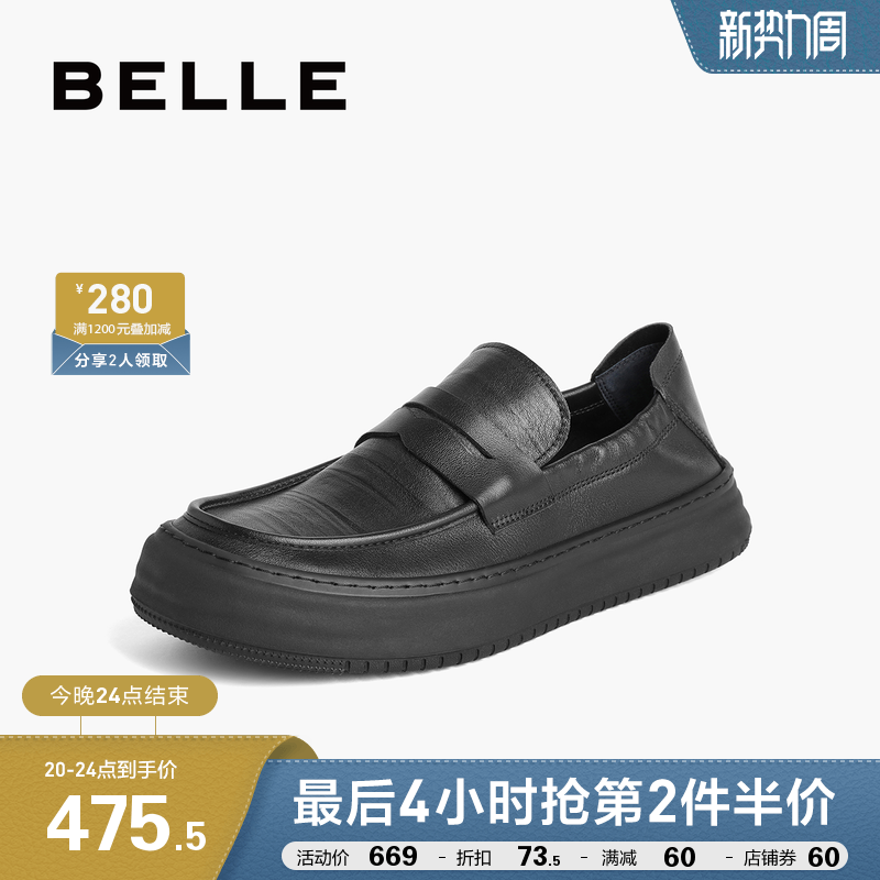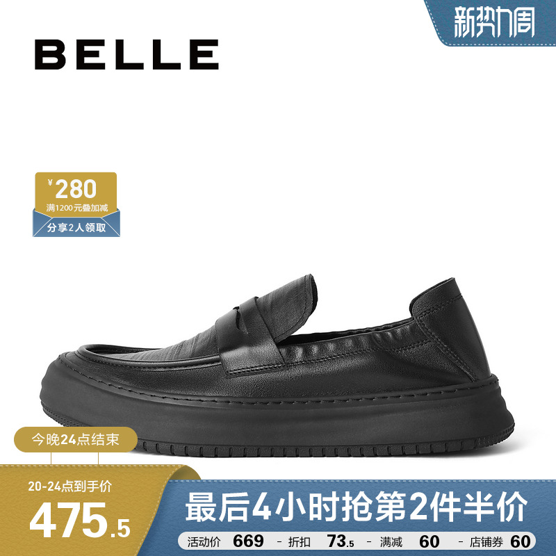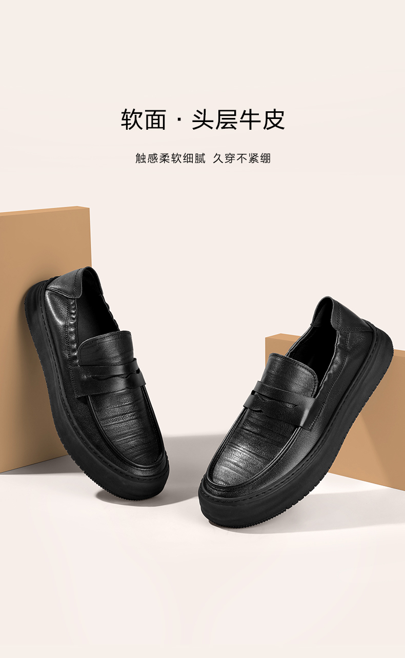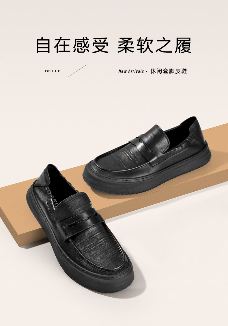 百麗男鞋軟底通勤商務皮鞋2023秋新款真皮休閒套腳爸爸鞋A1174CM3