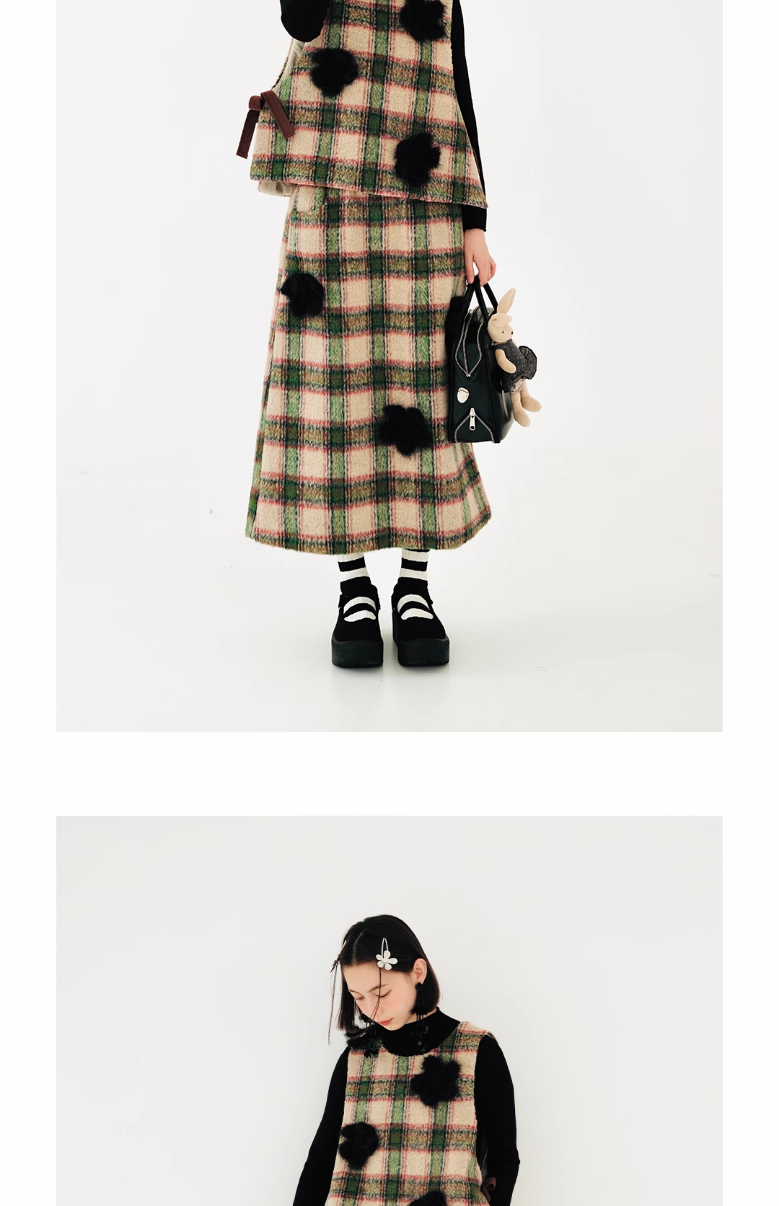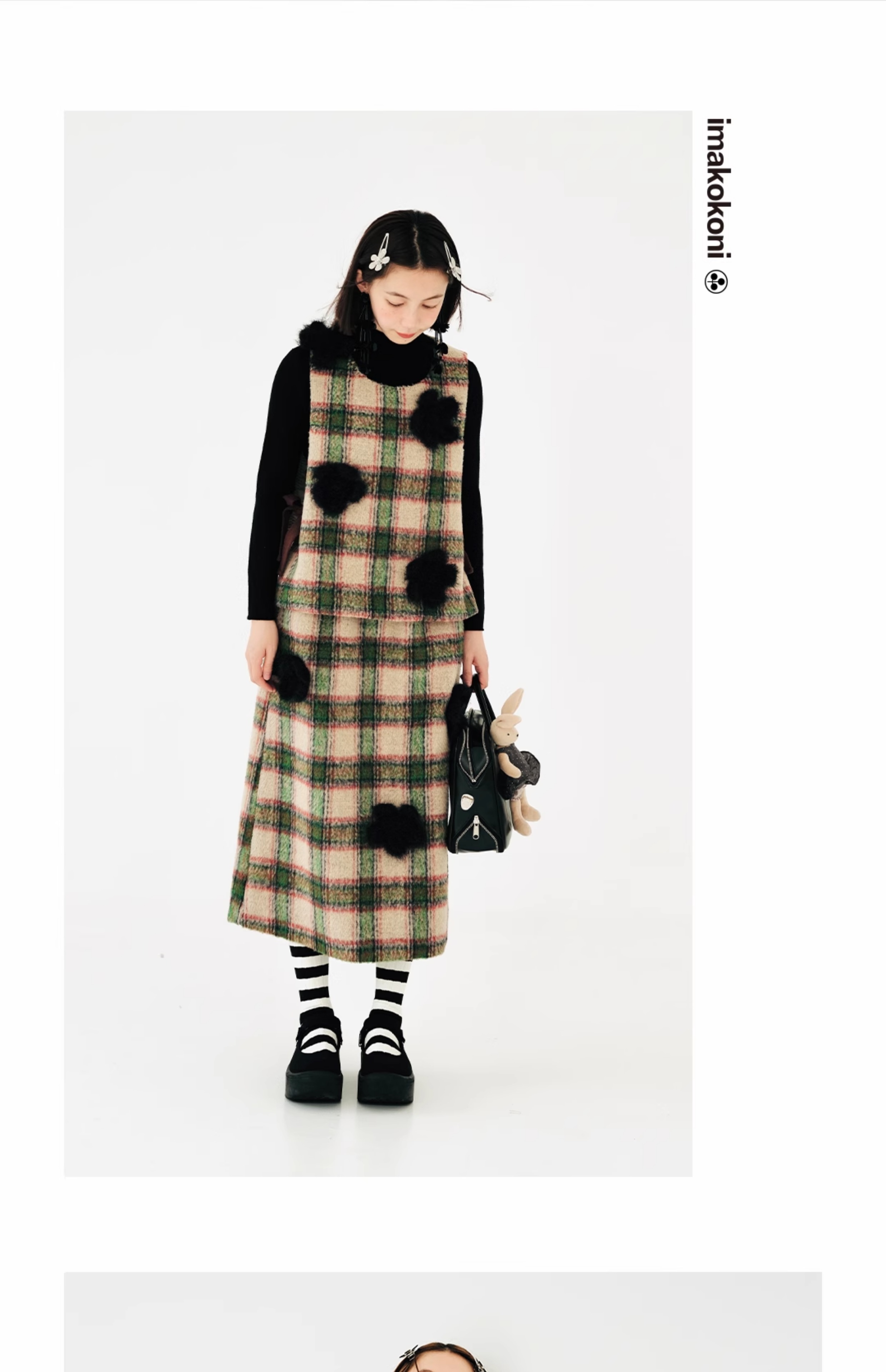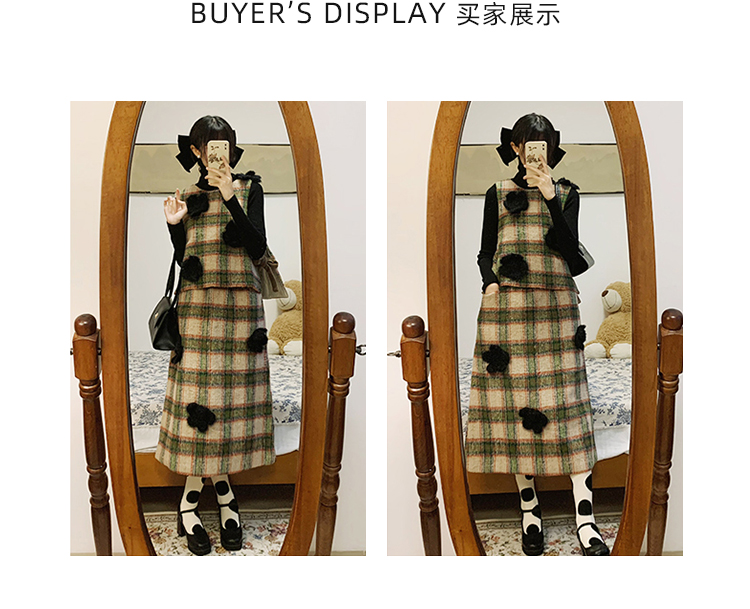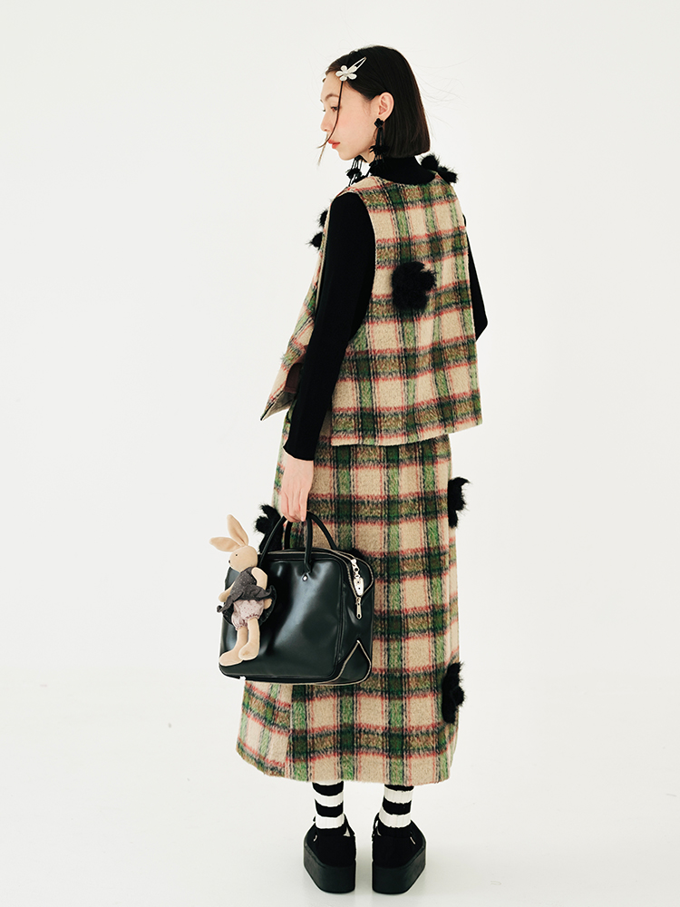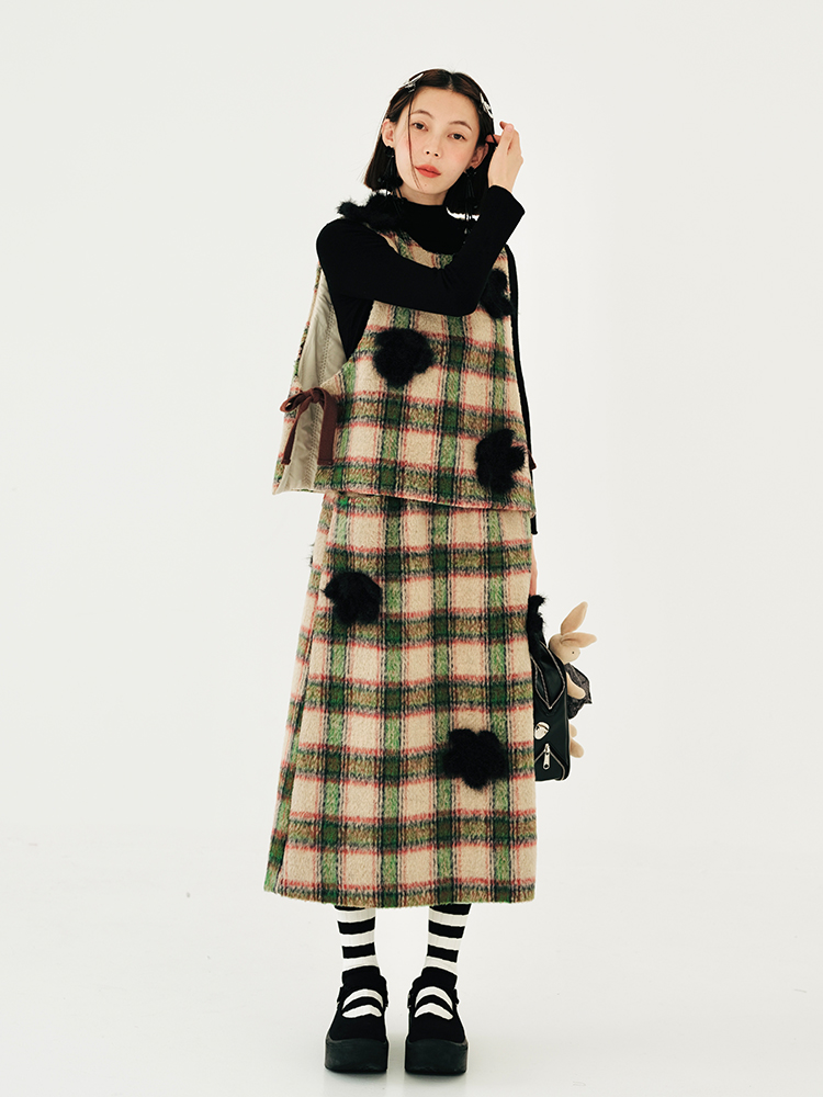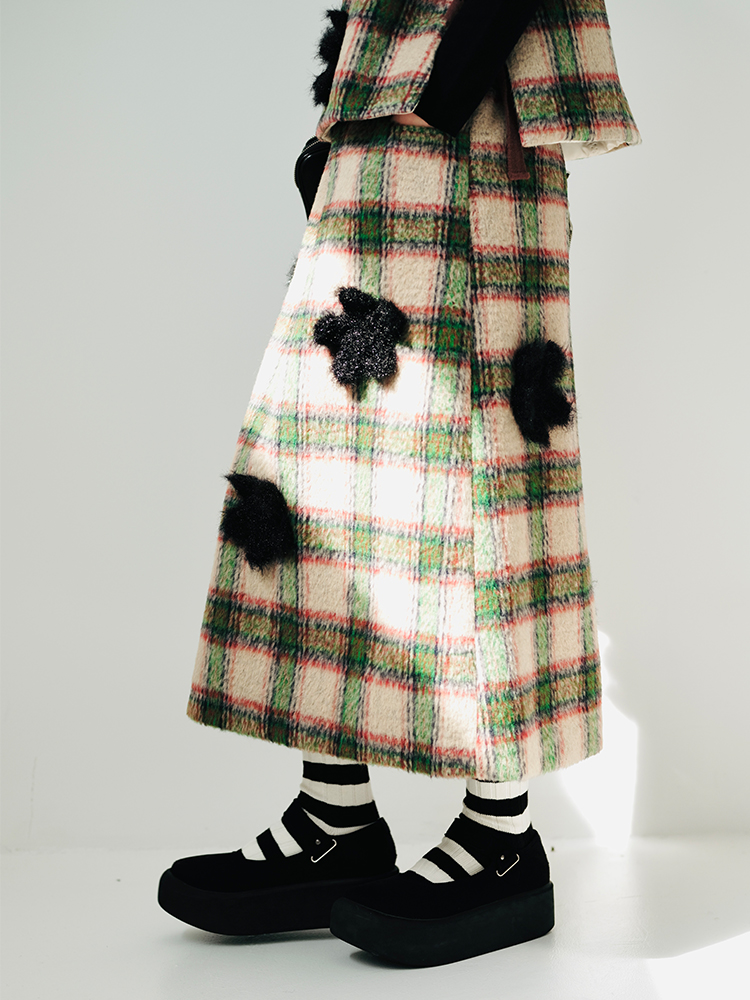 imakokoni原創小眾毛呢格子直筒半裙子女2023秋冬長版百搭223880