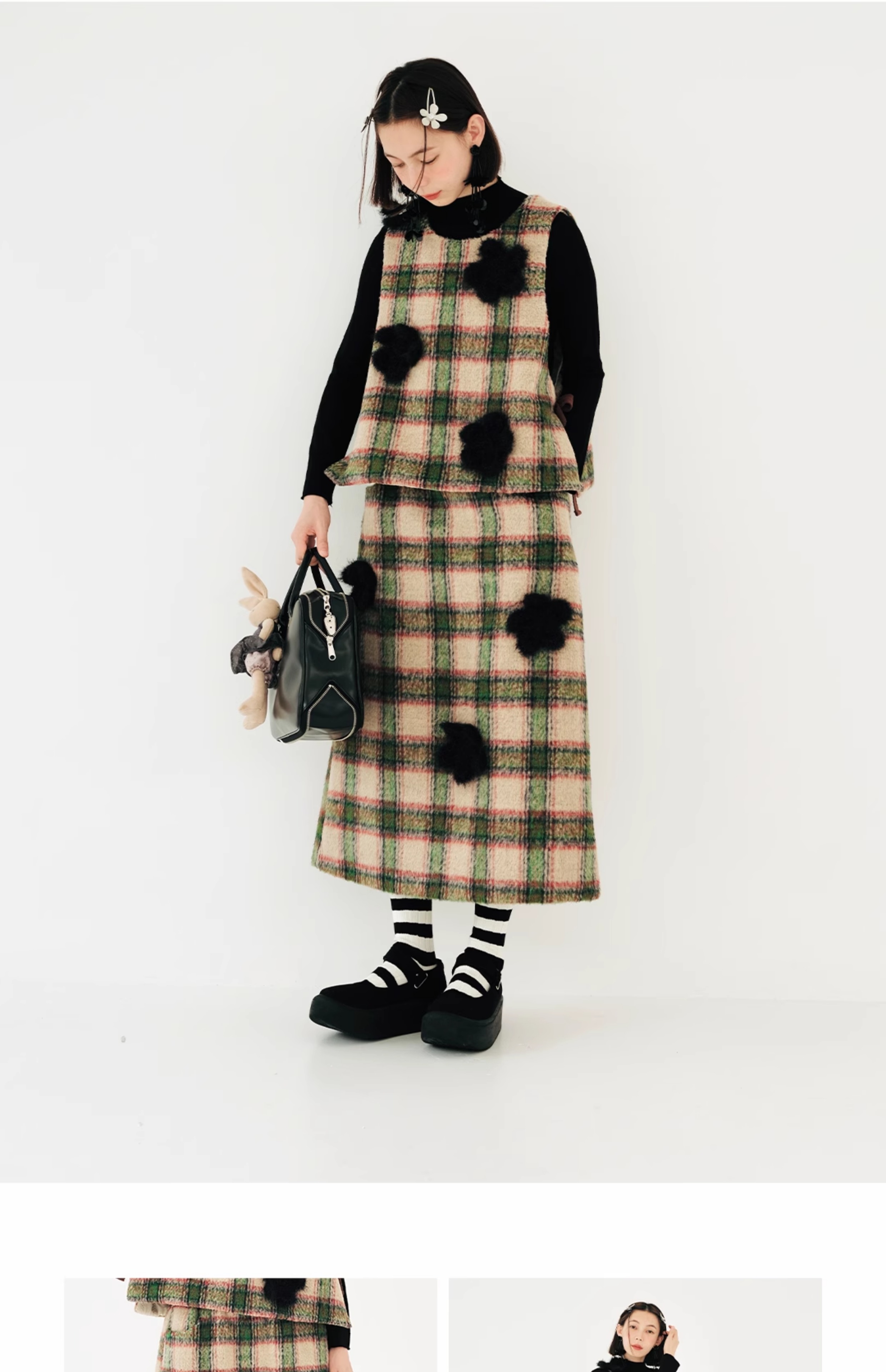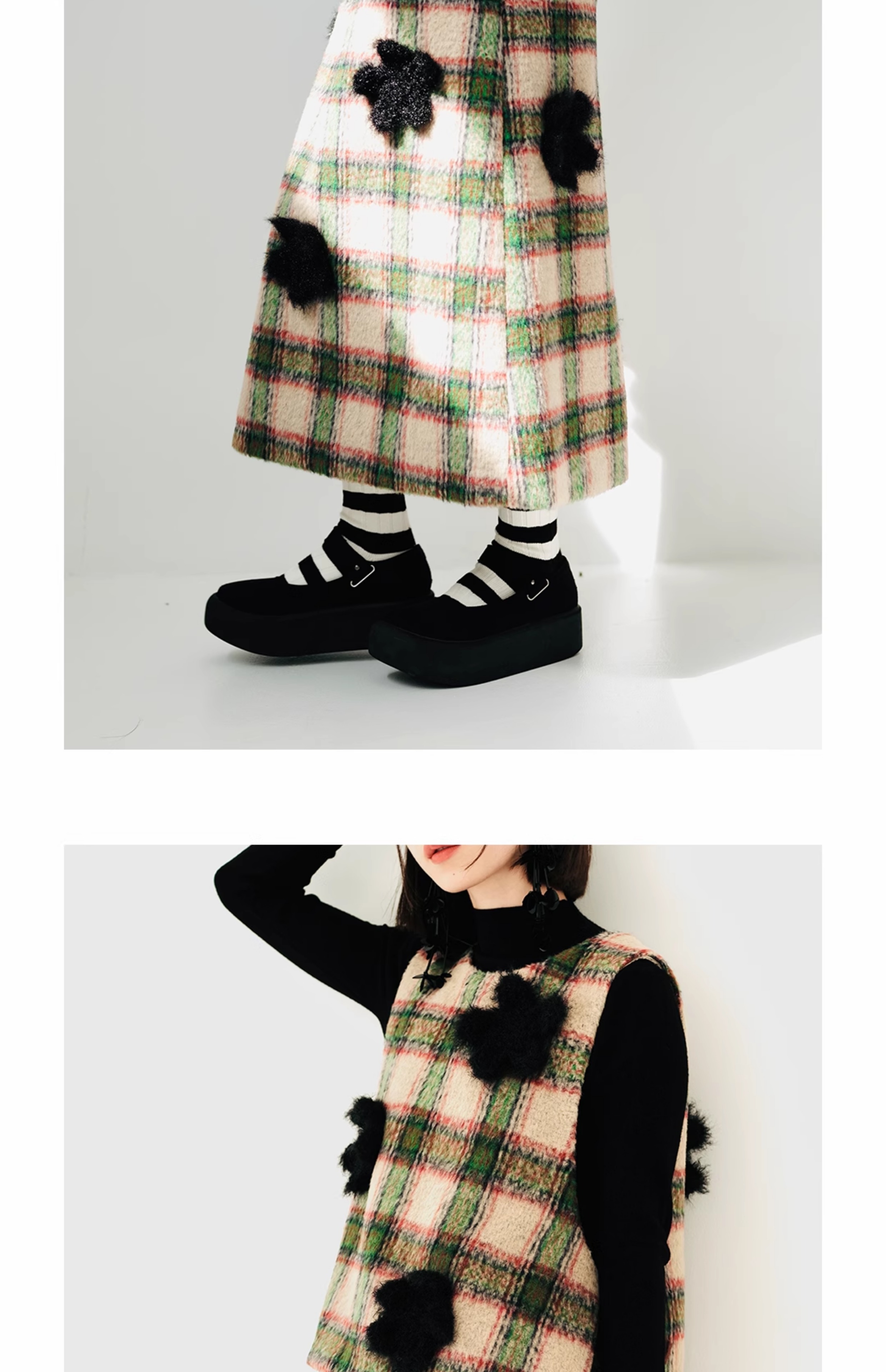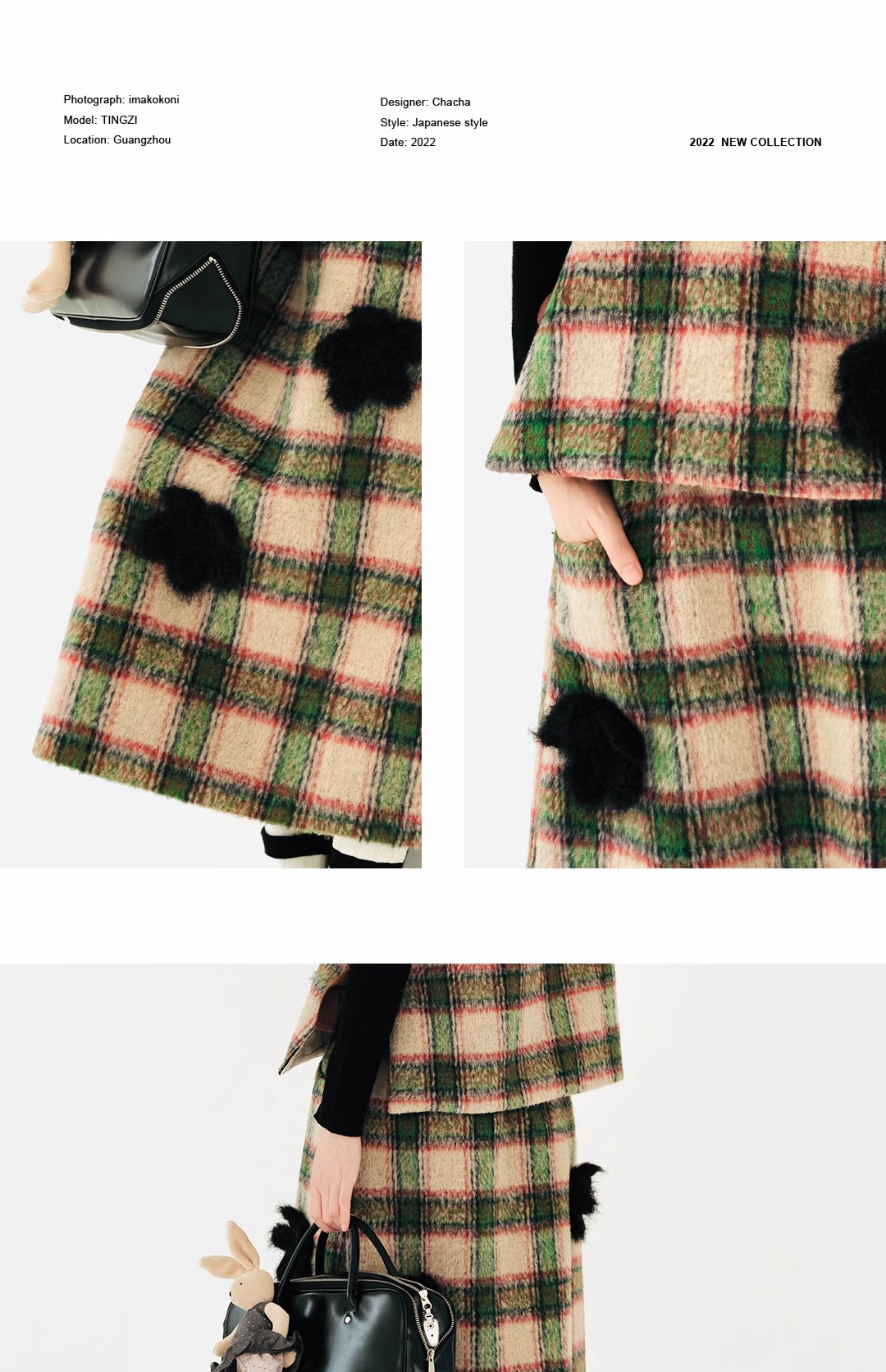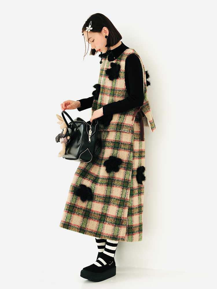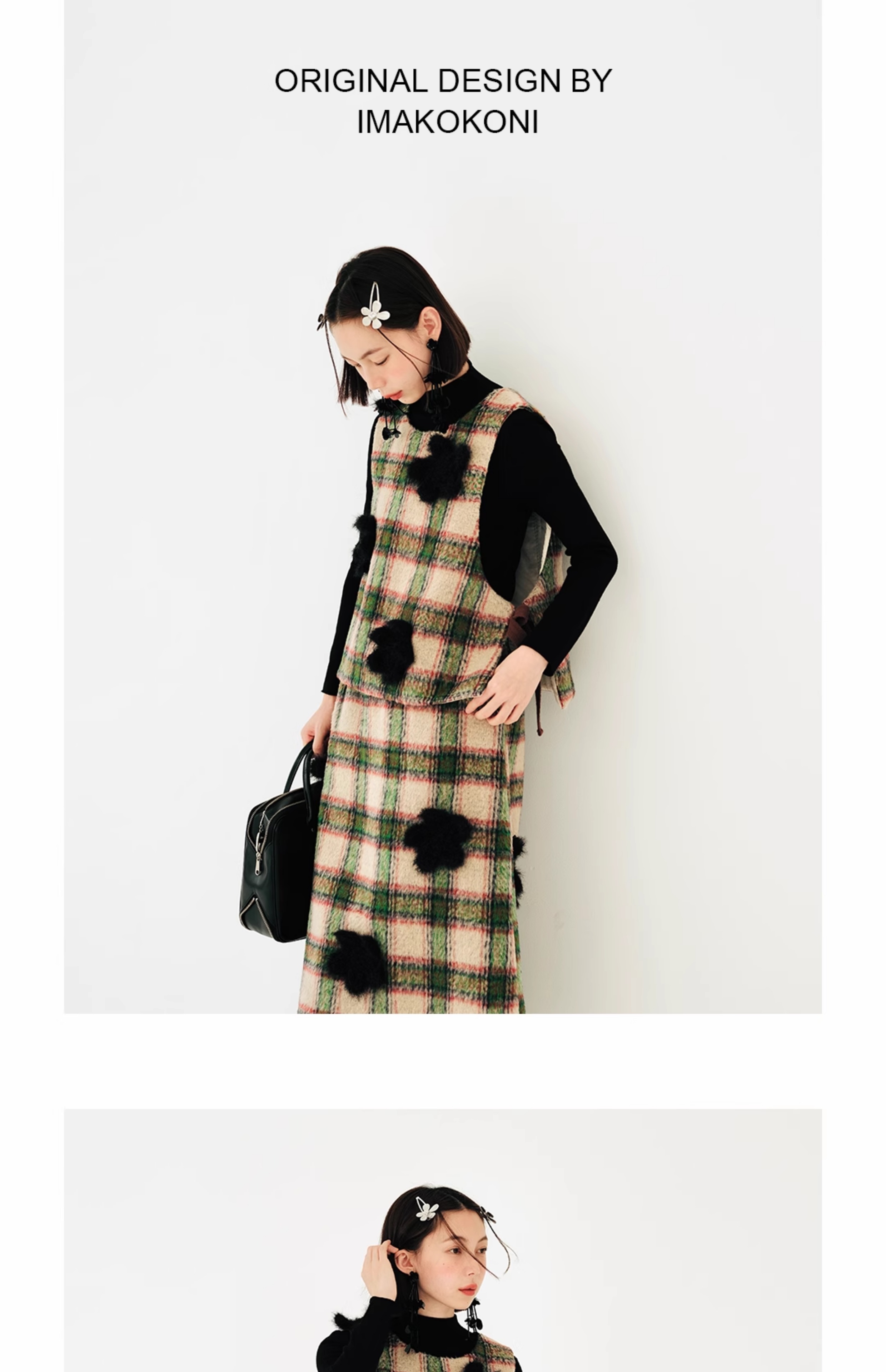 imakokoni原創小眾毛呢格子直筒半裙子女2023秋冬長版百搭223880