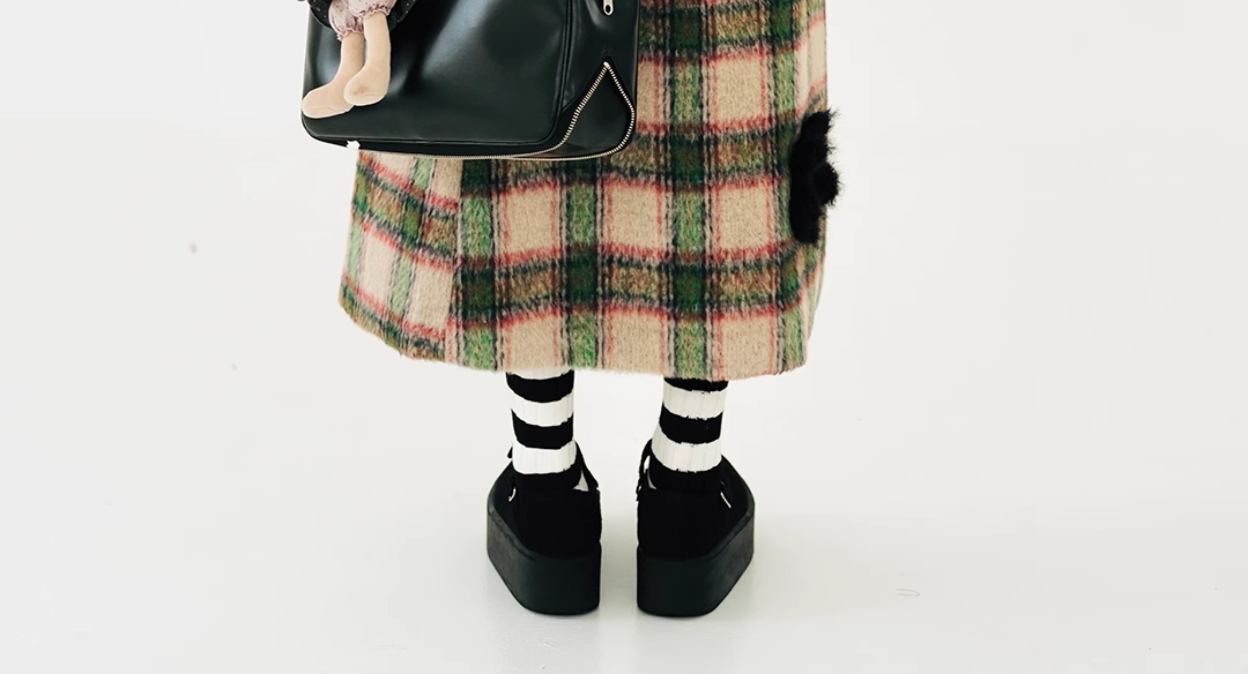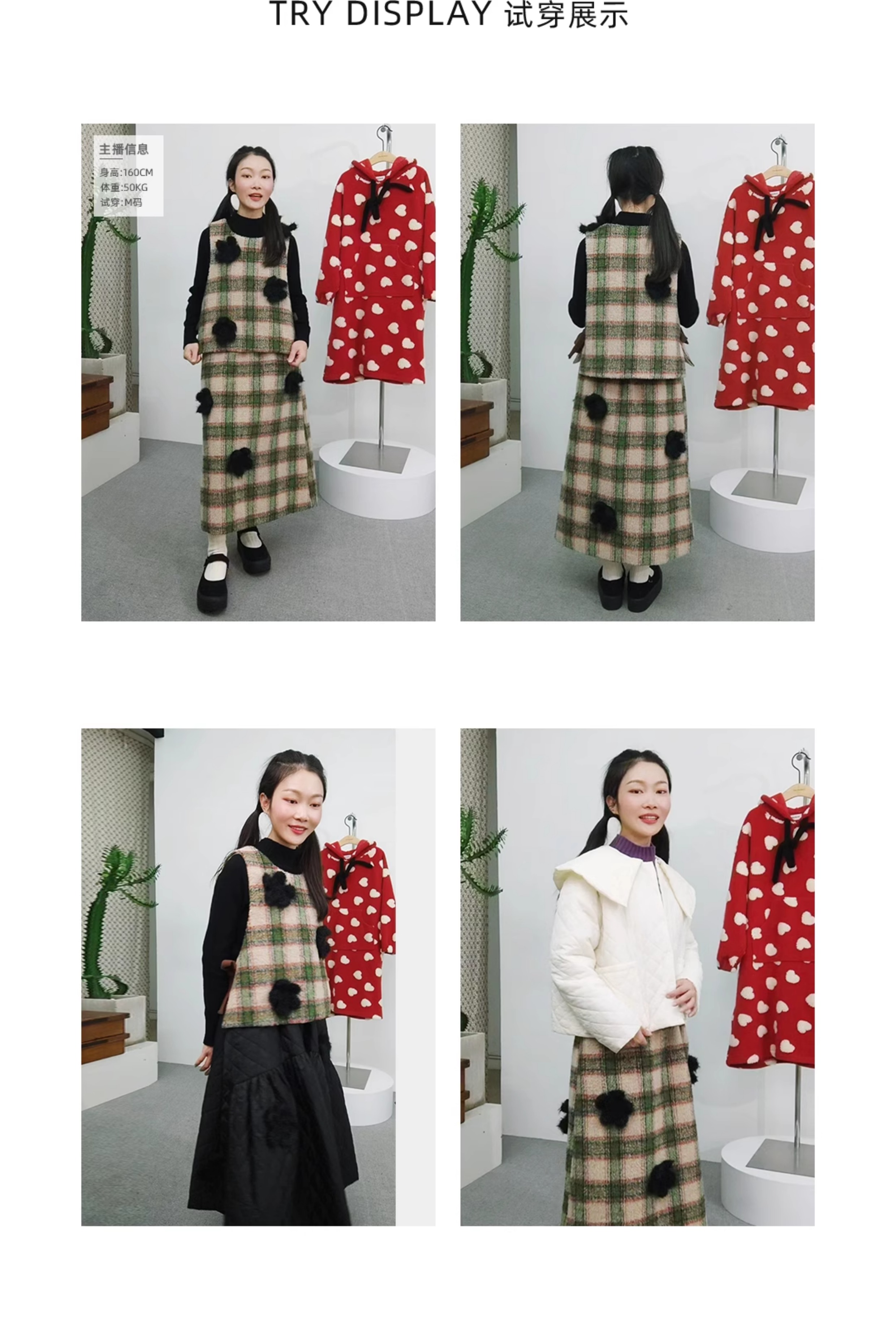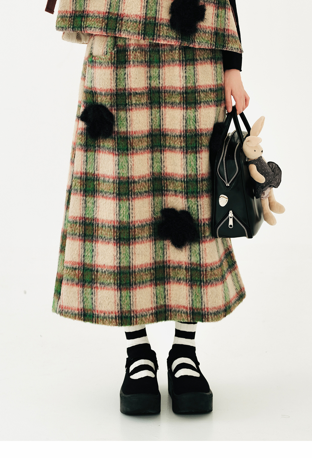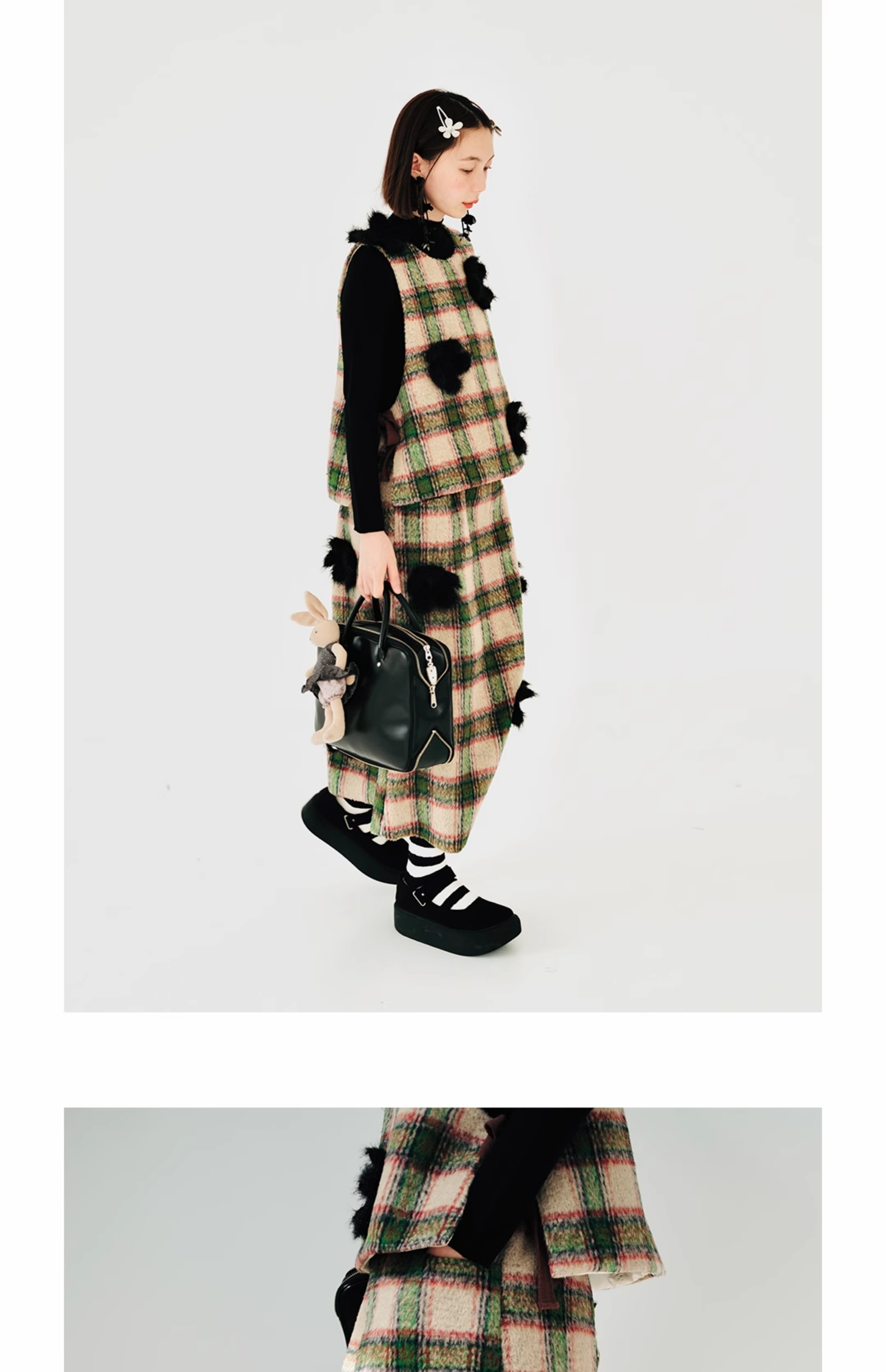 imakokoni原創小眾毛呢格子直筒半裙子女2023秋冬長版百搭223880