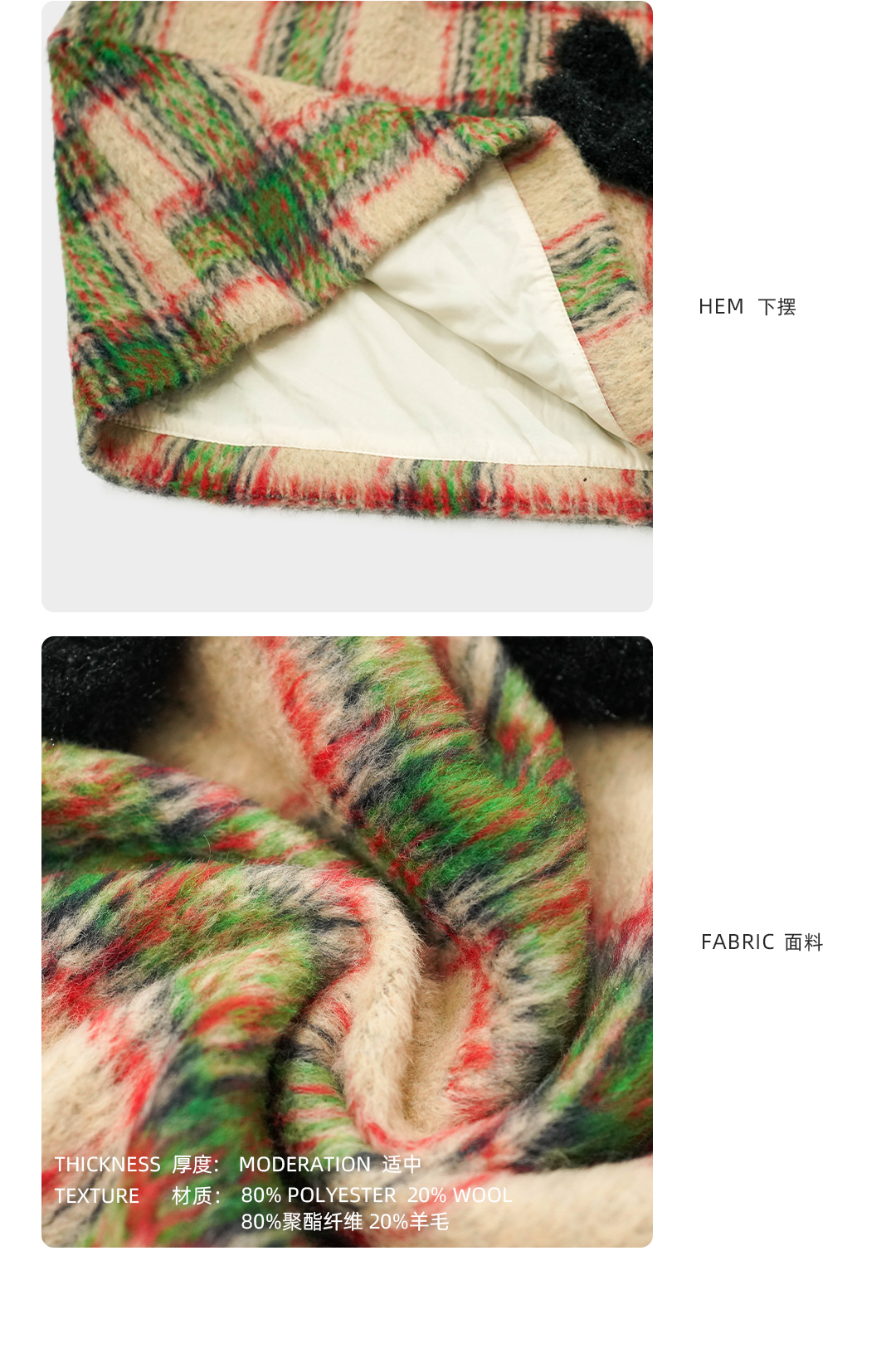 材質成分 聚酯纖維80% 羊毛20%