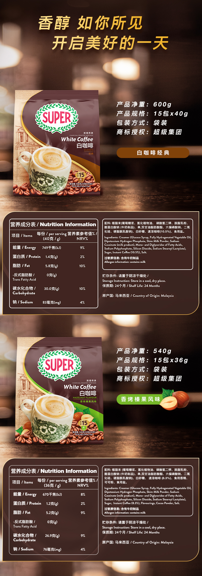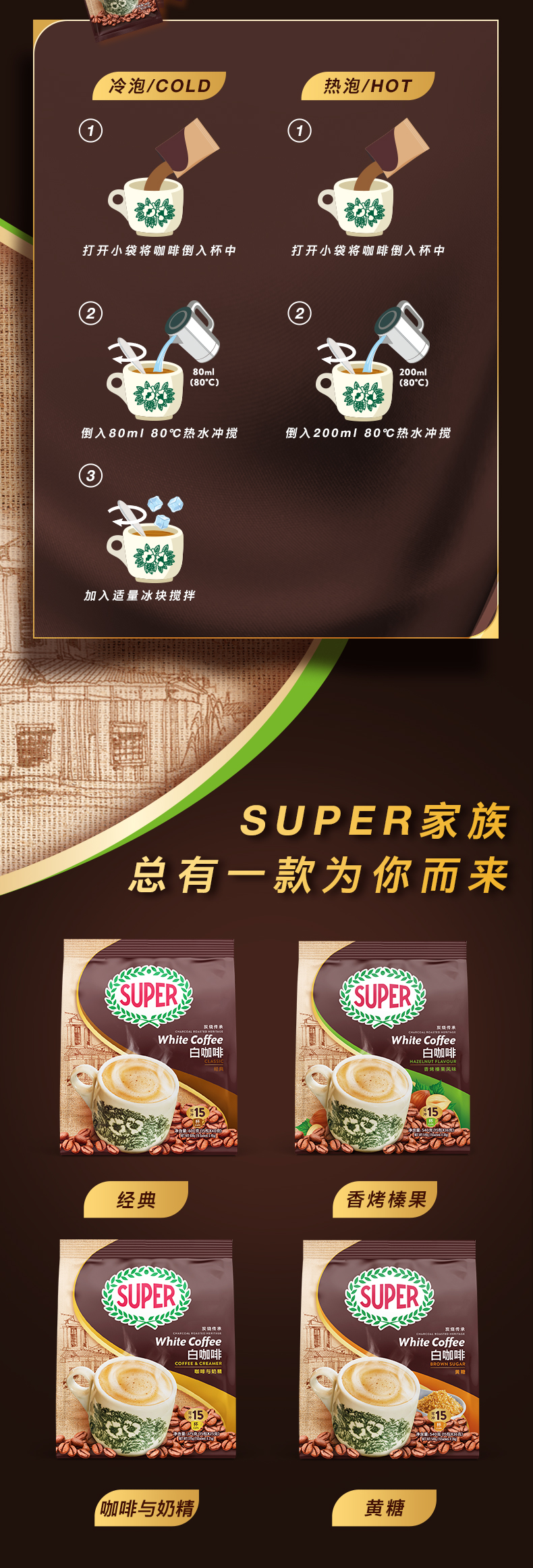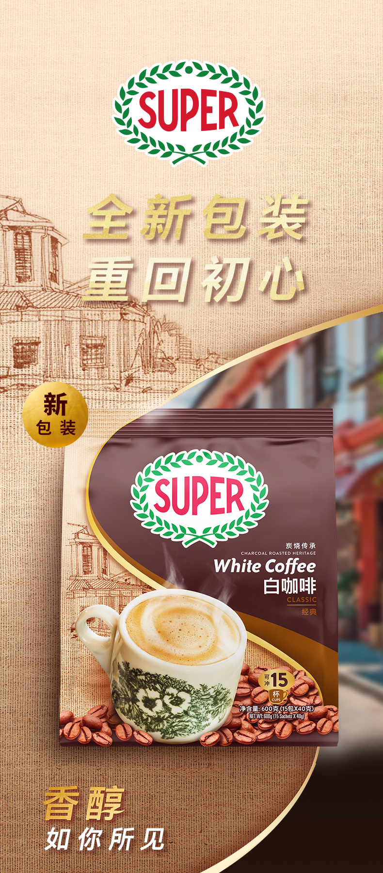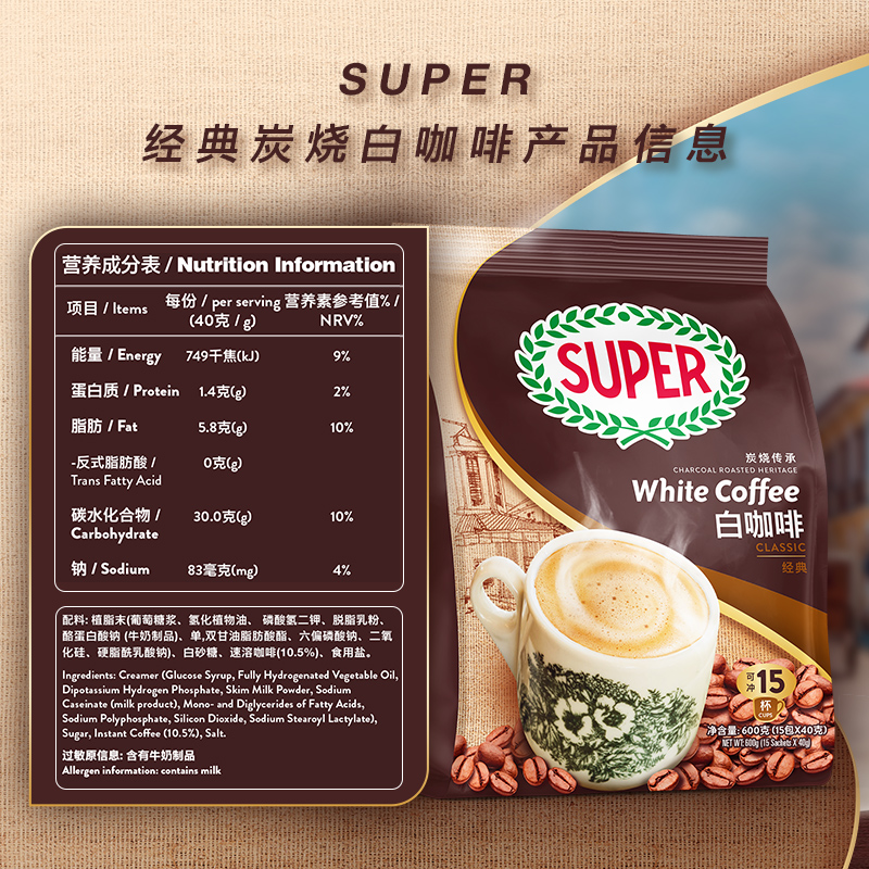 馬來西亞進口怡保super超級炭燒白咖啡經典三合一速溶咖啡粉600g