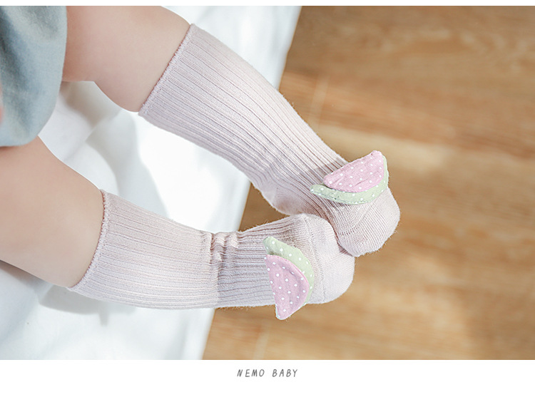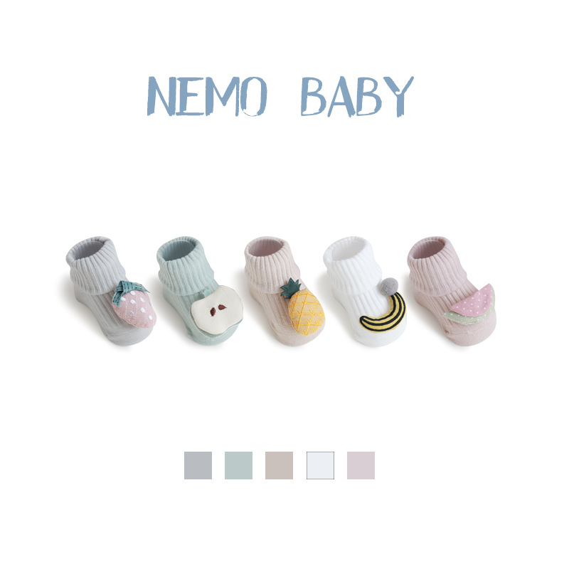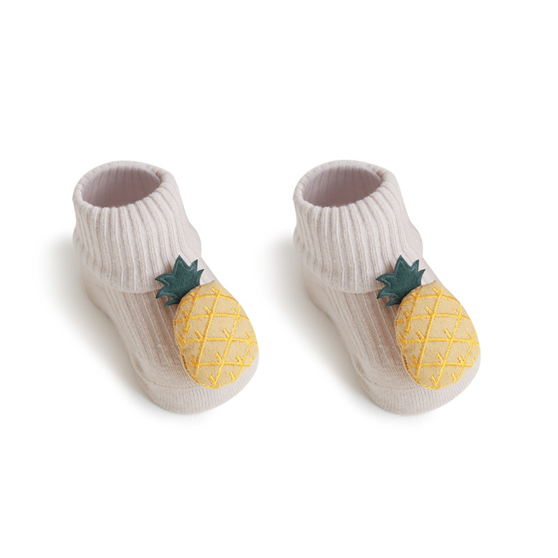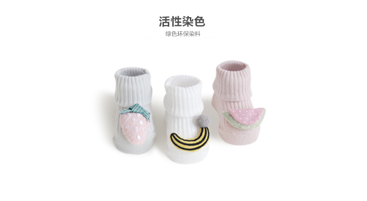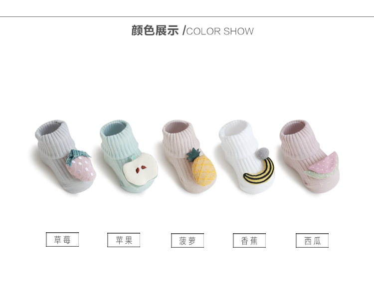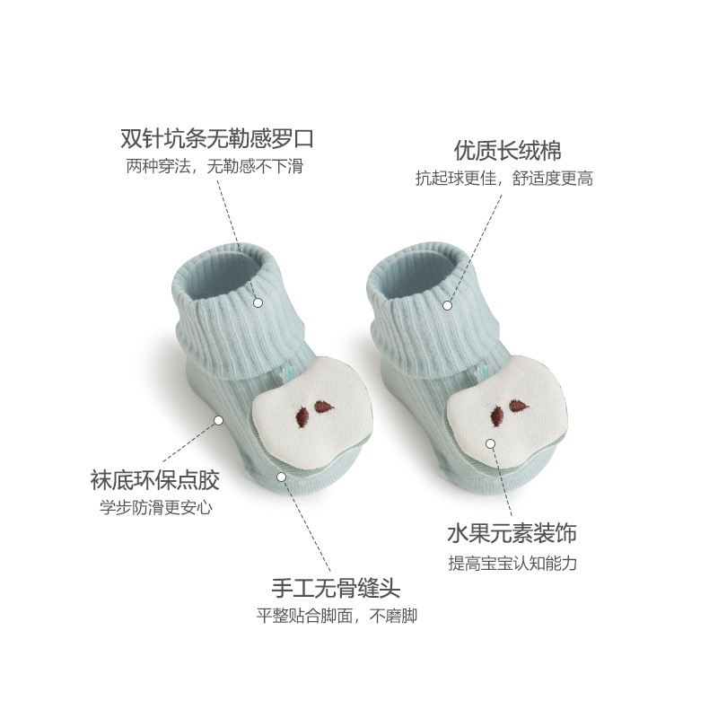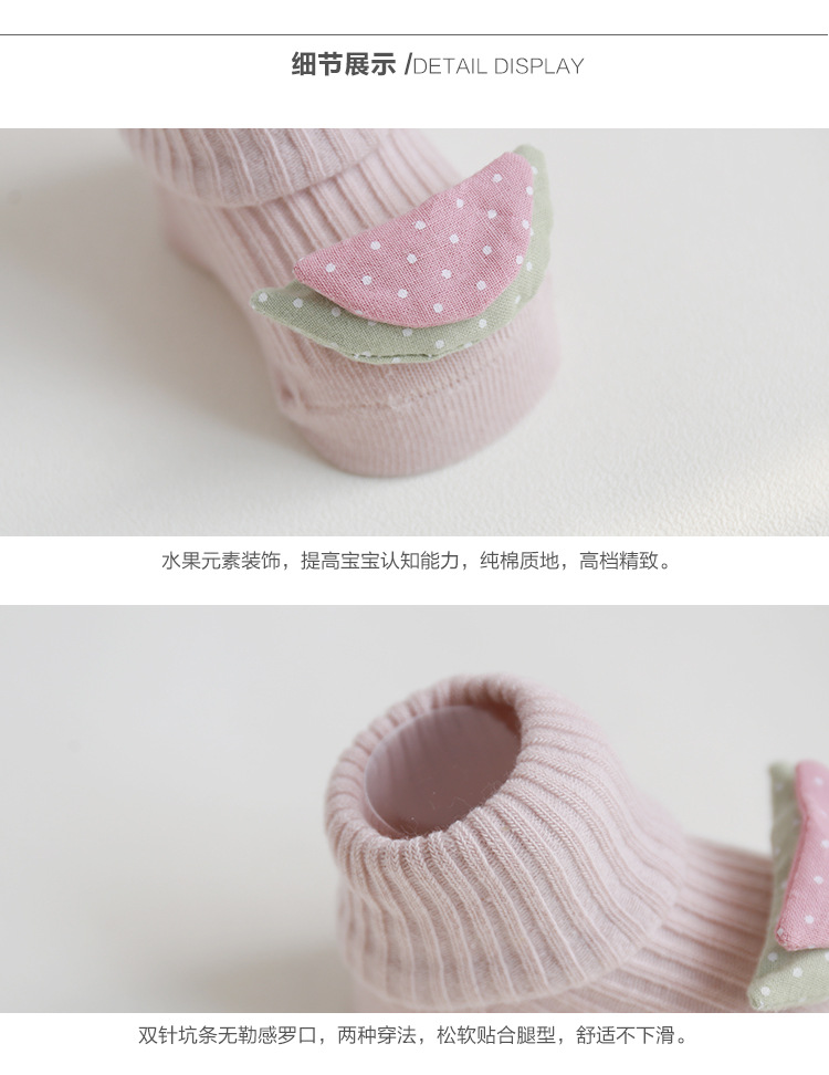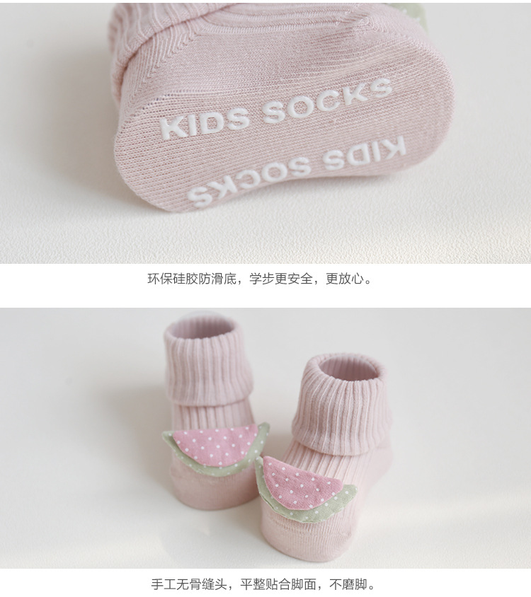 儿童袜子春秋季卡通水果双针宝宝棉袜婴儿防滑地板袜手工缝头批发