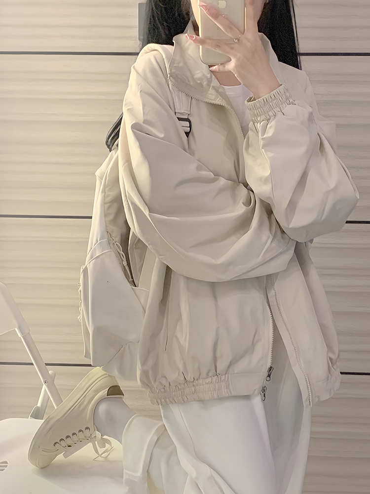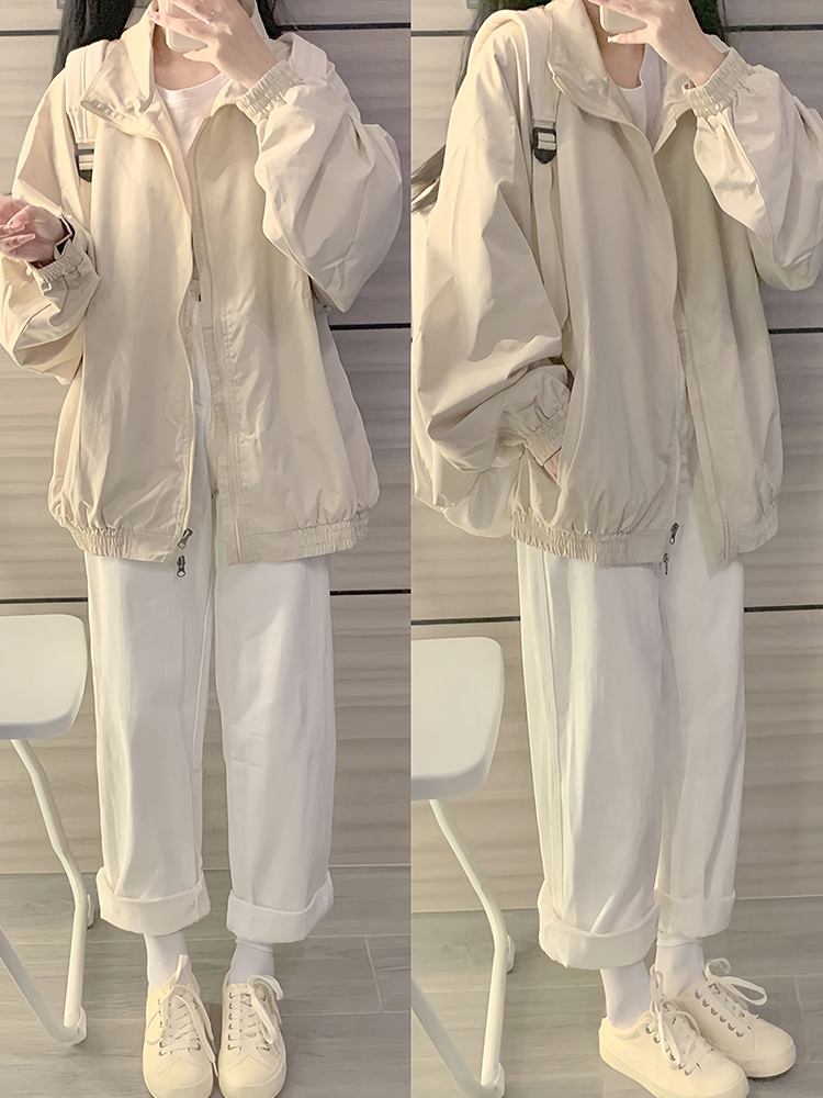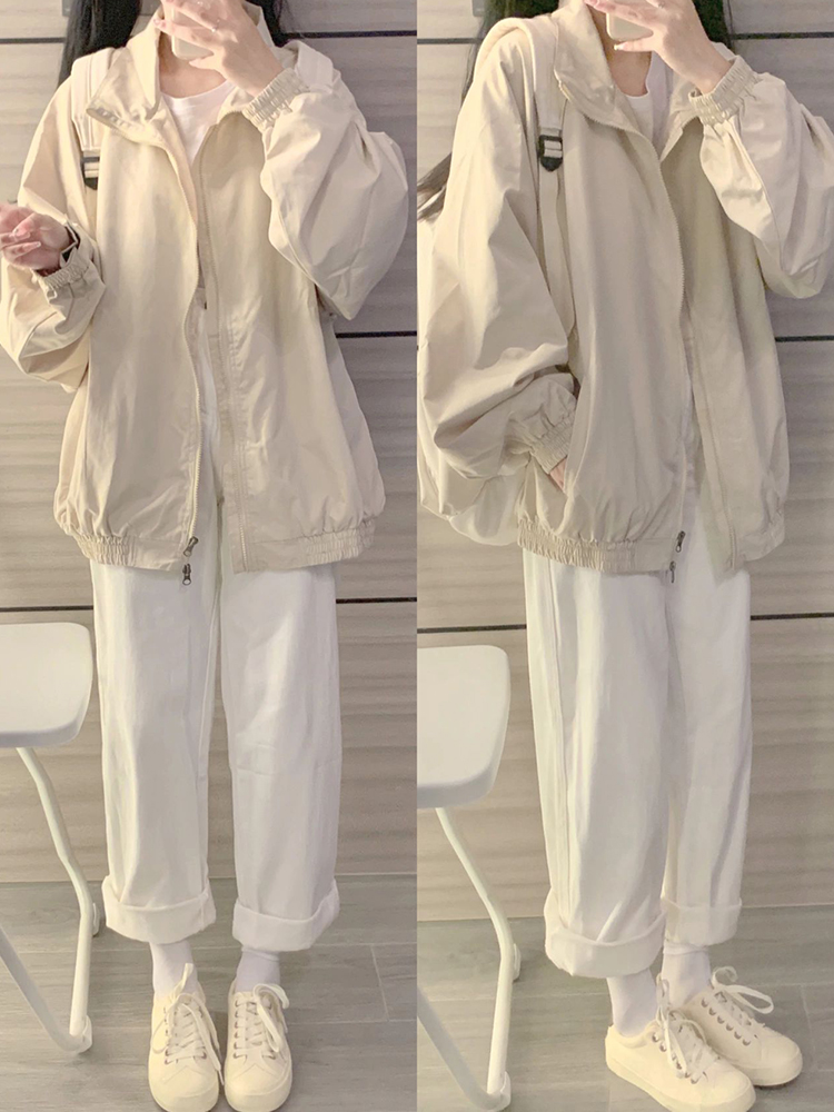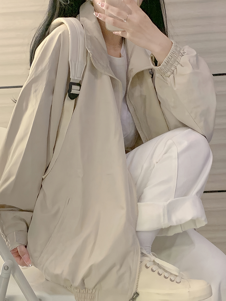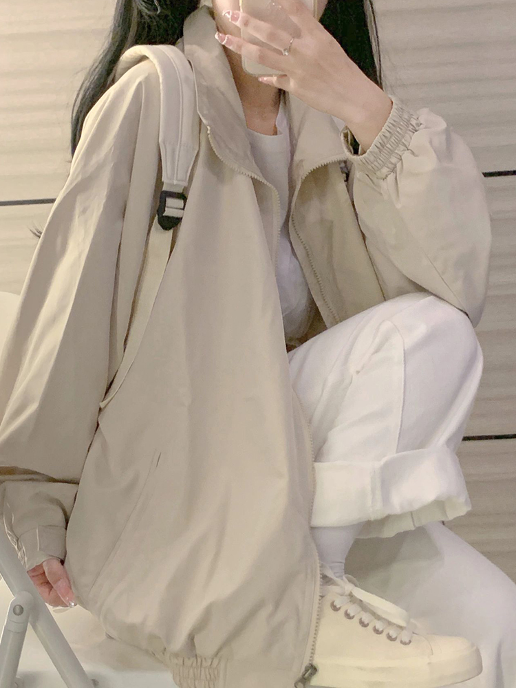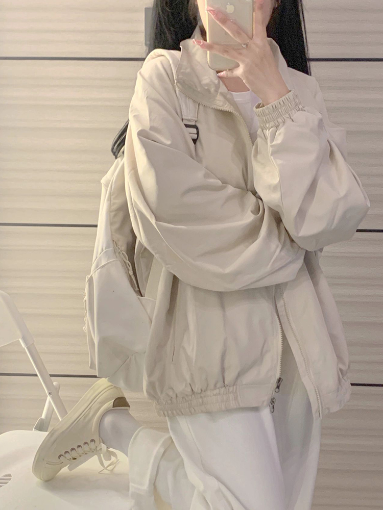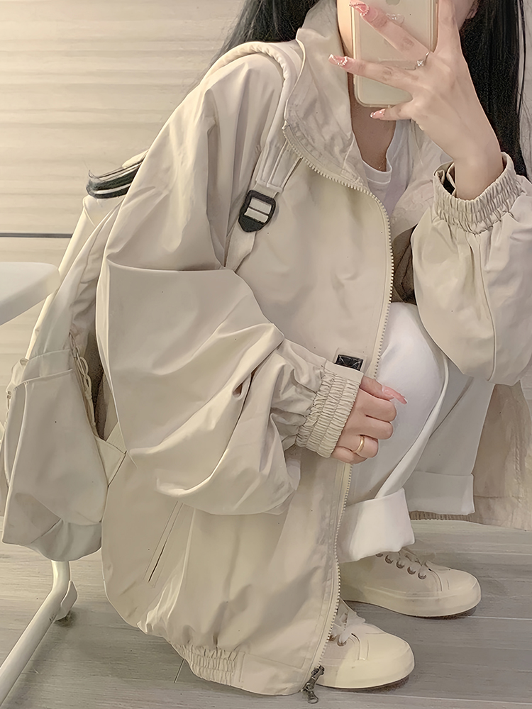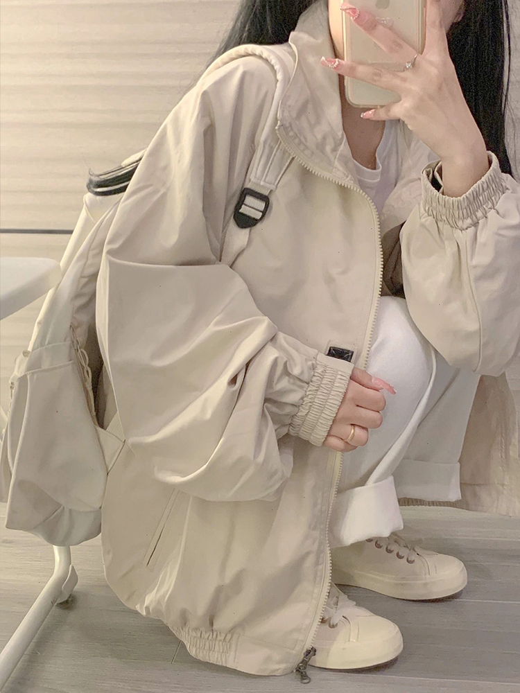 日系復古工裝夾克衝鋒衣外套女小個子2023春夏薄款獨特風衣上衣潮