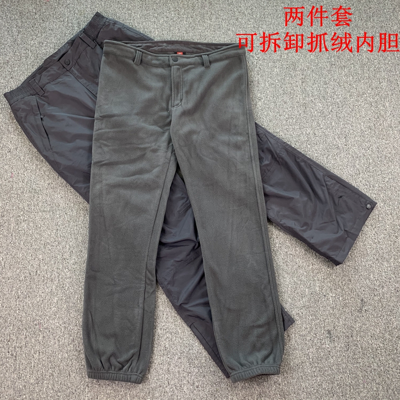 衝鋒褲男子戶外保暖兩件套可拆卸抓絨冬季加絨加厚防水防風登山褲