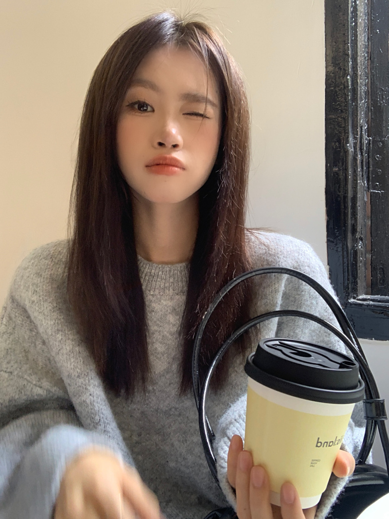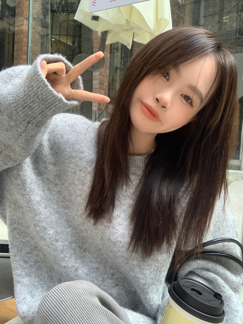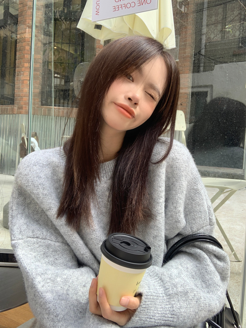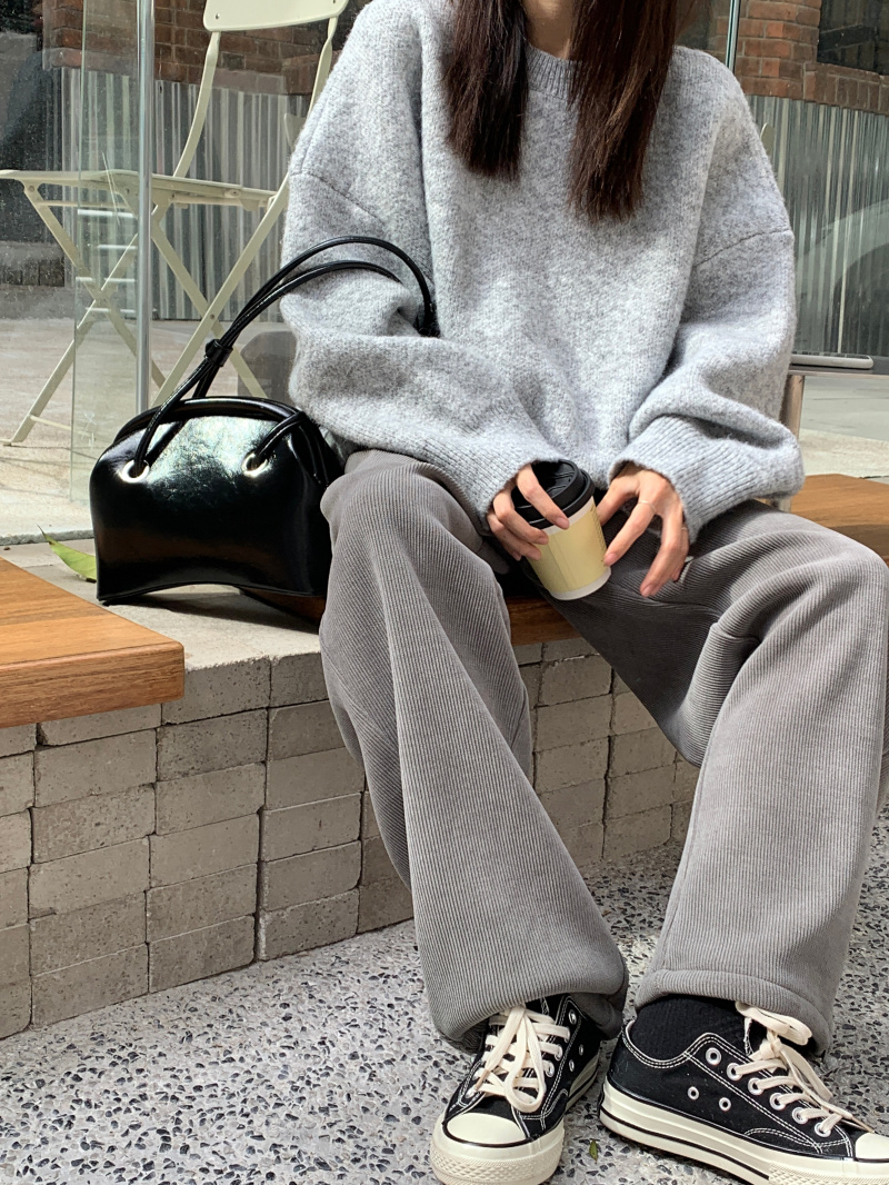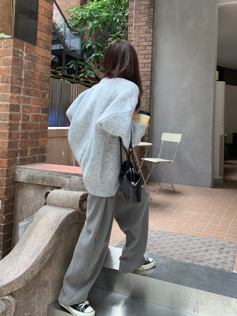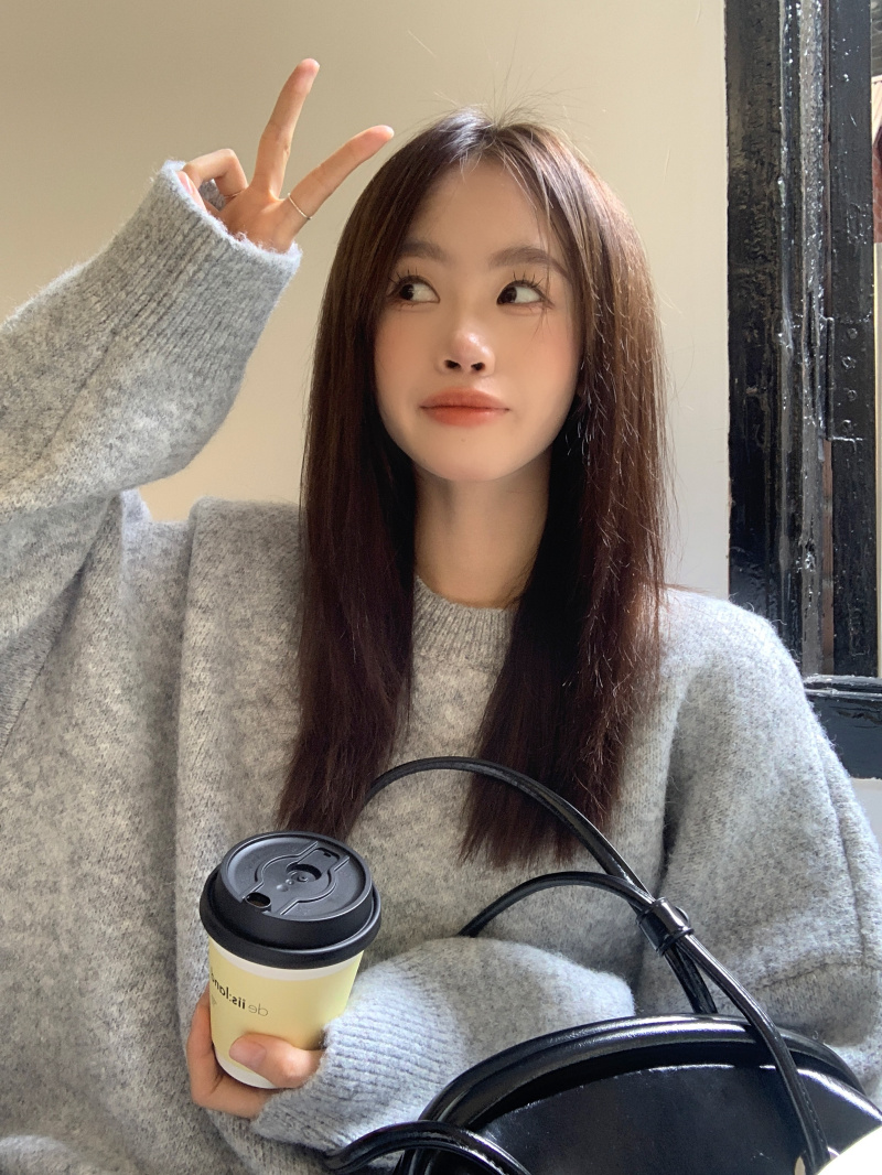 PPHOME灰糯甜茶~灰色毛衣女秋冬寬鬆BF慵懶風加厚套頭針織衫上衣