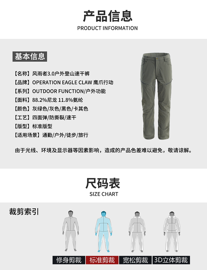 鷹爪行動速乾褲男彈力直筒長褲夏季薄款戶外登山徒步衝鋒戰術褲子
