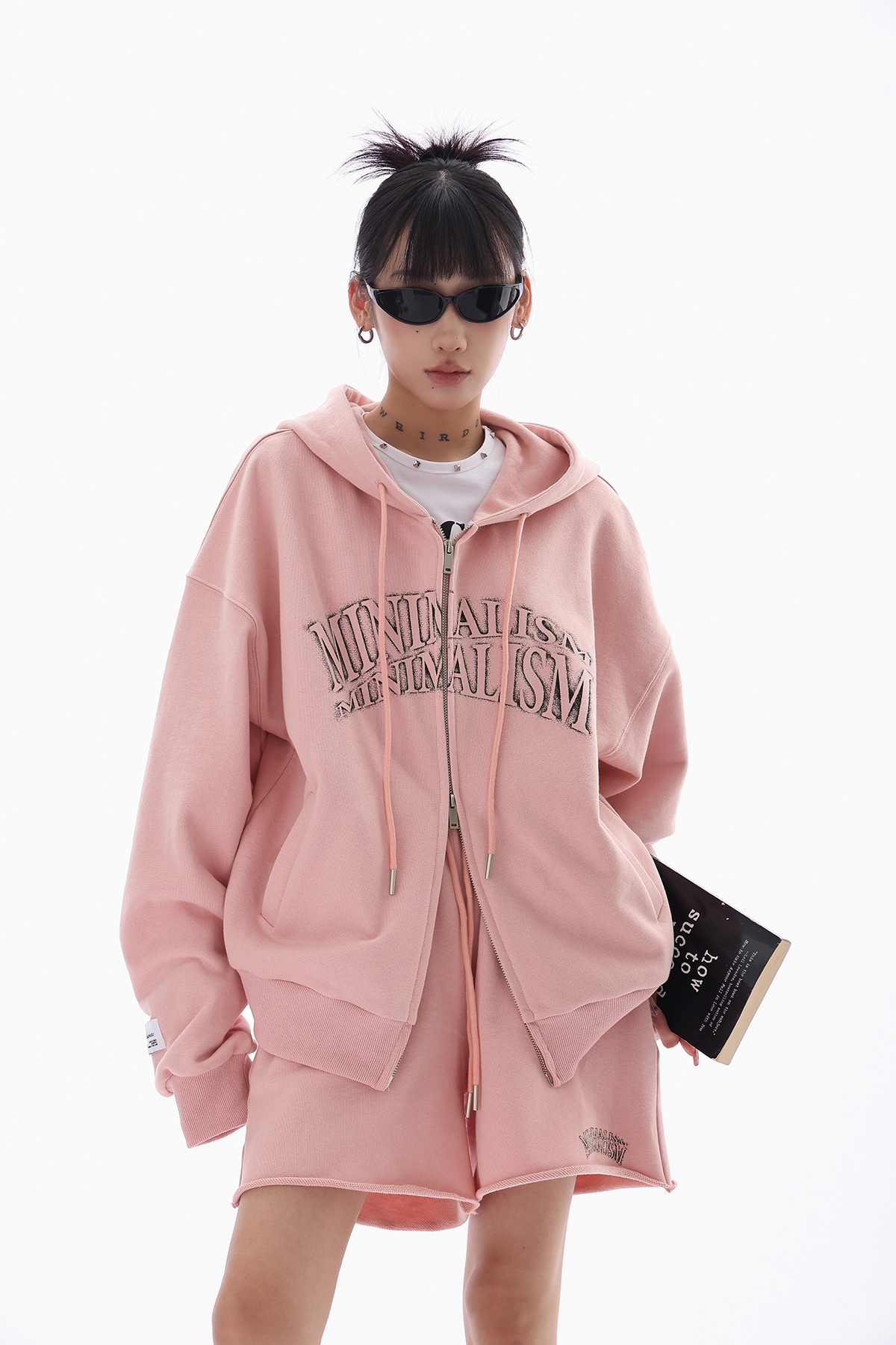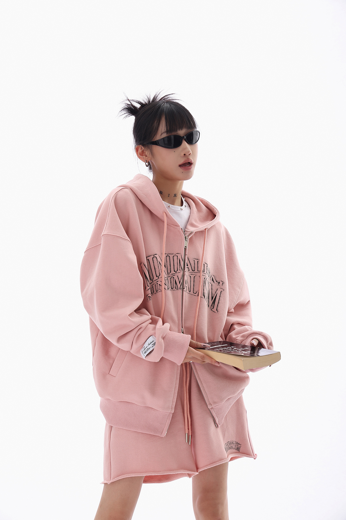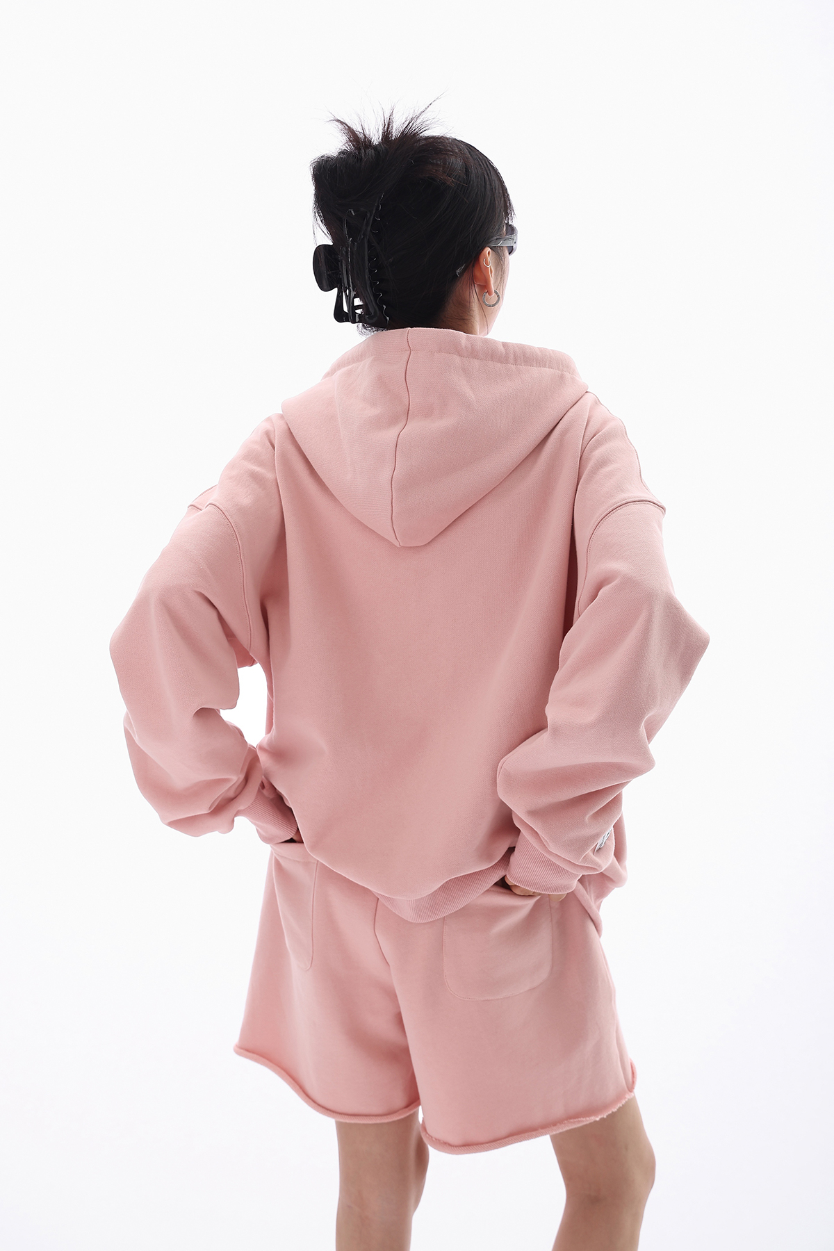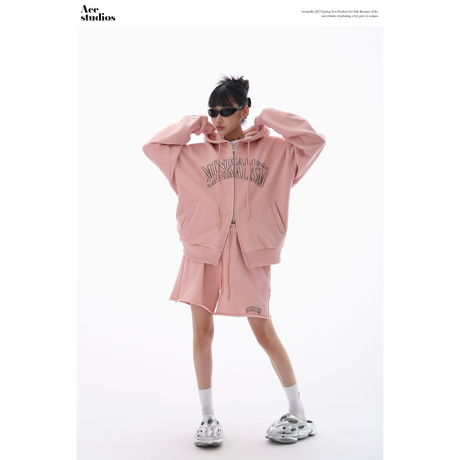 Acestudios 橘粉色衛衣開衫+短褲2件套女2023早秋新款寬鬆套裝