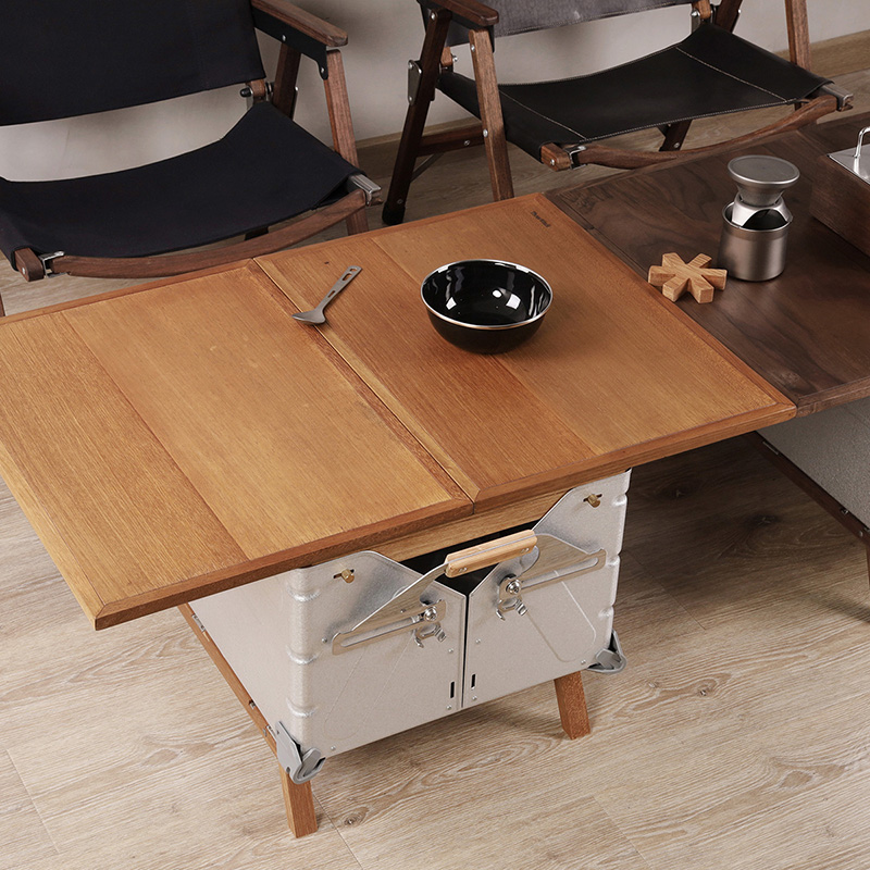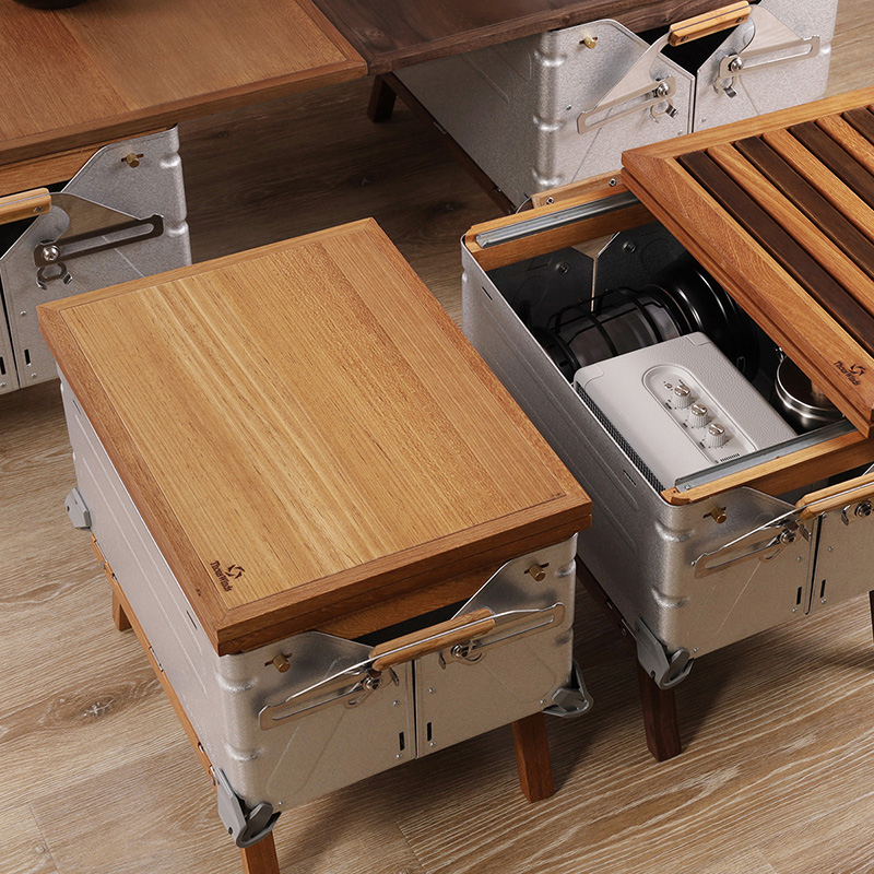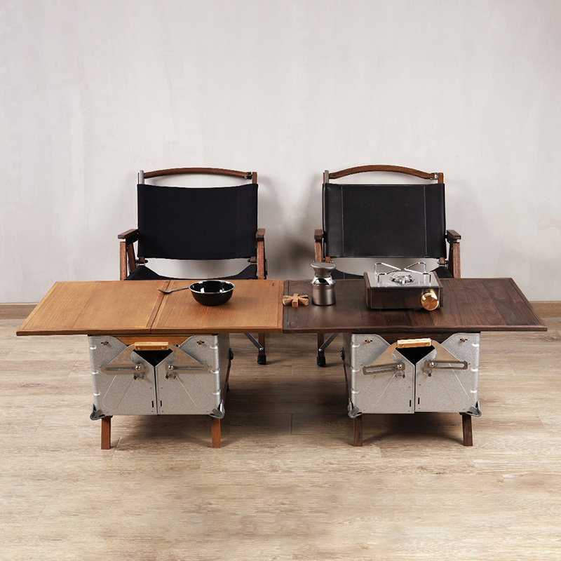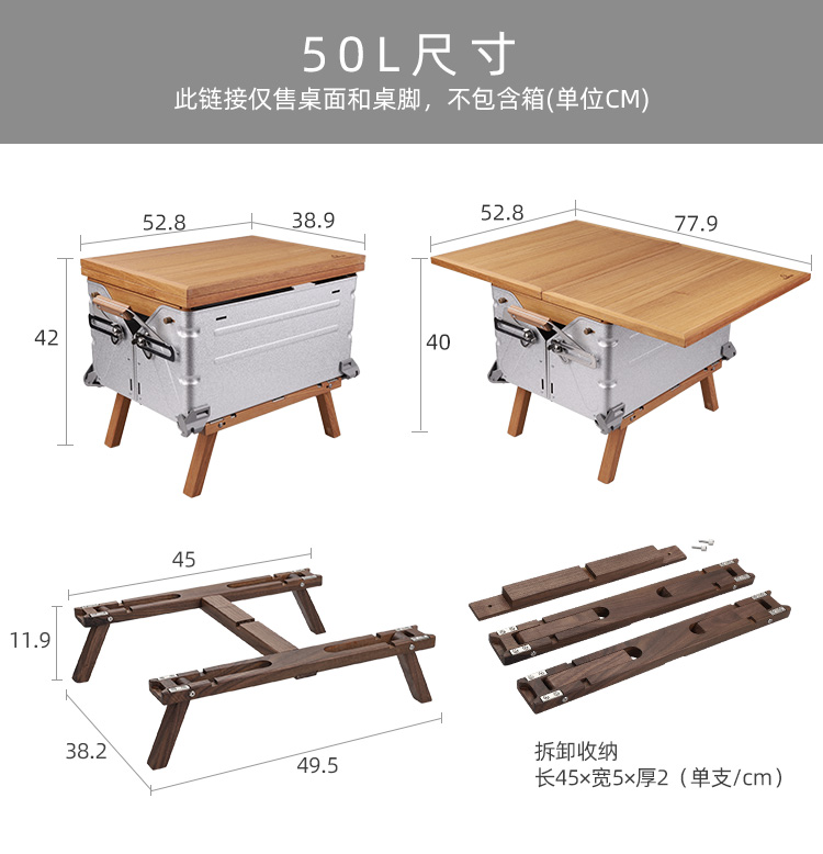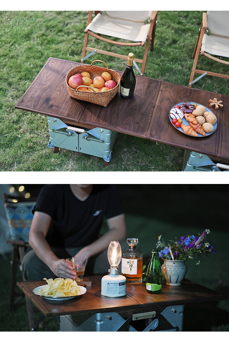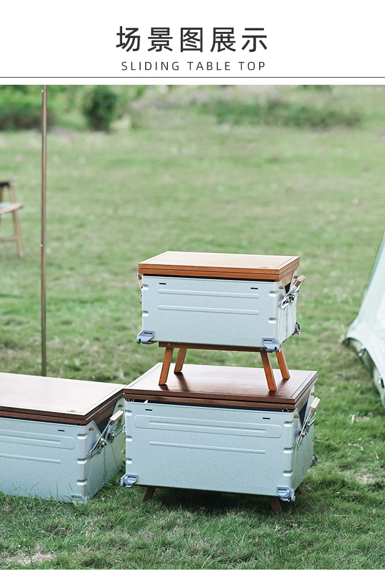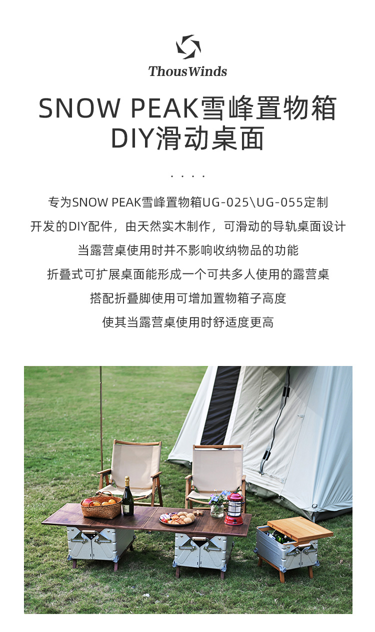 Thous Winds戶外露營收納箱桌板滑動推拉黑胡桃木柚木蓋板摺疊板