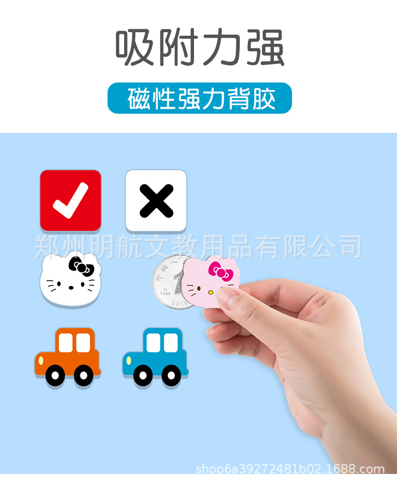 颜色 磁性小猫咪-白色5粒,磁性小猫咪-粉色5粒,磁性小汽车-蓝色5粒,磁性小汽车-红色5粒,磁性-√好5粒,磁性-×号-5粒,混装一套30粒