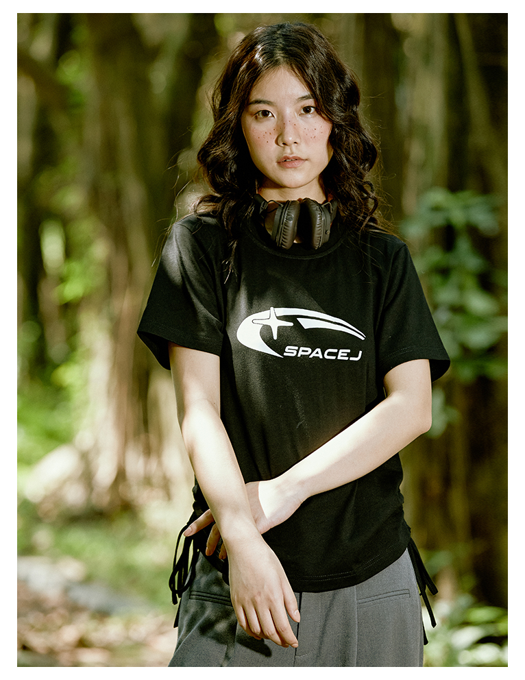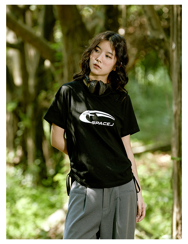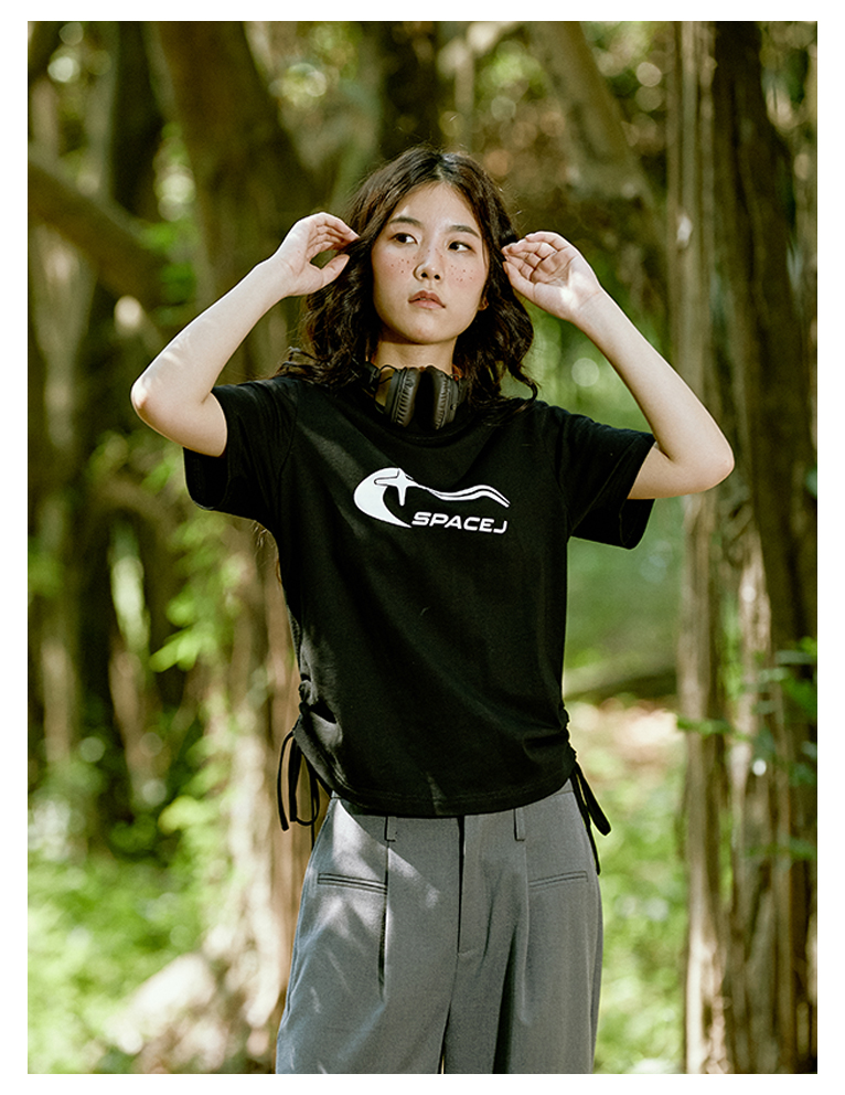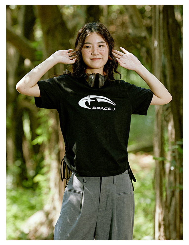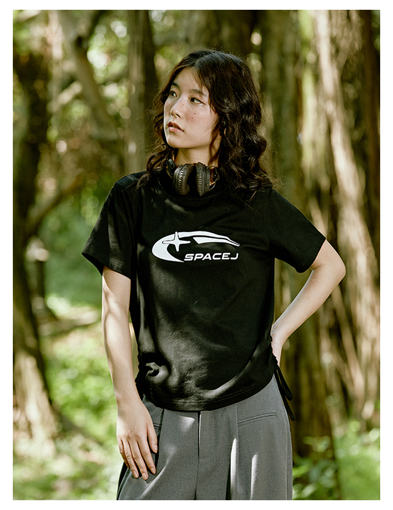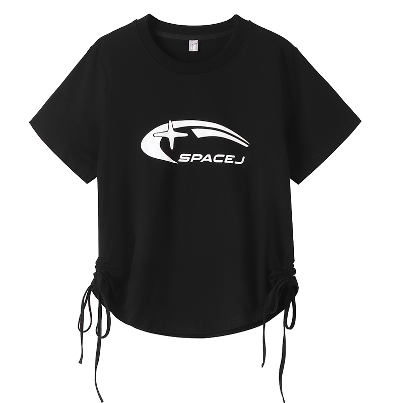 珍妮宇航局正肩魚骨緊身收腰短款短袖t恤女夏季設計感小眾上衣潮