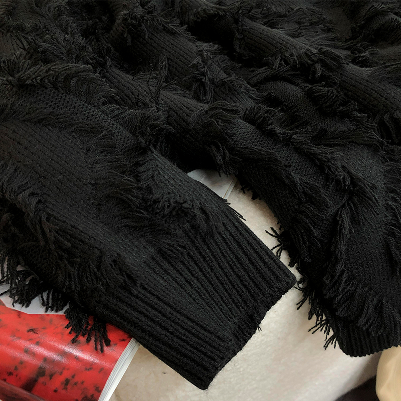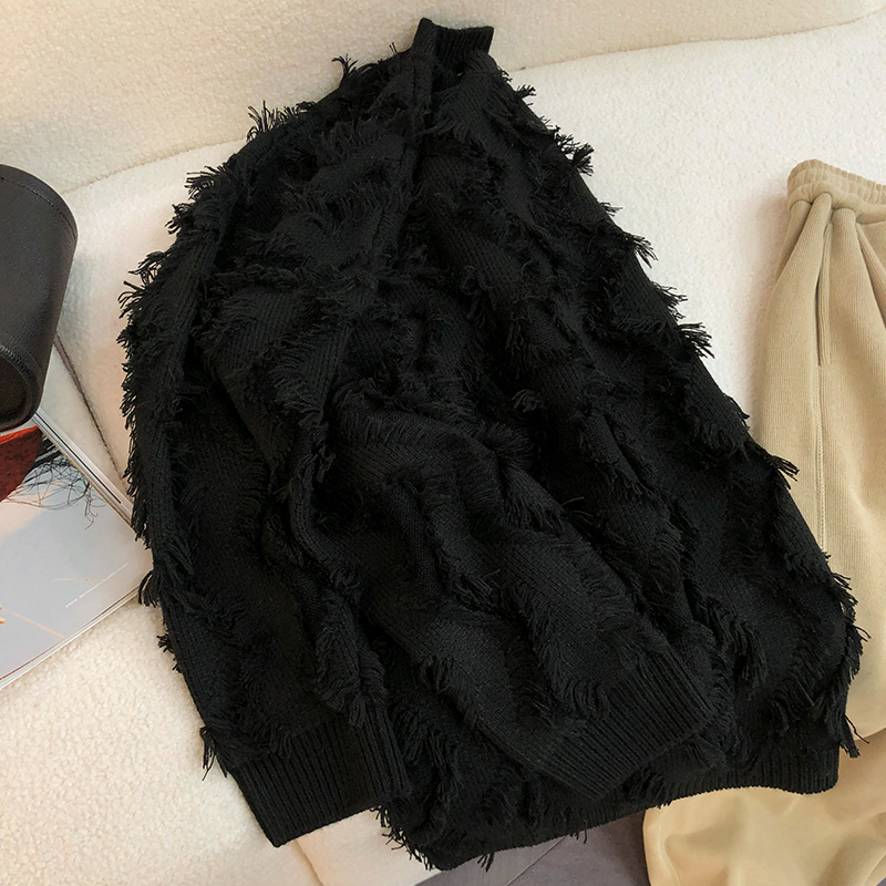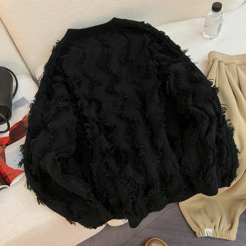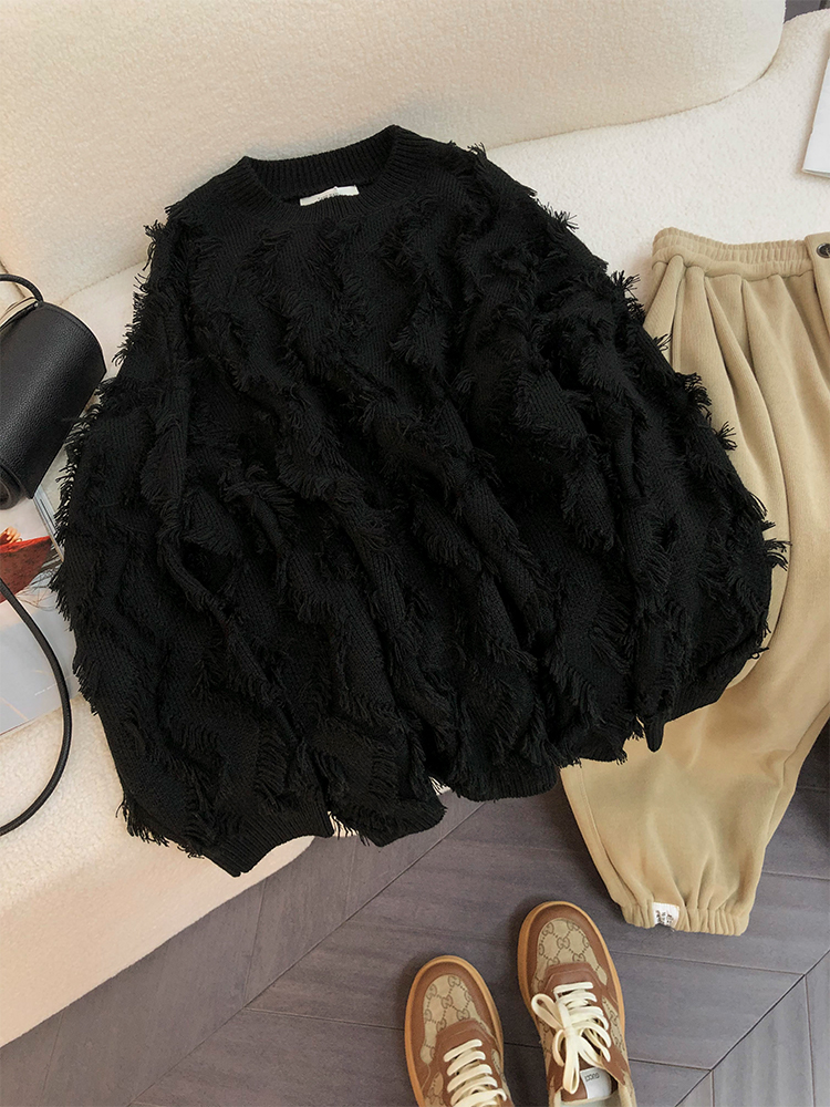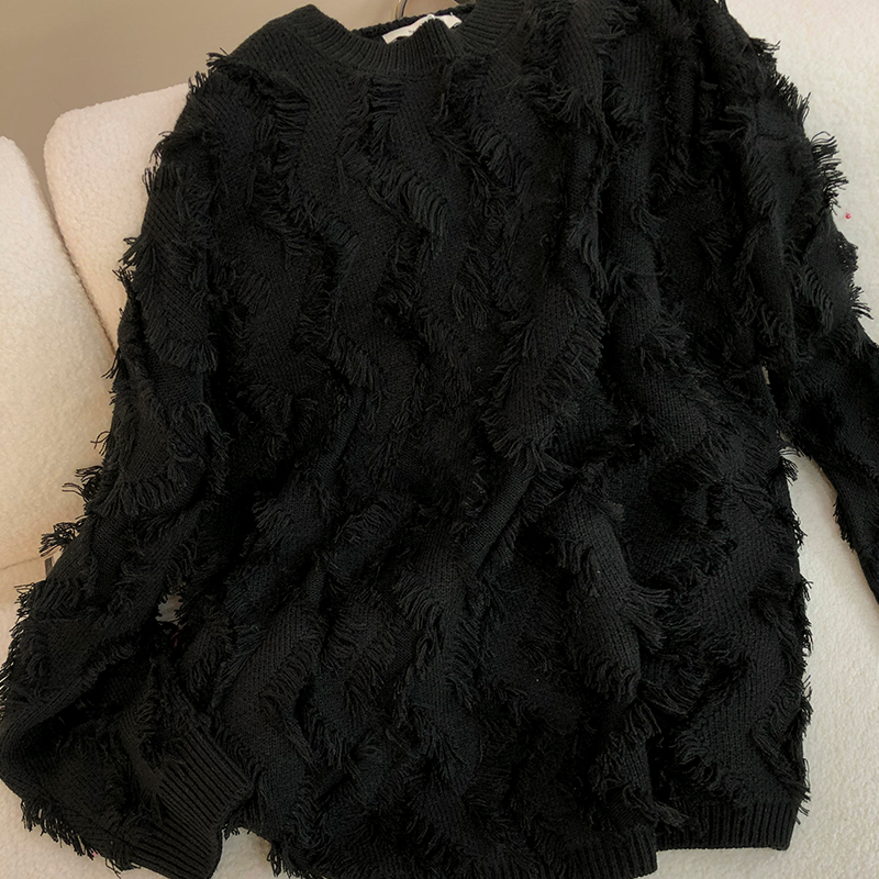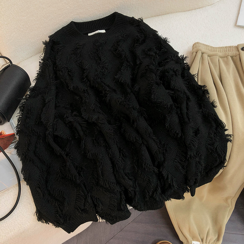 歐貨復古流蘇毛衣慵懶風寬鬆女秋冬新款2023小個子爆款針織打底衫
