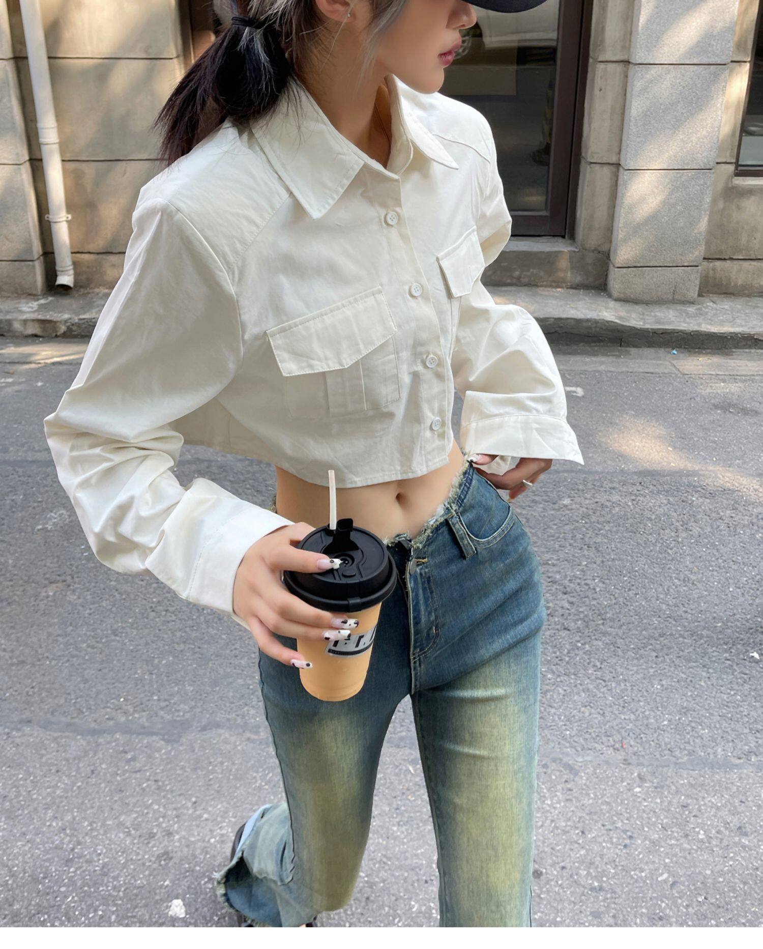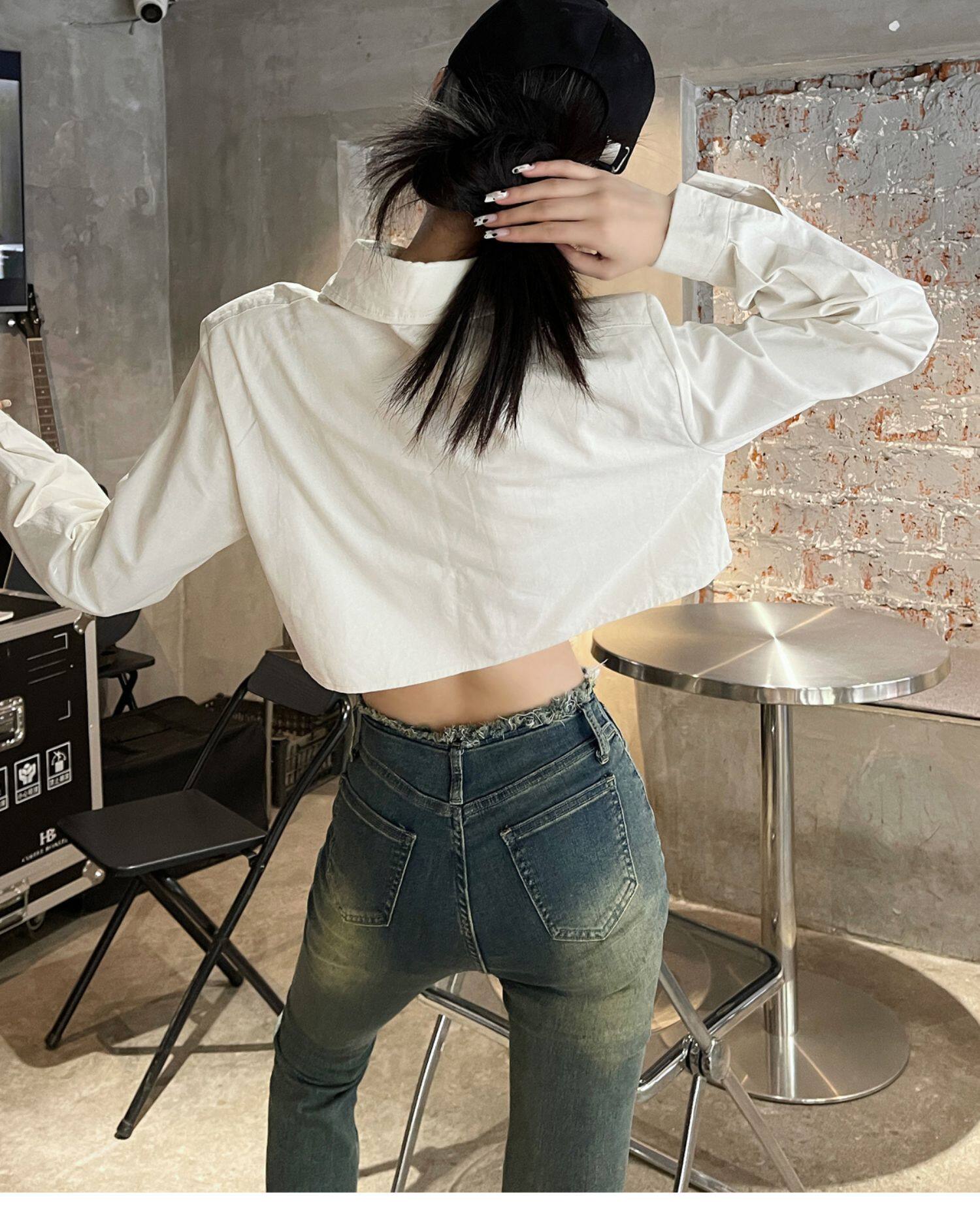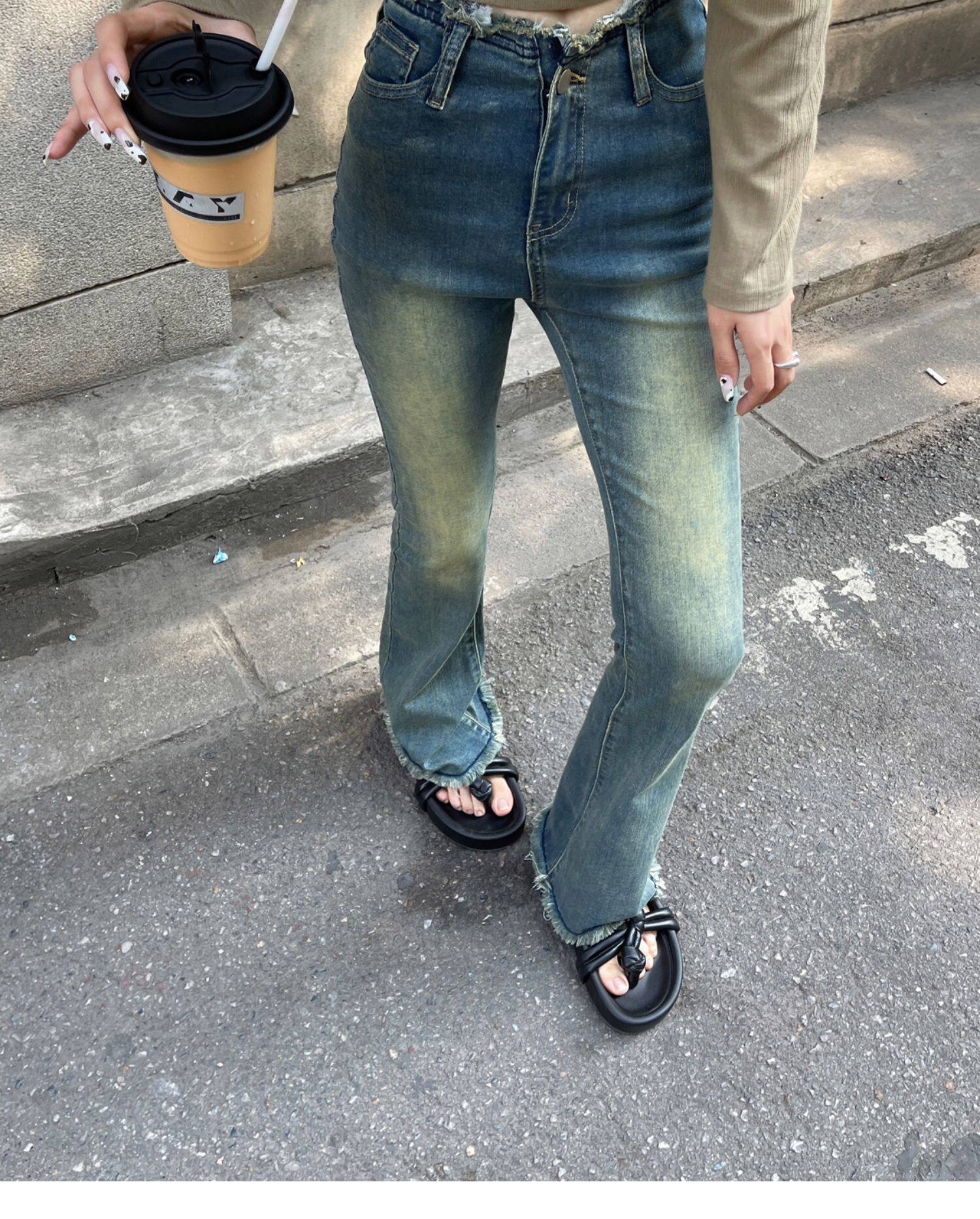 Tristine2022秋季新款高腰修身彈力牛仔褲女上下毛邊復古微喇叭褲