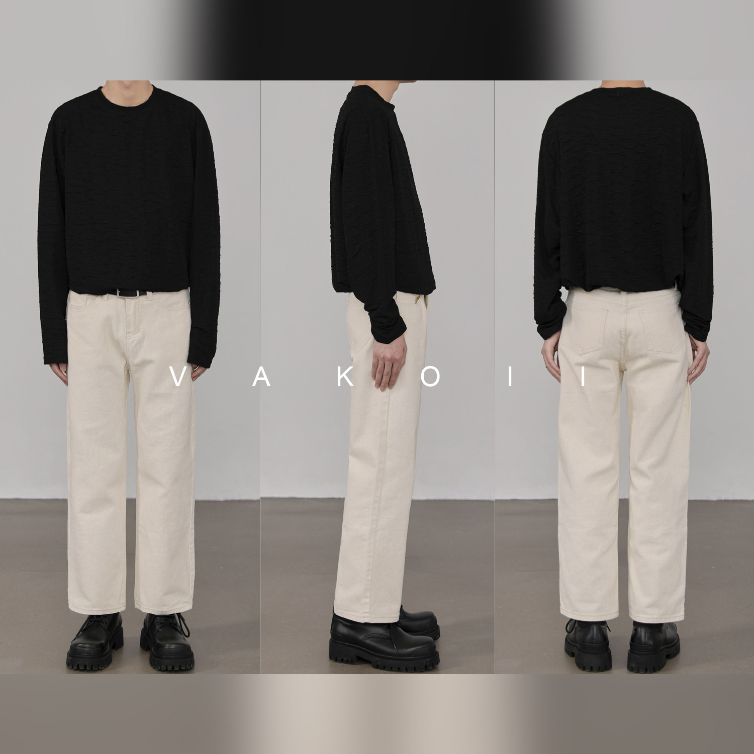 VAKOII 米白色九分牛仔褲男寬鬆直筒褲子韓版潮流休閒褲秋季百搭