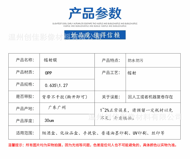 不可打印 防水 防刮 防油保护膜贴纸