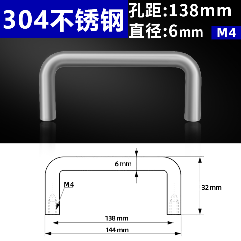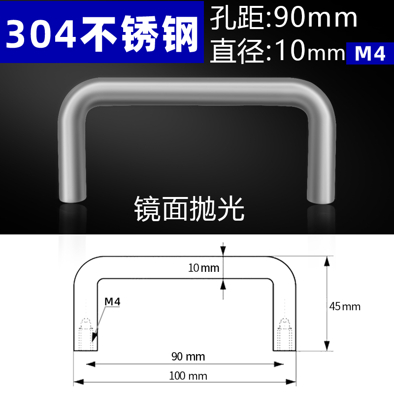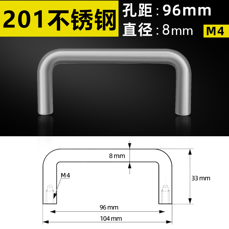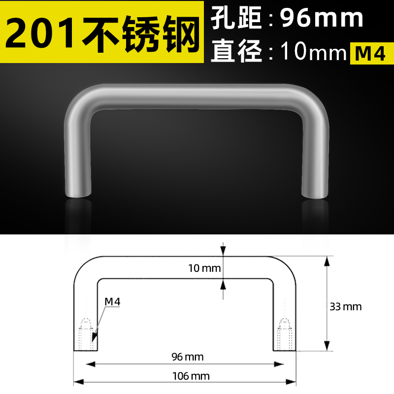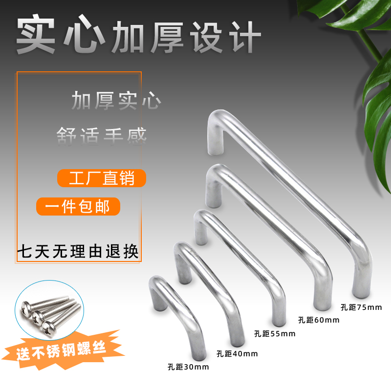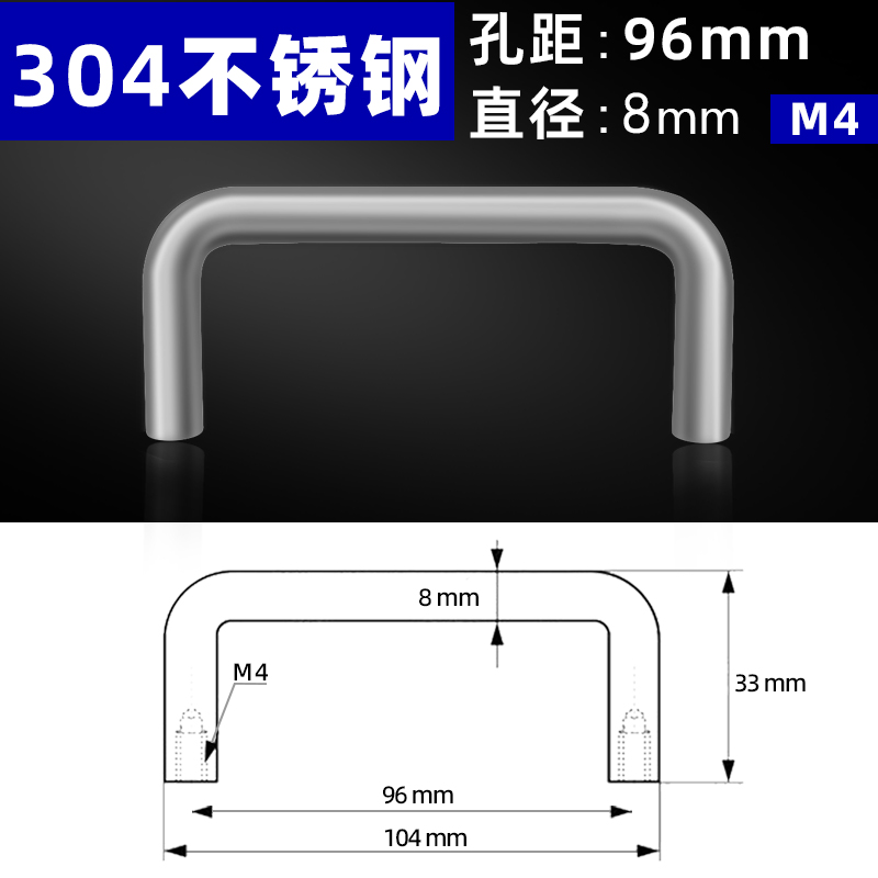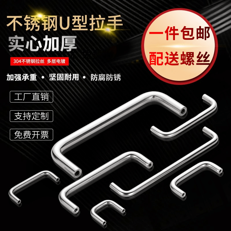 批发ls511实心304不锈钢拉手橱柜柜门家居抽屉U型工业把手96m孔距