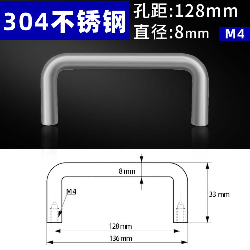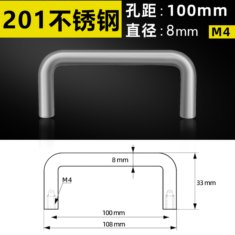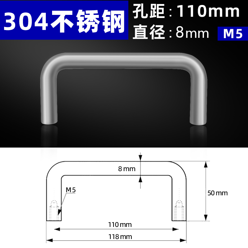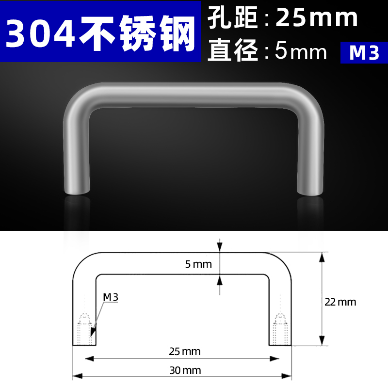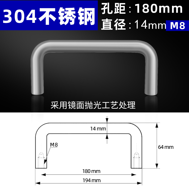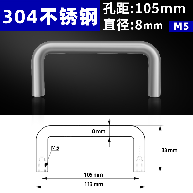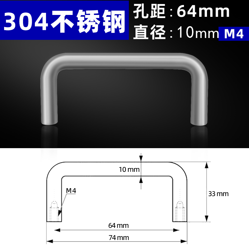批发ls511实心304不锈钢拉手橱柜柜门家居抽屉U型工业把手96m孔距