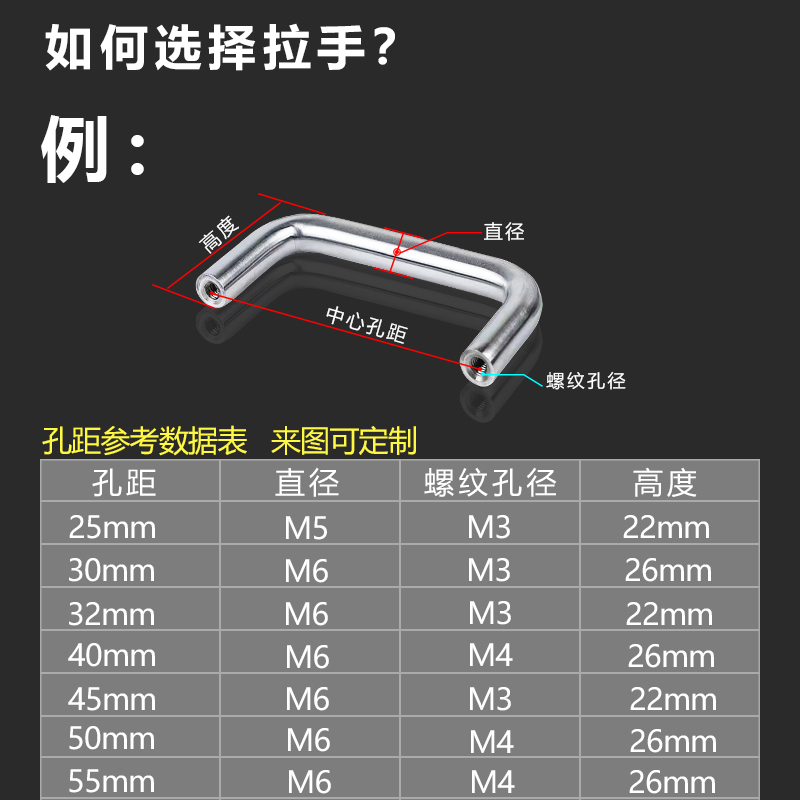 规格 下单就送螺丝,颜色均为本色 无视链接前面的颜色,碳钢亮铬Φ8孔距65螺牙M4,碳钢亮铬Φ4孔距32螺牙M3 黑色 碳钢亮铬Φ4孔距32螺牙M3 黑色,碳钢亮铬Φ5孔距25螺牙M3,碳钢亮铬Φ6孔距30螺牙M3,碳钢亮铬Φ6孔距30螺牙M4,碳钢亮铬Φ6孔距32螺牙M3,碳钢亮铬Φ6孔距32螺牙M4,碳钢亮铬Φ6孔距40螺牙M4,碳钢亮铬Φ6孔距40螺牙M4黑色,碳钢亮铬Φ6孔距45螺牙M4,碳钢亮铬Φ6孔距48螺牙M4,碳钢亮铬Φ6孔距50螺牙M4,碳钢亮铬Φ6孔距55螺牙M4,碳钢亮铬Φ6孔距60螺牙M4,碳钢亮铬Φ6孔距70螺牙M4,碳钢亮铬Φ8孔距75螺牙M4,碳钢亮铬Φ8孔距75螺牙M5,碳钢亮铬Φ8孔距100螺牙M4,碳钢亮铬Φ8孔距105螺牙M4,碳钢亮铬Φ8孔距110螺牙M5,碳钢亮铬Φ8孔距120螺牙M5,碳钢亮铬Φ8孔距150螺牙M4,碳钢亮铬Φ10孔距70螺牙M4,碳钢亮铬Φ10孔距120螺牙M5,乳白色 304不锈钢Φ5孔距25牙M3,巧克力色 304不锈钢Φ6孔距30牙M3,紫色 304不锈钢Φ4孔距32牙M3,米白色 304不锈钢Φ6孔距30牙M4,深香槟色 304不锈钢Φ6孔距32牙M3,深灰色 304不锈钢Φ6孔距40牙M4,灰色 304不锈钢Φ6孔距45牙M4,湖蓝色 304不锈钢Φ6孔距48牙M4,银色 304不锈钢Φ6孔距50牙M4,黑色 304不锈钢Φ6孔距55牙M4,桔红色 304不锈钢Φ6孔距60牙M4,褐色 304不锈钢Φ6孔距70牙M4,浅灰色 304不锈钢Φ6孔距100牙M4,深卡其布色 304不锈钢Φ6孔距138牙M4,玫红色 304不锈钢Φ8孔距60牙M4,粉红色 304不锈钢Φ8孔距64牙M4,深蓝色 304不锈钢Φ8孔距70牙M4,红色 304不锈钢Φ8孔距75牙M5,藕色 304不锈钢Φ8孔距80牙M4,西瓜红 304不锈钢Φ8孔距90牙M4,酒红色 304不锈钢Φ8*孔距96牙M4,卡其色 304不锈钢Φ8*100牙M4,深紫色 304不锈钢Φ8孔距110牙M4,藏青色 304不锈钢Φ8*105牙M5,姜黄色 304不锈钢Φ8*110牙M5,明黄色 304不锈钢Φ8*120牙M4,栗色 304不锈钢Φ8*126牙M4,暖咖啡色 304不锈钢Φ8*128牙M4,柠檬黄 304不锈钢Φ10*64牙M4,浅紫色 304不锈钢Φ10*90牙M4,杏色 304不锈钢Φ10*96牙M4,咖啡色 304不锈钢Φ10*100牙M5,藏青蓝 304不锈钢Φ10*110牙M5,浅黄色 304不锈钢Φ10*120牙M5,浅蓝色 304不锈钢Φ10*120牙M6,桔色 304不锈钢Φ10*128牙M4,浅棕色 304不锈钢Φ10*150牙M5,深蓝色:镜面抛光 304不锈钢Φ14*180牙M8,荧光黄 201不锈钢Φ8*64牙M4,金色 201不锈钢Φ8*80牙M4,香槟色 201不锈钢Φ8*90牙M4,黄色 201不锈钢Φ8*96牙M4,军绿色 201不锈钢Φ8*100牙M4,墨绿色 201不锈钢Φ8*105牙M4,浅绿色 201不锈钢Φ8*120牙M4,翠绿色 201不锈钢Φ8*128牙M4,绿色 201不锈钢Φ8*160牙M4,青色 201不锈钢Φ10*64牙M4,荧光绿 201不锈钢Φ10*96牙M4,孔雀蓝 201不锈钢Φ10*120牙M5,浅天蓝色 201不锈钢Φ10*128牙M4,宝蓝色 201不锈钢Φ10*160牙M4,驼色 铝材质10*128牙M4