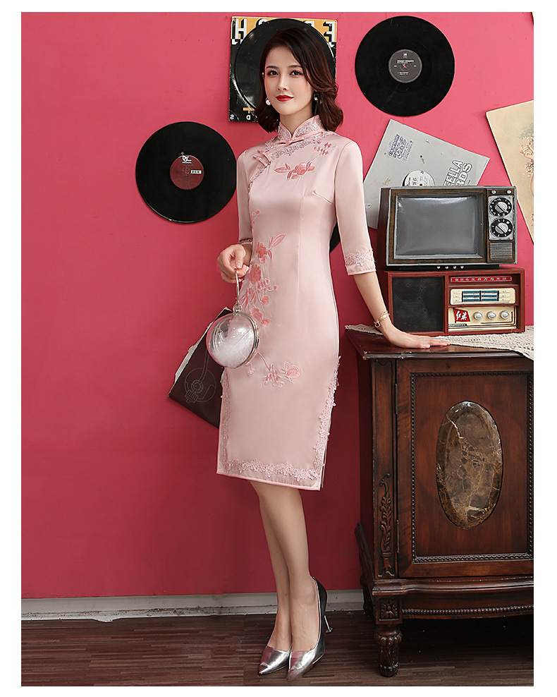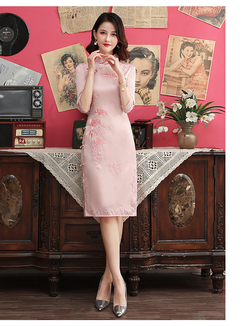 颜色 8146中长粉绣花-中袖,8145中长红绣花-中袖,8147中长浅绿绣花-中袖