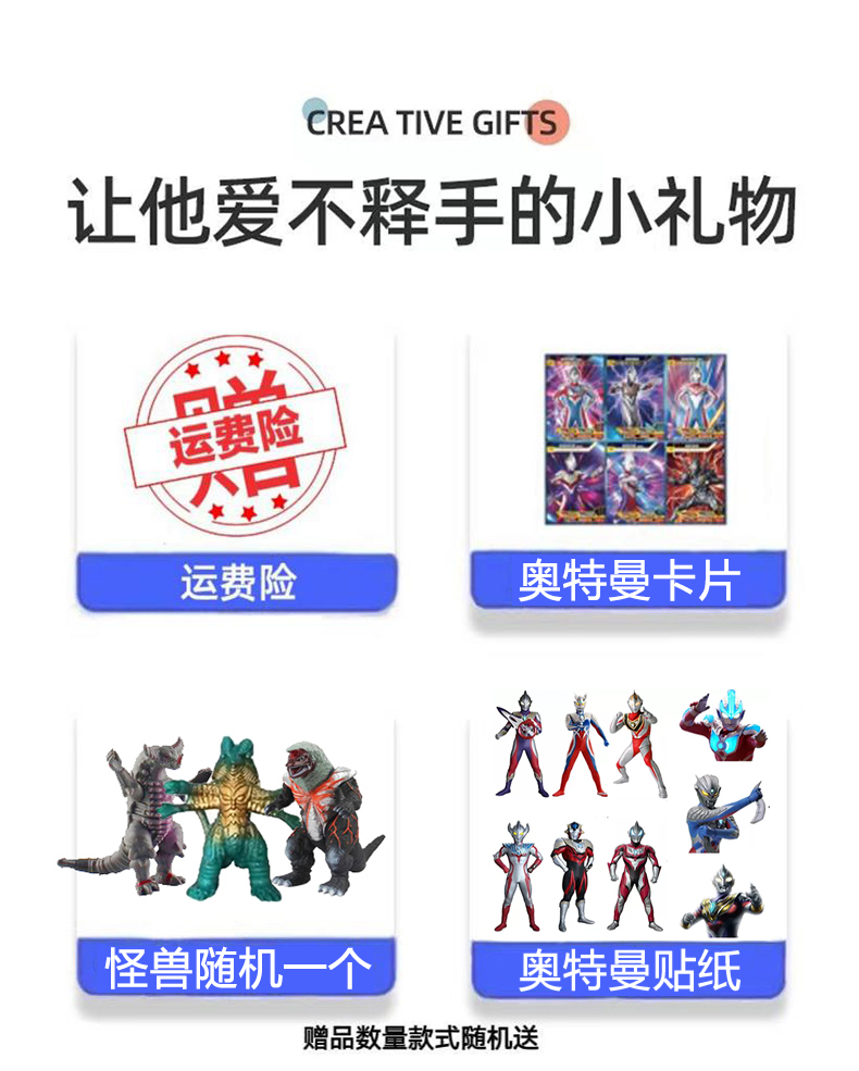 顏色分類 【格麗喬禮盒裝】送怪獸+卡片+貼紙,【希特拉姆卡爾蜜拉禮盒裝】送怪獸+卡片+貼紙,【達貢形態卡爾蜜拉禮盒裝】送怪獸+卡片+貼紙,【原始形態卡爾蜜拉禮盒裝】送怪獸+卡片+貼紙,【終極賽羅禮盒裝】送怪獸+卡片+貼紙,【光輝賽羅禮盒裝】送怪獸+卡片+貼紙,【黑暗特利迦禮盒裝】送怪獸+卡片+貼紙,【邪惡特利伽禮盒裝】送怪獸+卡片+貼紙,【複合特利迦禮盒裝】送怪獸+卡片+貼紙,【真理特利迦禮盒裝】送怪獸+卡片+貼紙,【閃耀特利迦禮盒裝】送怪獸+卡片+貼紙,【賽迦奧特曼禮盒裝】送怪獸+卡片+貼紙,【布萊澤禮盒裝】送怪獸+卡片+貼紙,【奧特之王禮盒裝】送怪獸+卡片+貼紙,【伽古拉禮盒裝】送怪獸+卡片+貼紙,【維克特利禮盒裝】送怪獸+卡片+貼紙,【邪惡貝利亞禮盒裝】送怪獸+卡片+貼紙,【極惡貝利亞禮盒裝】送怪獸+卡片+貼紙,【託雷基亞禮盒裝】送怪獸+卡片+貼紙,【羅布奧特曼禮盒裝】送怪獸+卡片+貼紙,【歐布爆炎禮盒裝】送怪獸+卡片+貼紙,【歐布奧特曼禮盒裝】送怪獸+卡片+貼紙,【超人力霸王禮盒裝】送怪獸+卡片+貼紙,【黑暗迪迦禮盒裝】送怪獸+卡片+貼紙,【黃金迪迦禮盒裝】送怪獸+卡片+貼紙,【銀河初升禮盒裝】送怪獸+卡片+貼紙,【捷德奧特曼禮盒裝】送怪獸+卡片+貼紙,【德爾塔天爪禮盒裝】送怪獸+卡片+貼紙,【帝斯修姆天爪禮盒裝】送怪獸+卡片+貼紙,【黑暗德爾塔禮盒裝】 送怪獸+卡片+貼紙,【澤塔阿爾法禮盒裝】送怪獸+卡片+貼紙,【澤塔原生禮盒裝】 送怪獸+卡片+貼紙,【諾亞奧特曼禮盒裝】 送怪獸+卡片+貼紙,【黑暗扎基禮盒裝】 送怪獸+卡片+貼紙,【艾克斯禮盒裝】送怪獸+卡片+貼紙,【黑暗艾克斯禮盒裝】 送怪獸+卡片+貼紙,【德凱閃亮型禮盒裝】送怪獸+卡片+貼紙,【德凱強勁型禮盒裝】送怪獸+卡片+貼紙,【銀河奧特曼禮盒裝】送怪獸+卡片+貼紙,【黃金賽羅禮盒裝】送怪獸+卡片+貼紙,【無限賽羅禮盒裝】送怪獸+卡片+貼紙,正版超可動布萊澤【不支持退換沒售後】,正版德凱閃亮型【不支持退換沒有售後】,正版德凱強勁型【不支持退換沒有售後】