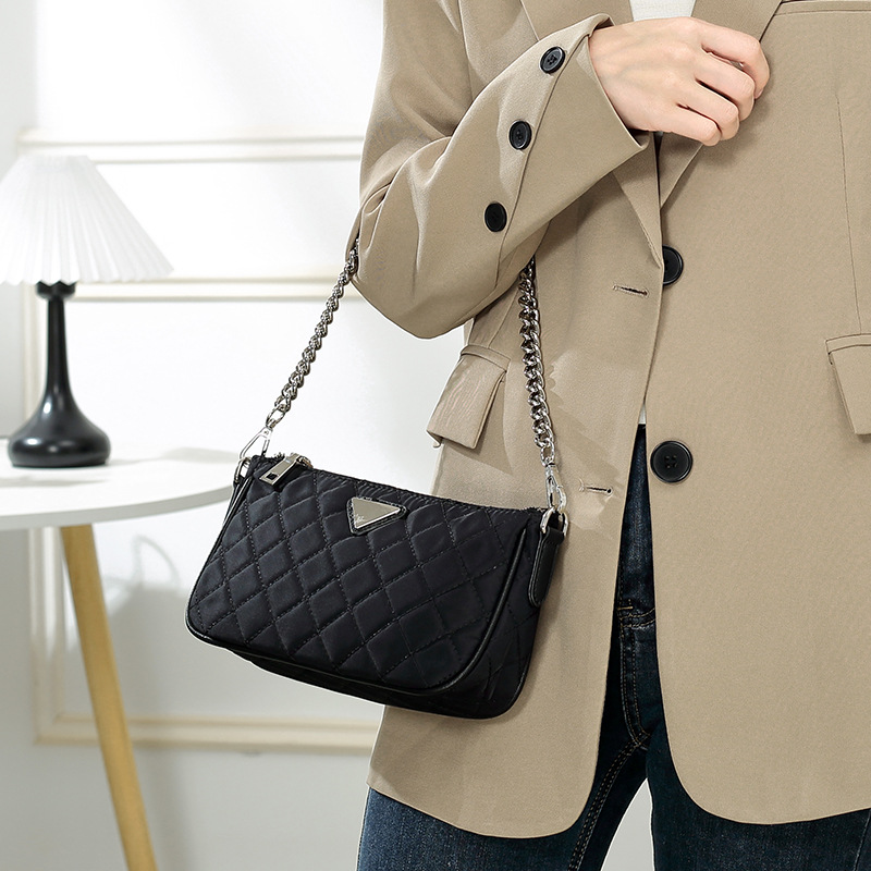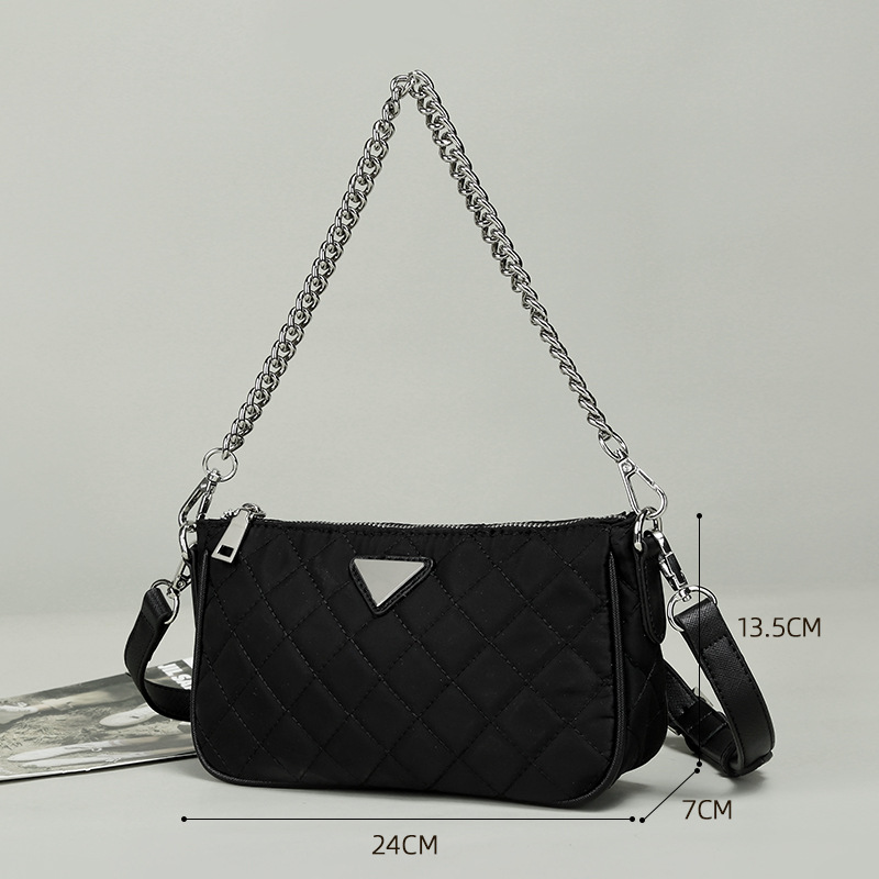 跨境专供斜跨包女牛津布菱格小香风时尚链条休闲单肩小方包腋下包