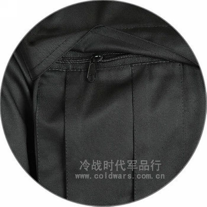 前胸拉链特写,采用外盖隐形拉链设计。可以避免拉链钩挂伞绳等,穿着战术背心,外置盔甲等也更为为方便。胸前一侧口袋上有织唛标识。此款作战服胸前没有魔术贴位置,胸条、血条等贴标需要缝到衣服上或者自行加工魔术贴标