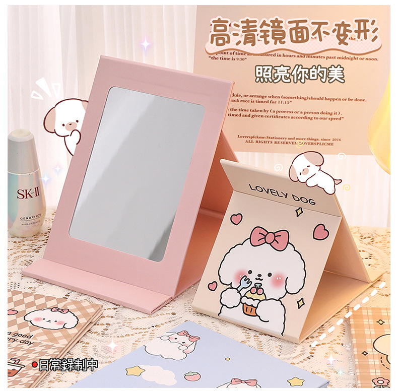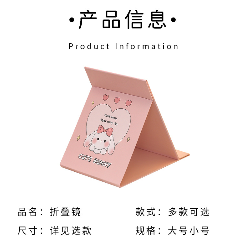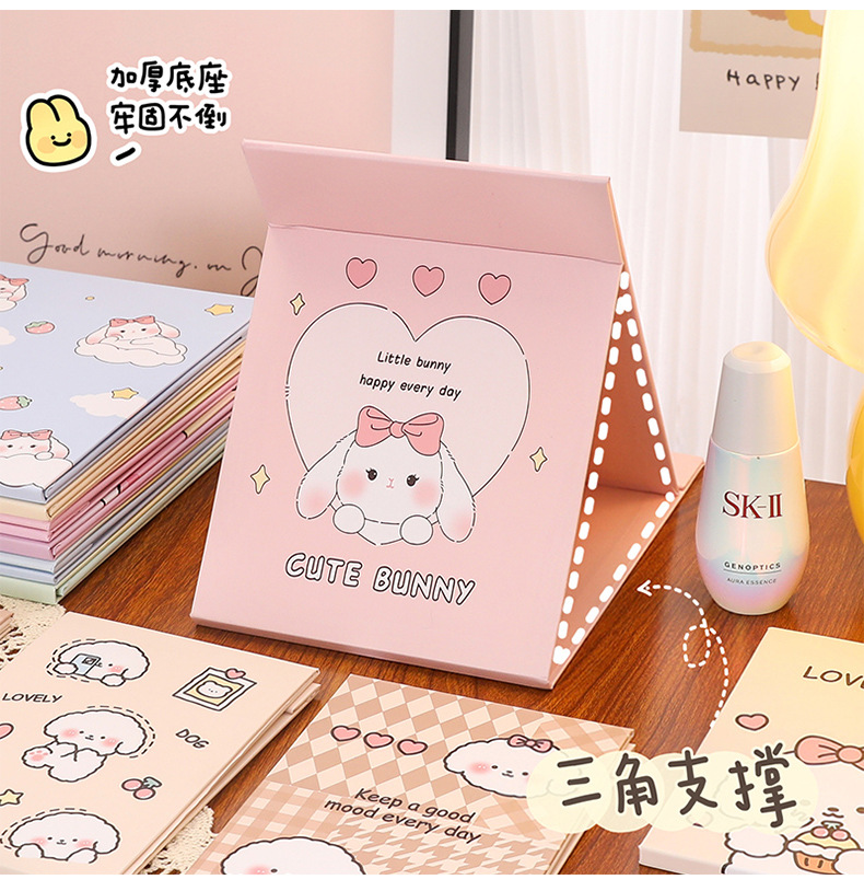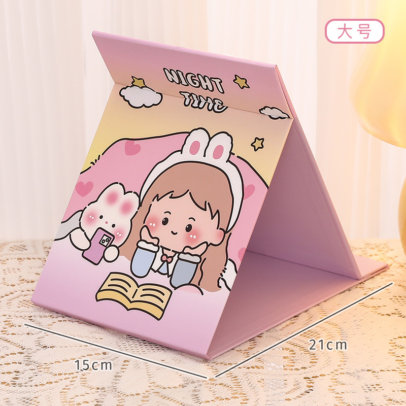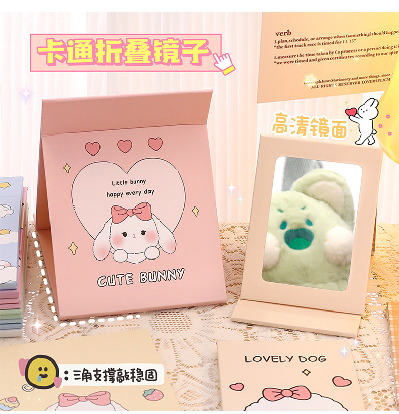 可爱卡通折叠镜子 中学生随身便携化妆镜 高颜值桌面可调节镜子